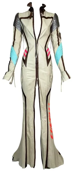 F/W 2003 Roberto Cavalli Runway Leather Moto Bodycon Mermaid Gown Dress w Train