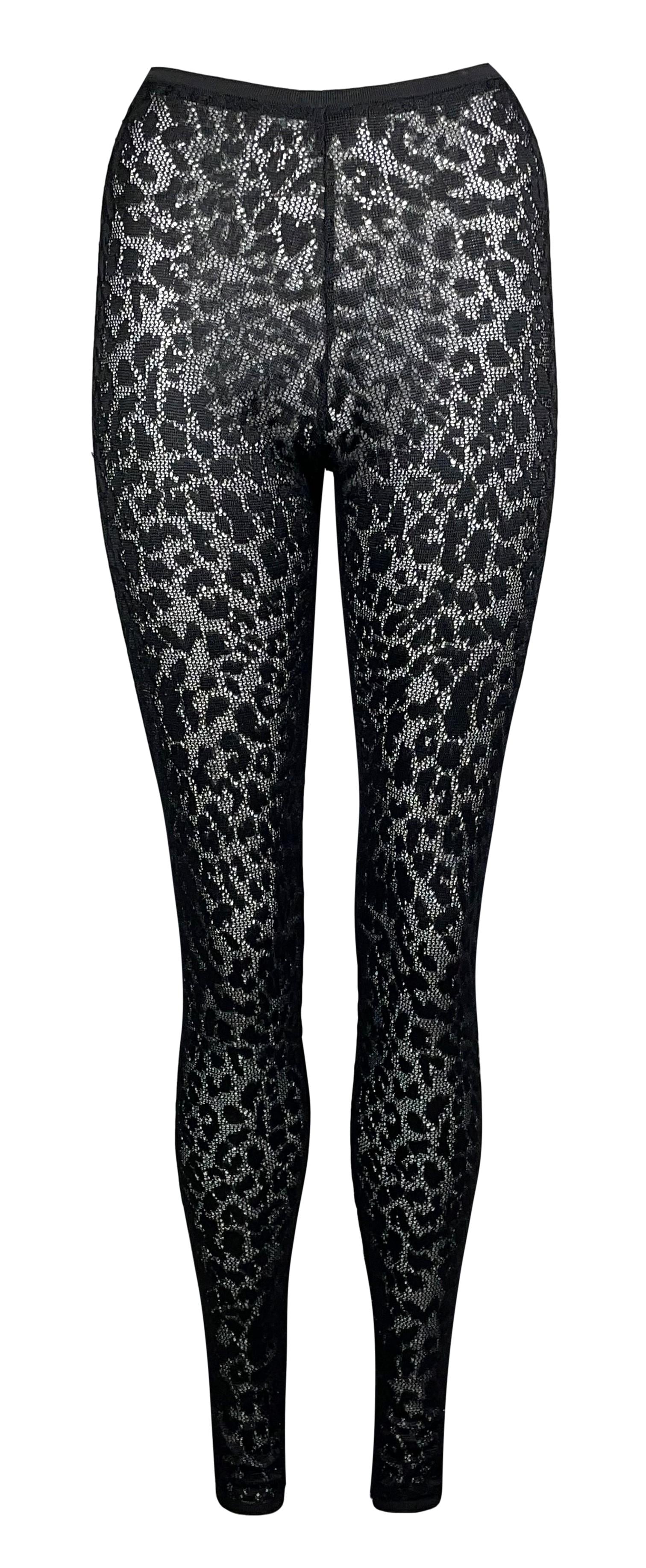 F/W 2004 Christian Dior by John Galliano Sheer Black Leopard Knit Leggings