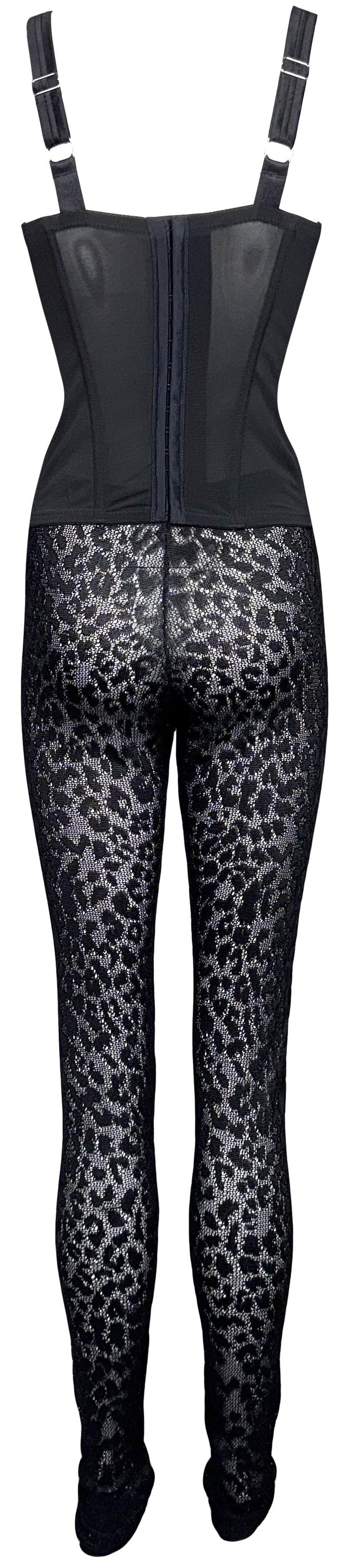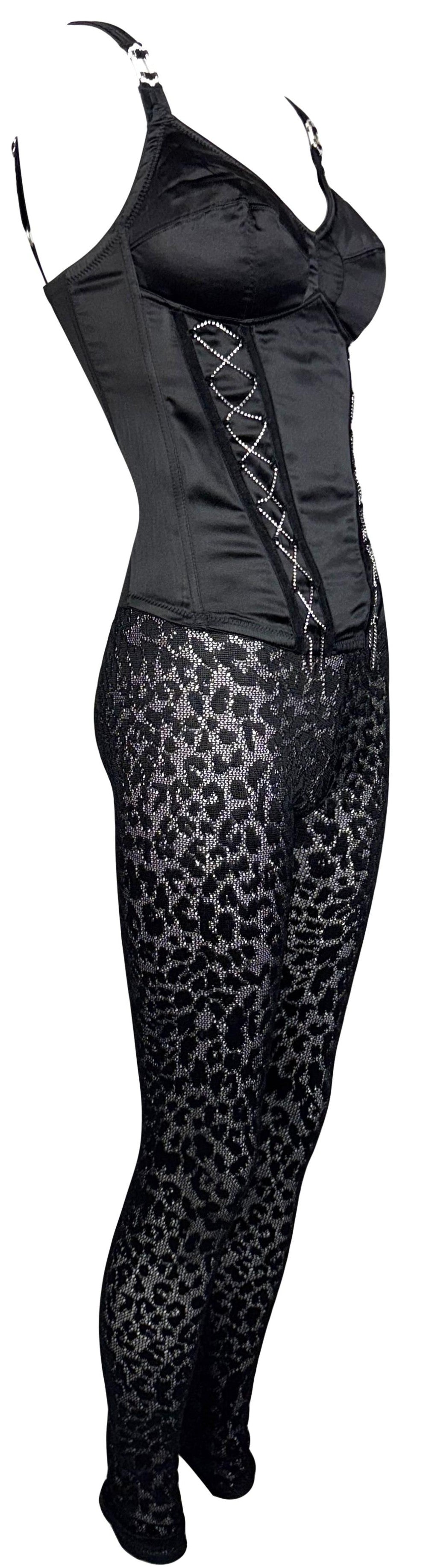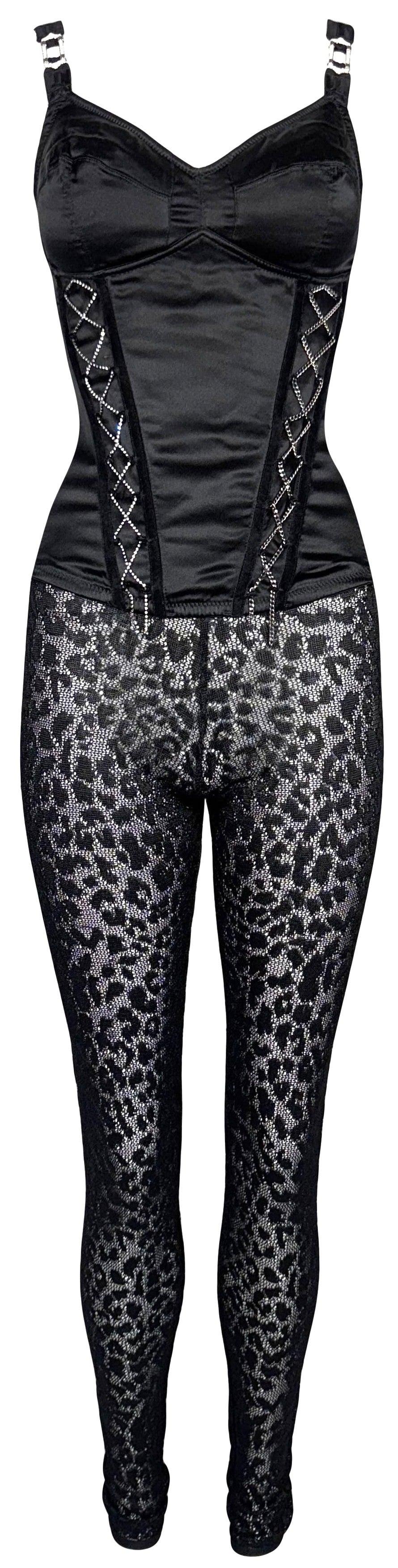 F/W 2004 Christian Dior x John Galliano Crystal Corset Buckle Top & Sheer Black Leopard Leggings Set