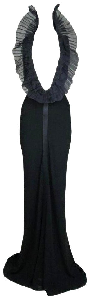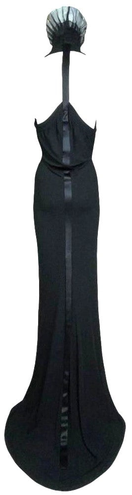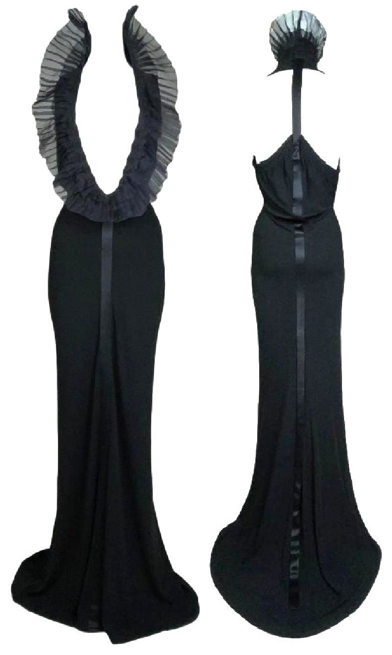 F/W 2004 Gianfranco Ferre Plunging Black Elvira Goth Queen High Collar Gown Dress