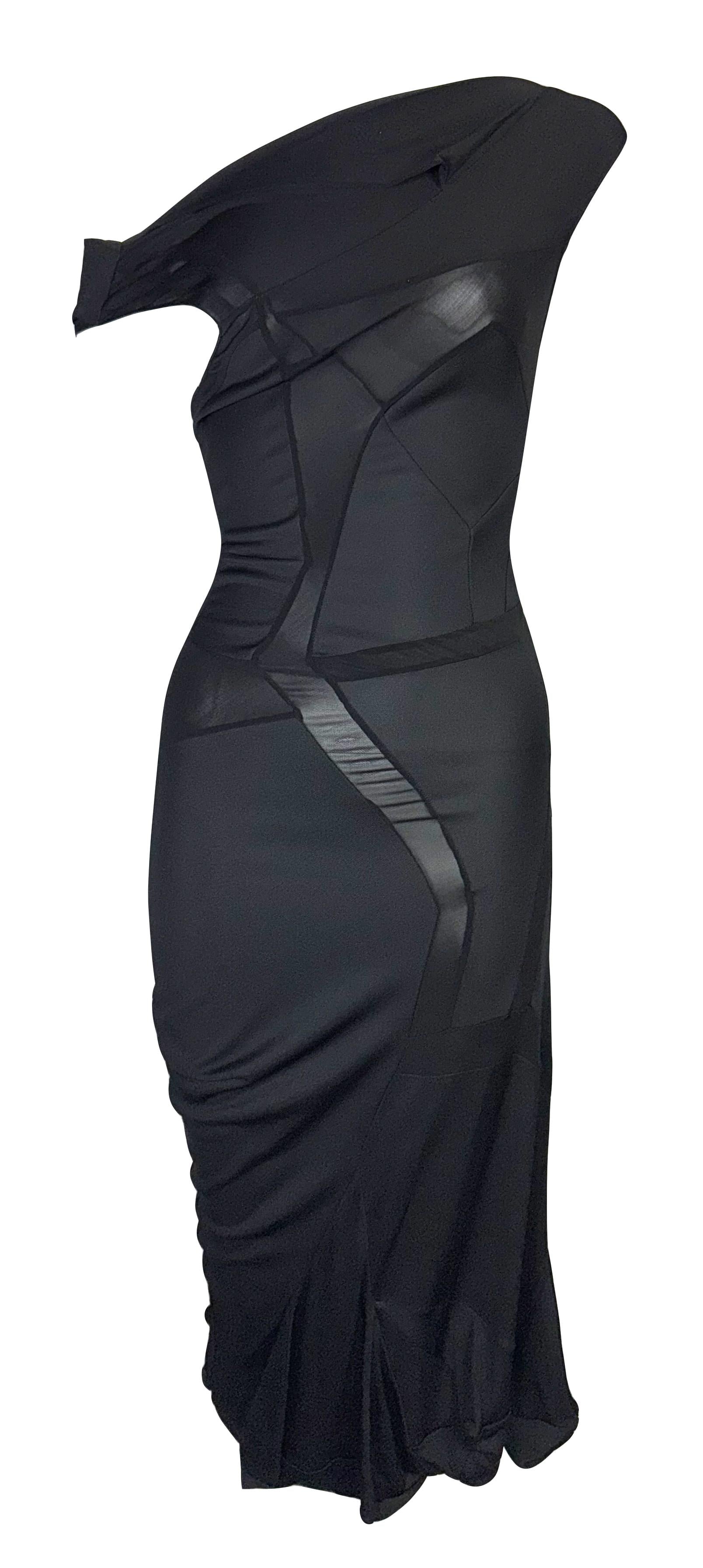F/W 2006 Christian Dior by John Galliano Sheer Black Off Shoulder Bodycon Dress