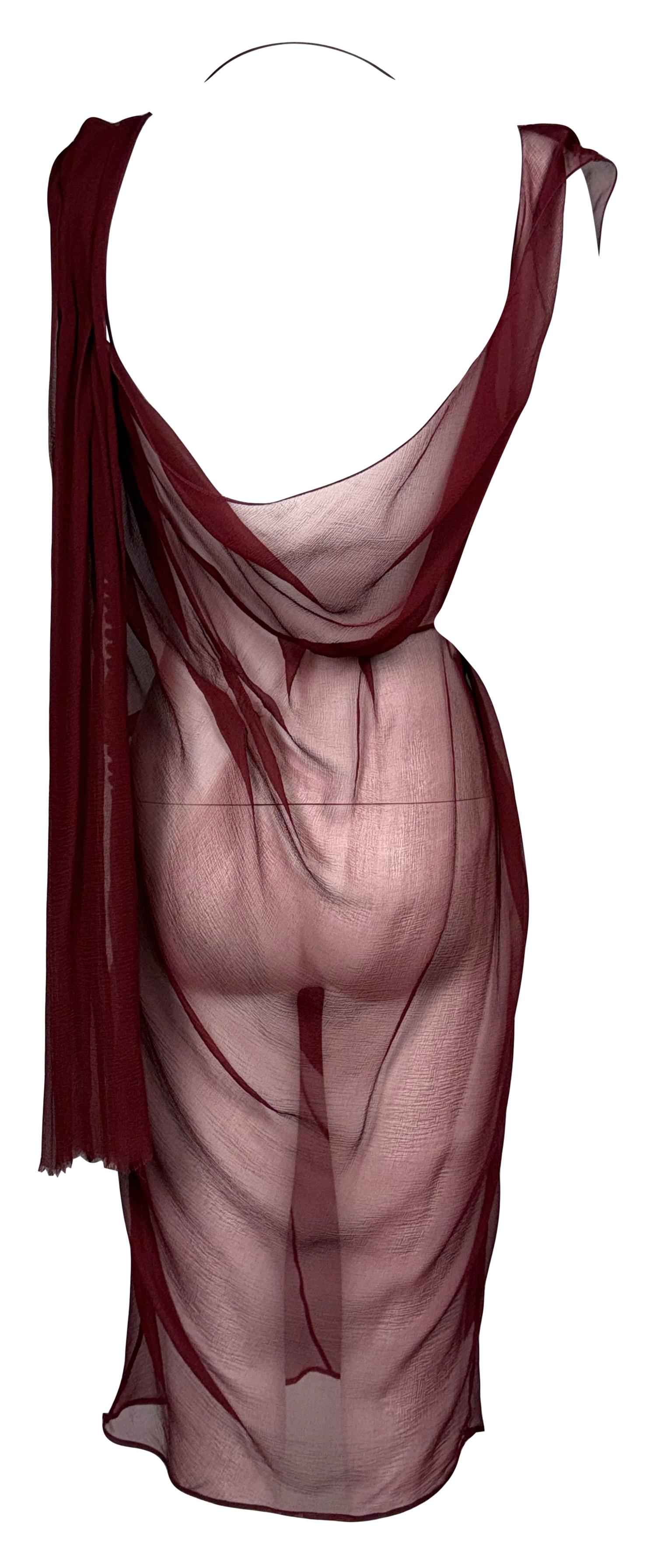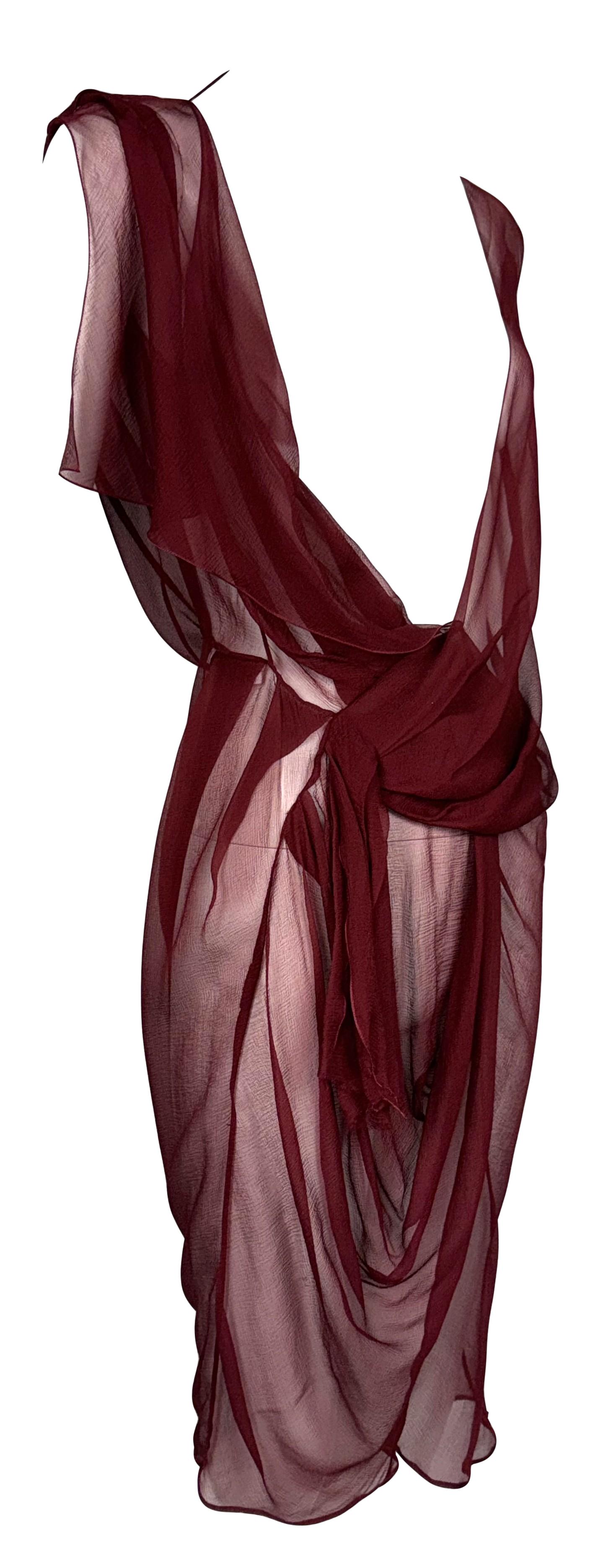 F/W 2006 Christian Dior by John Galliano Sheer Blood Red Silk Grecian Plunging Dress