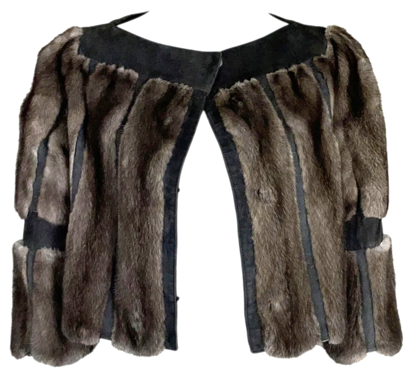 F/W 2007 Christian Dior by John Galliano Brown Mink & Leather Cropped Pin-Up Jacket