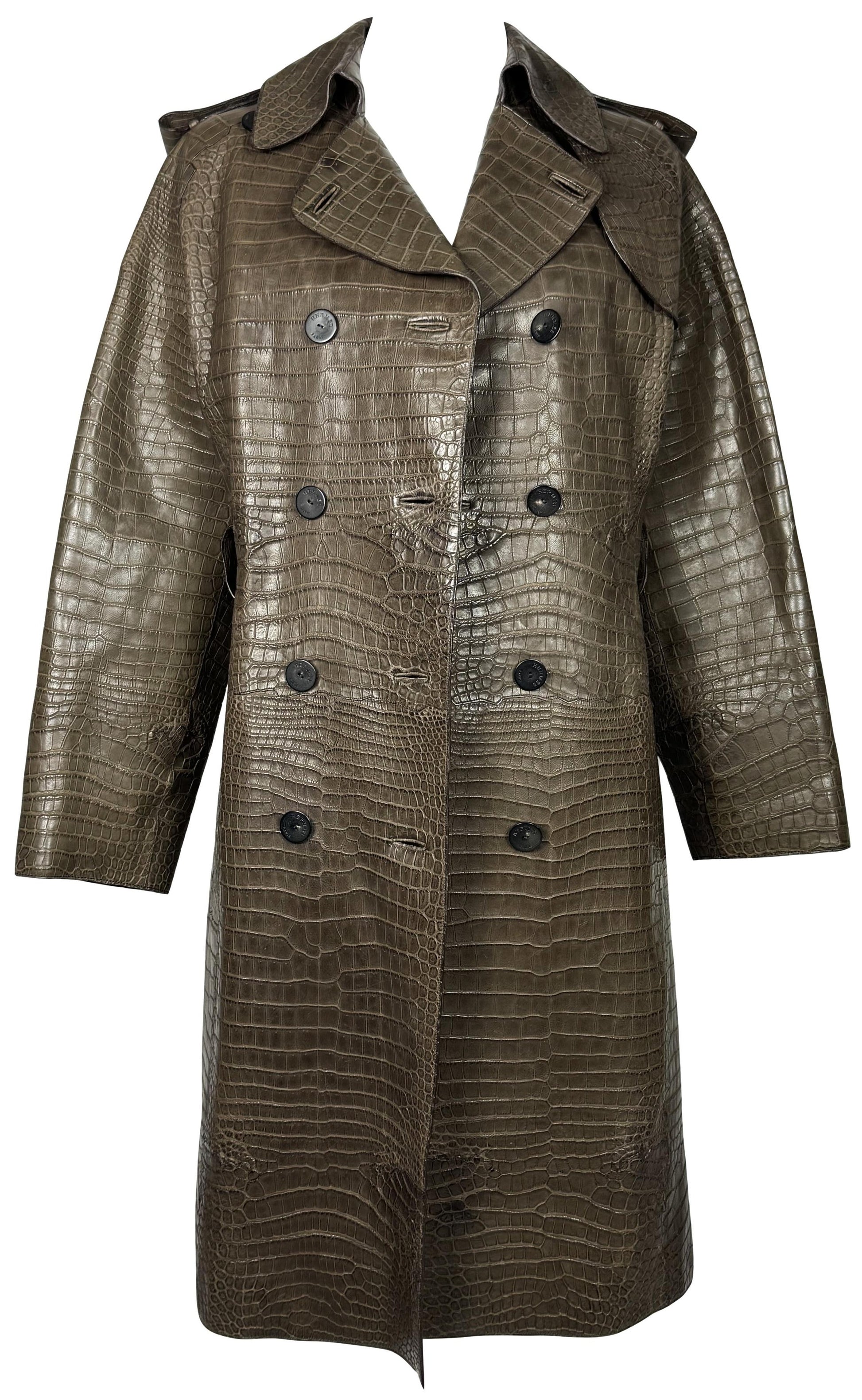 F/W 2007 Hermès by Jean Paul Gaultier Runway RARE Brown Crocodile Alligator Trench Coat Jacket