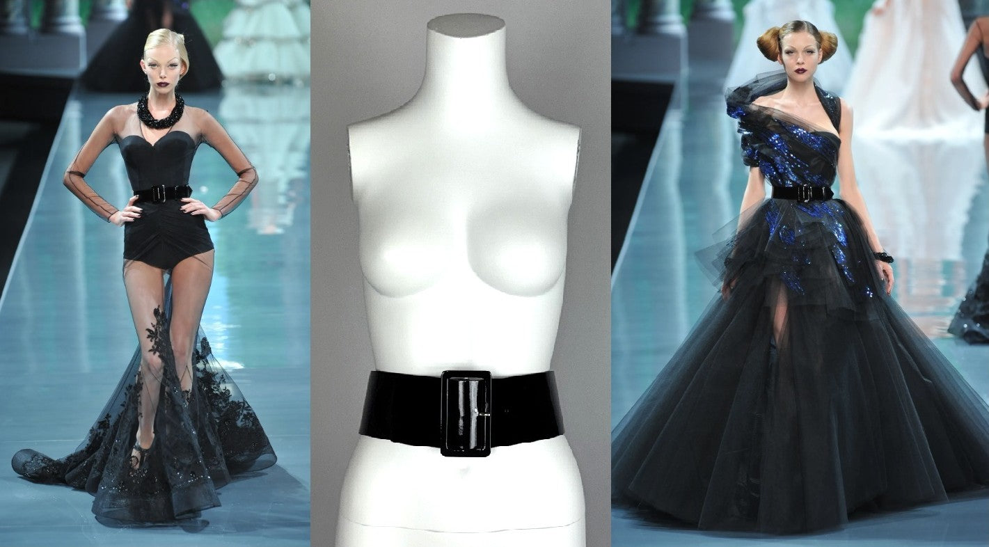 F/W 2008 Christian Dior by John Galliano Haute Couture Runway 1950's Pin-Up Style Black Mesh Bustier Corset Top