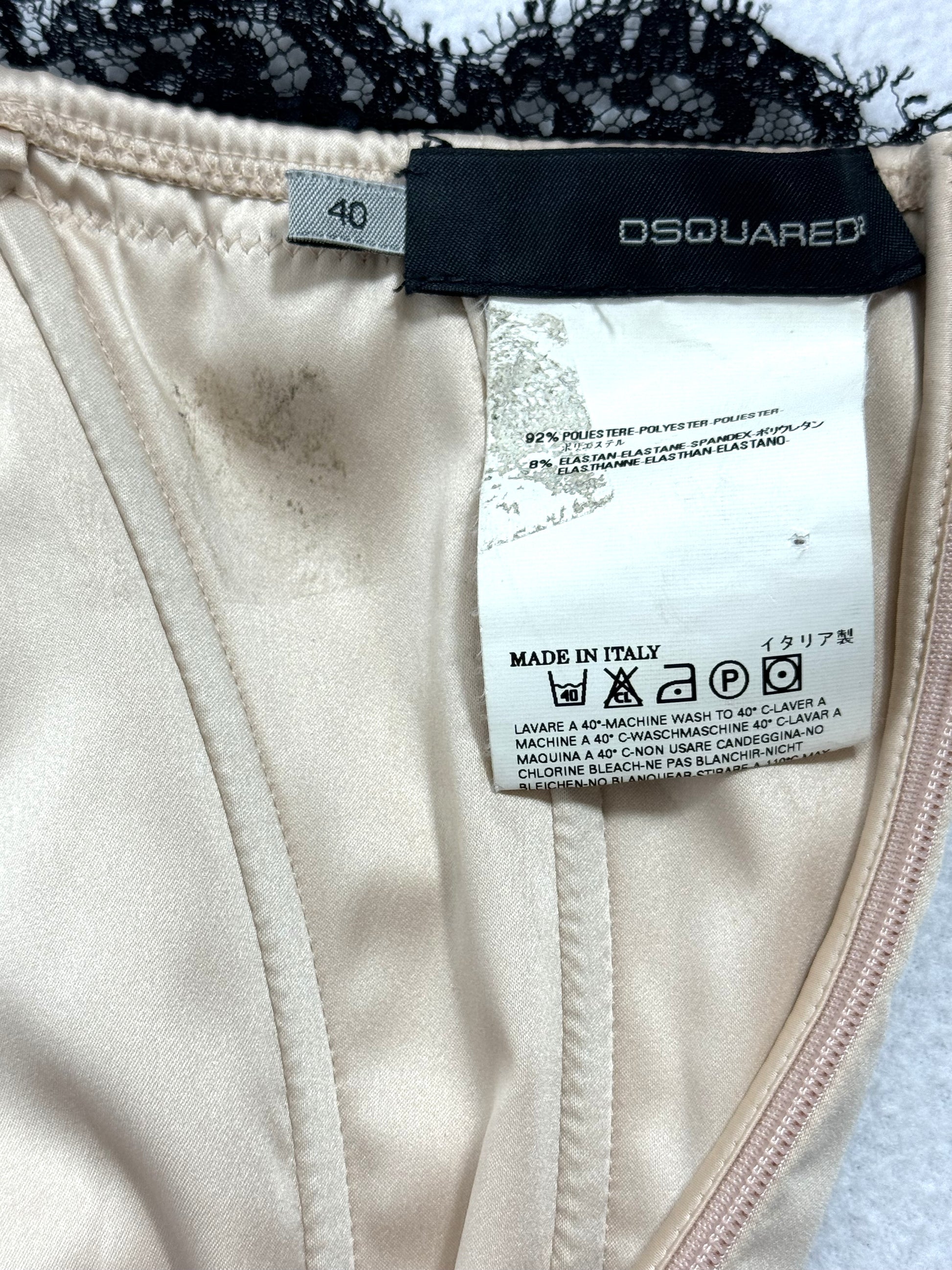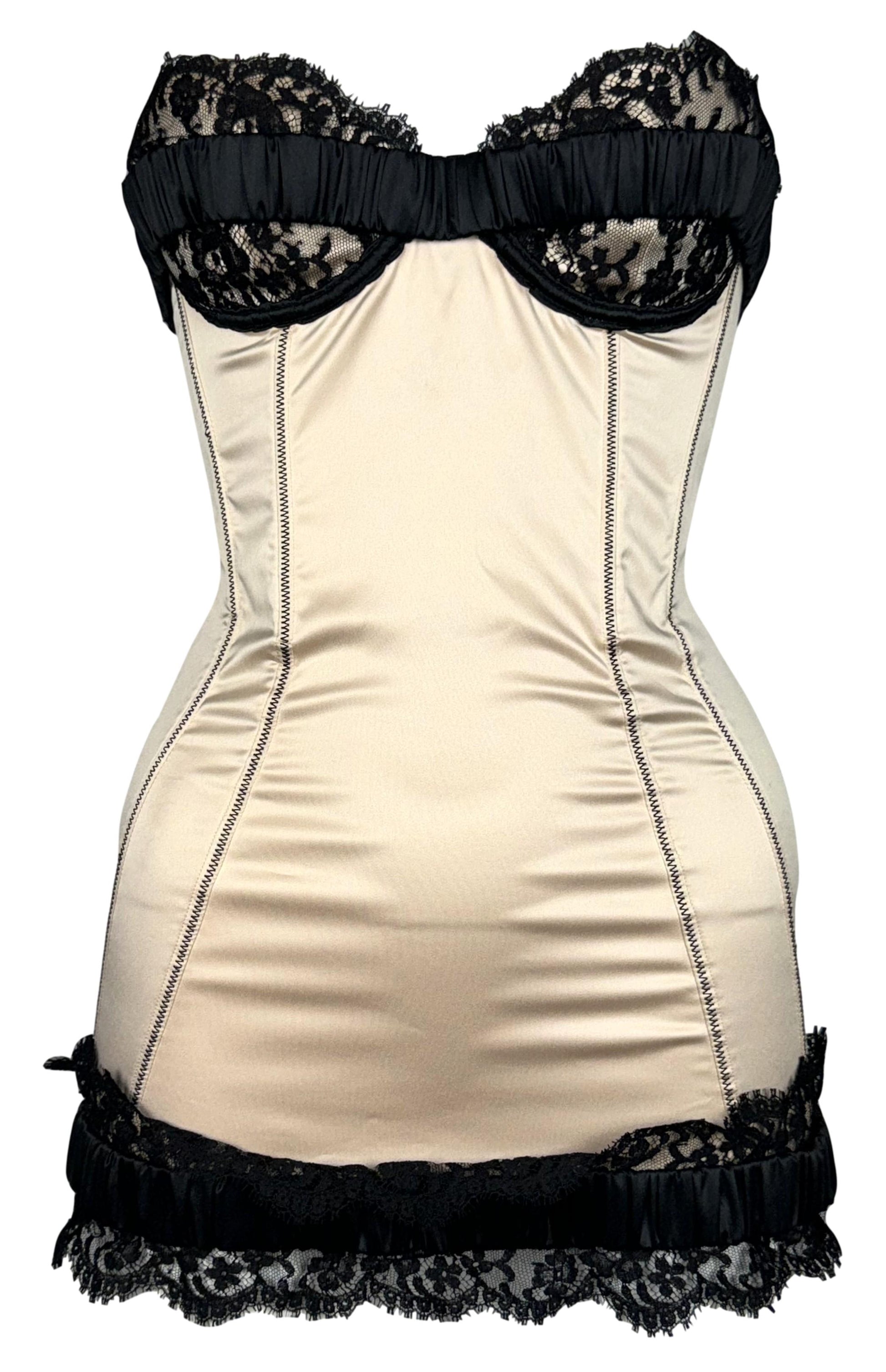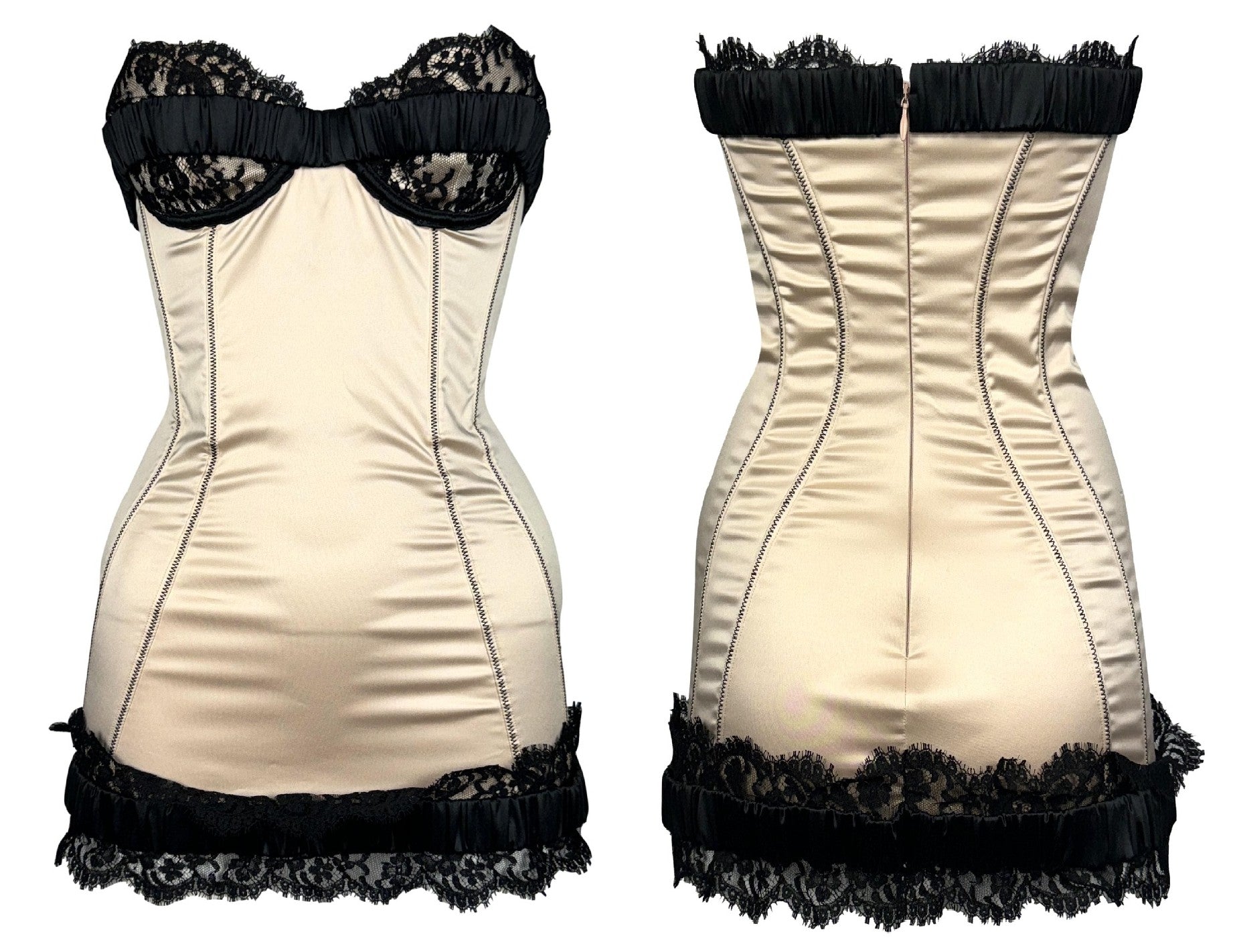 F/W 2008 Dsquared2 Runway Pin-up Stretch Champagne Satin & Black Lace Strapless Mini Dress