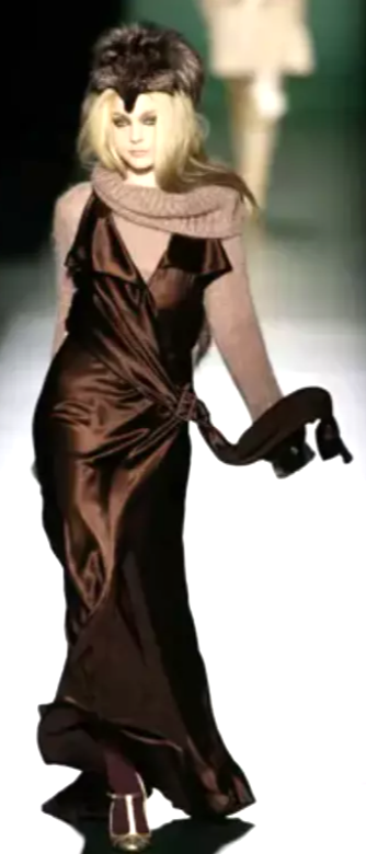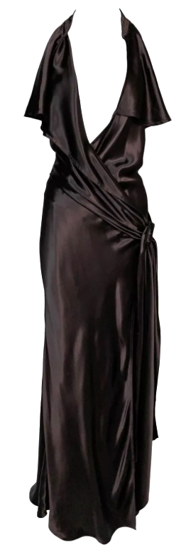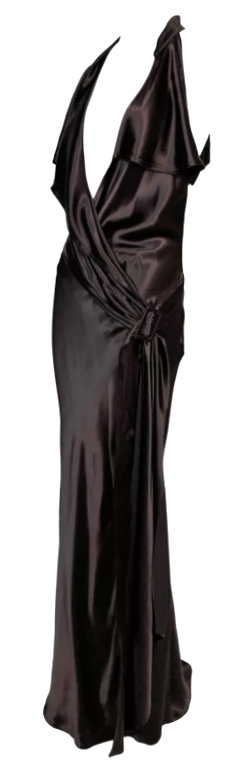 F/W 2008 Jean Paul Gaultier Runway Brown Satin Plunging Wrap Gown Dress