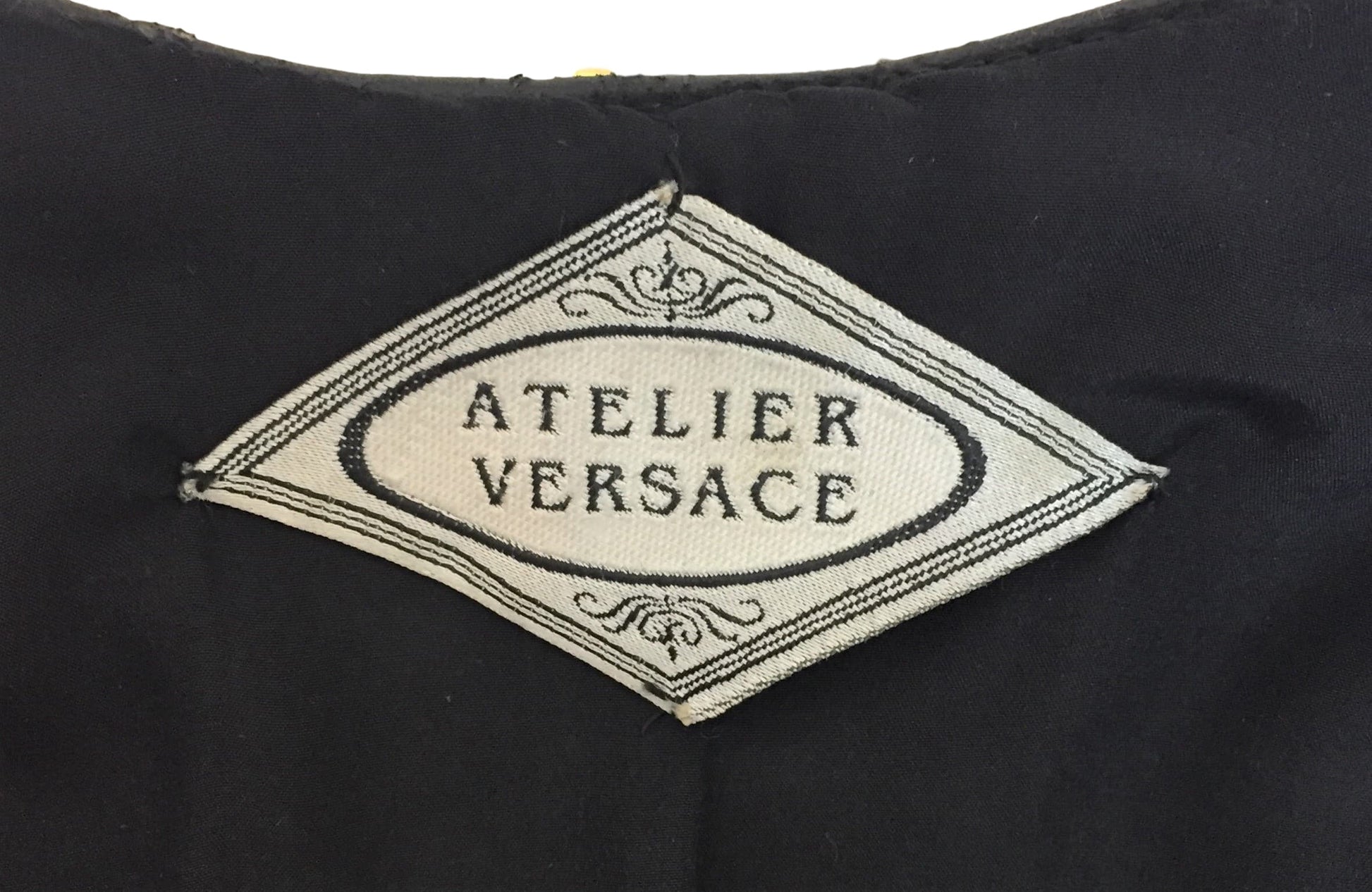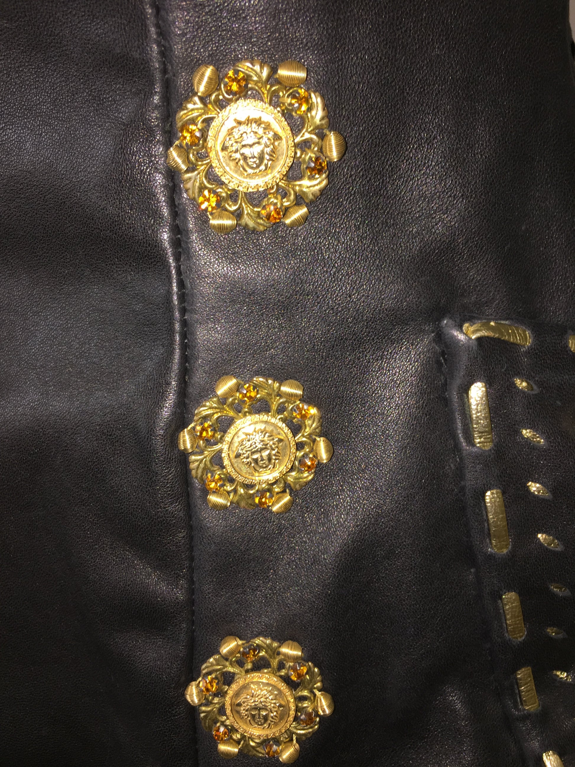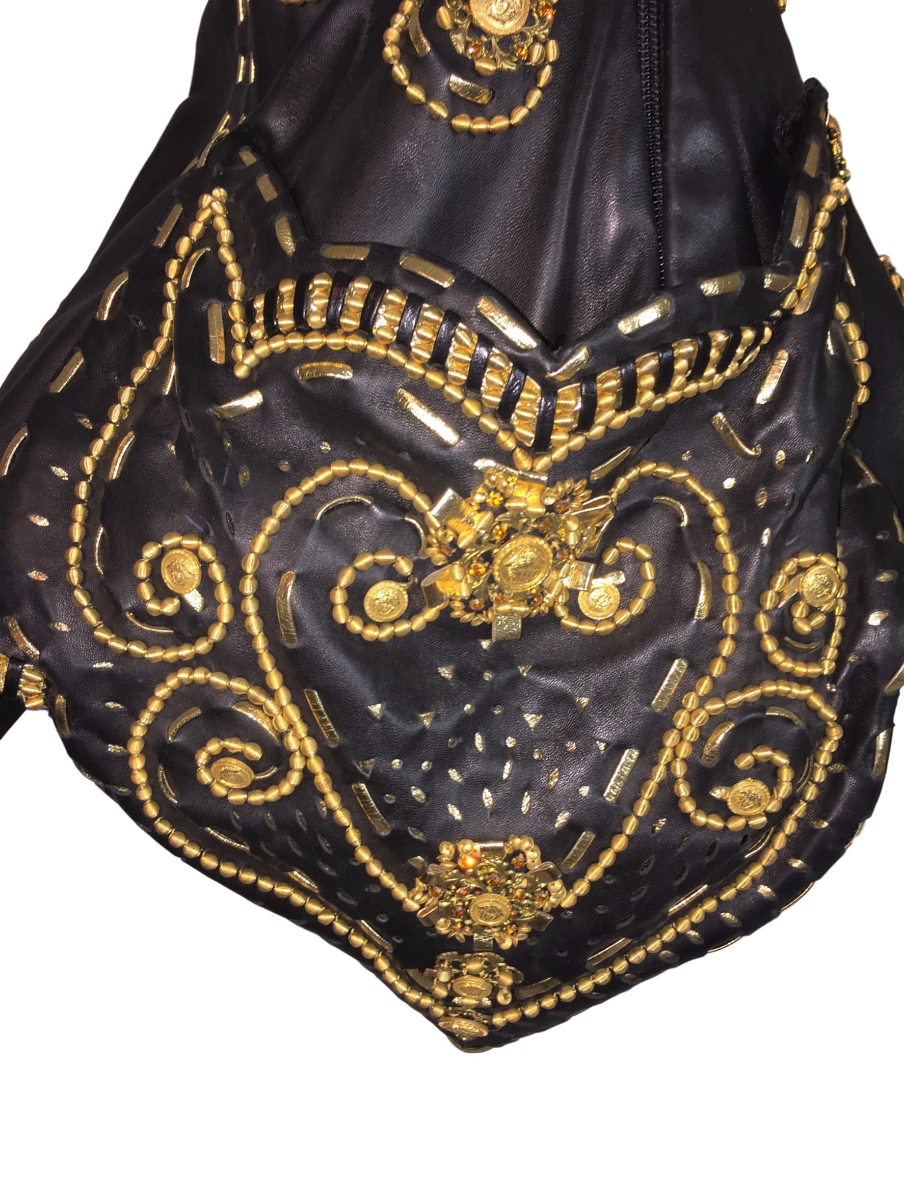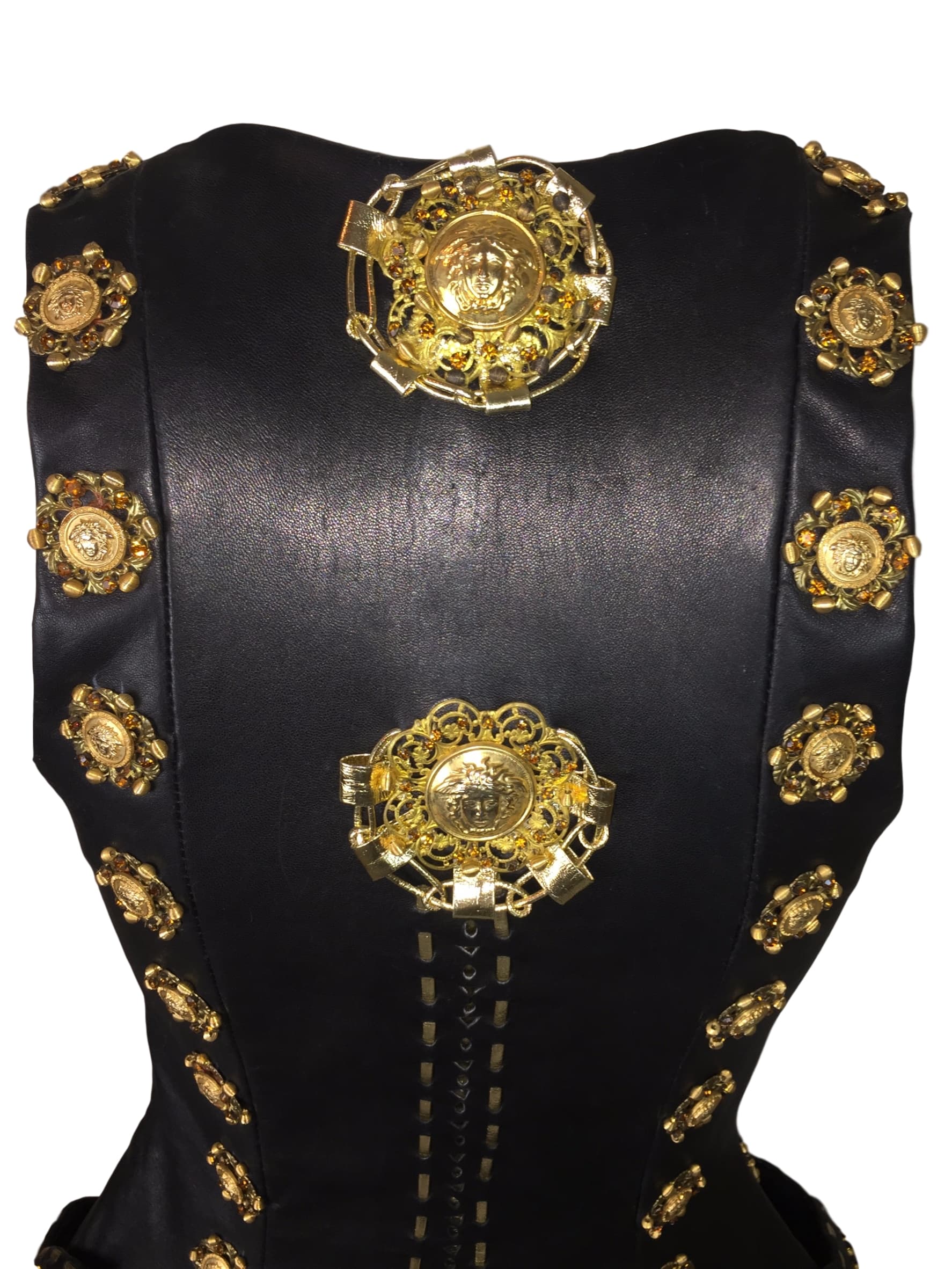 RARE F/W 1992 Atelier Versace Couture by Gianni Runway Black Leather Gold Embellished Mini Dress