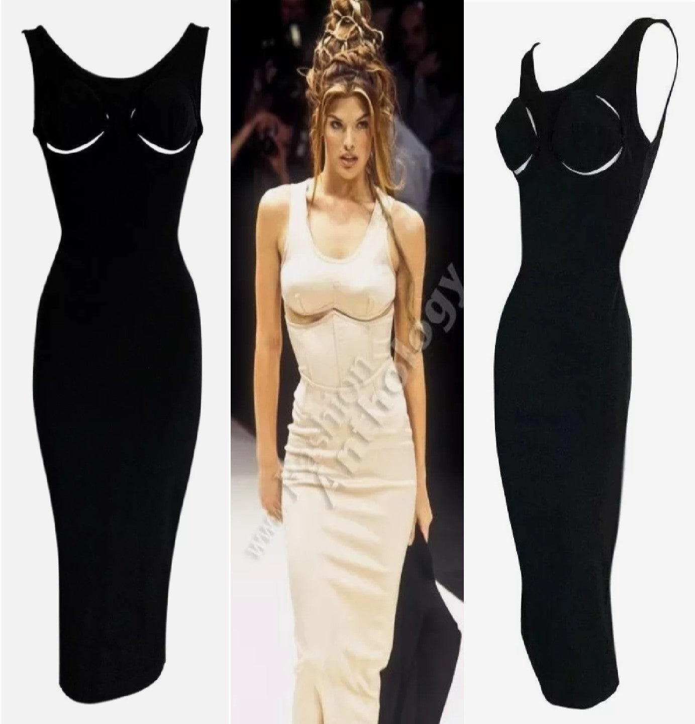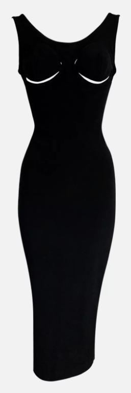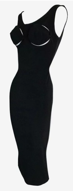 S/S 1993 Jean Paul Gaultier Black Pin-Up Cut-Out 3-D Cone Wiggle Maxi Dress