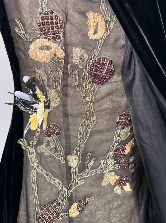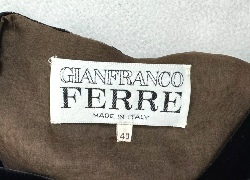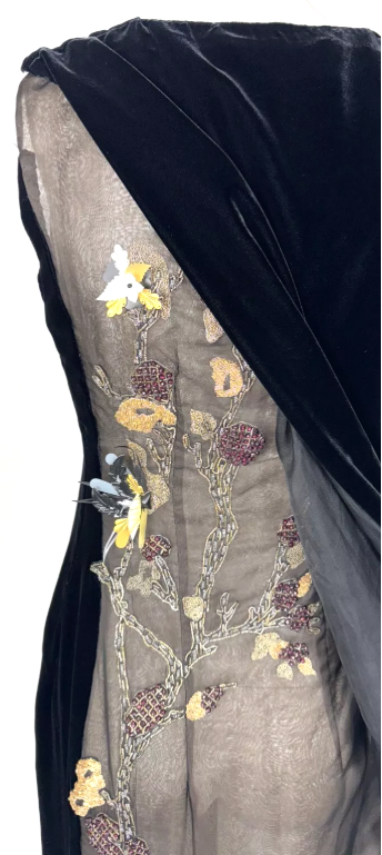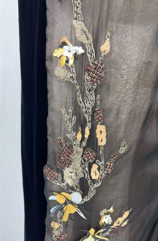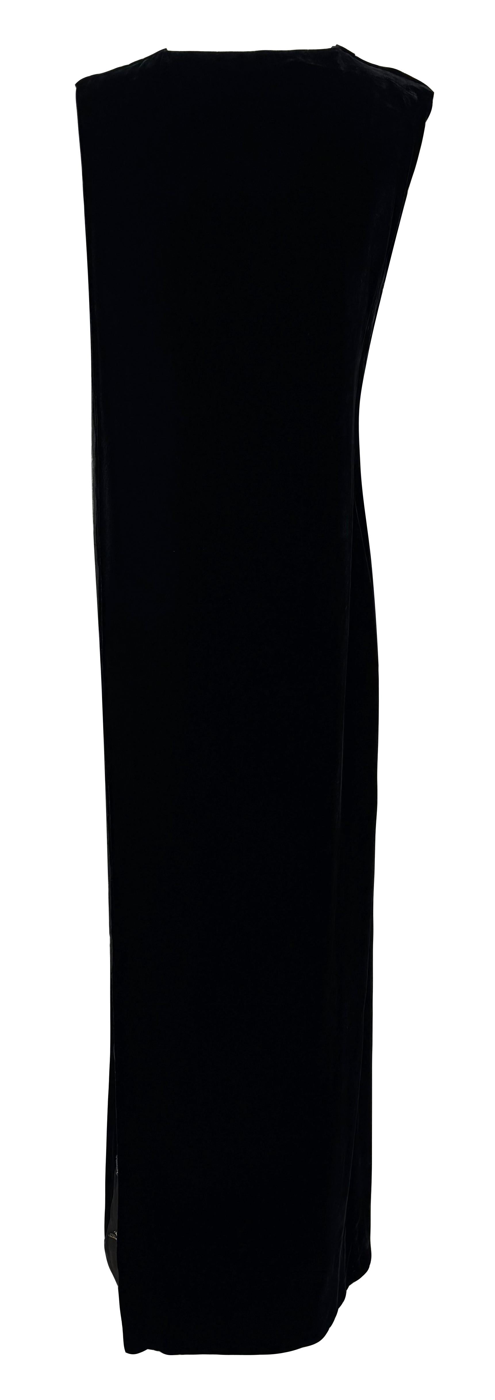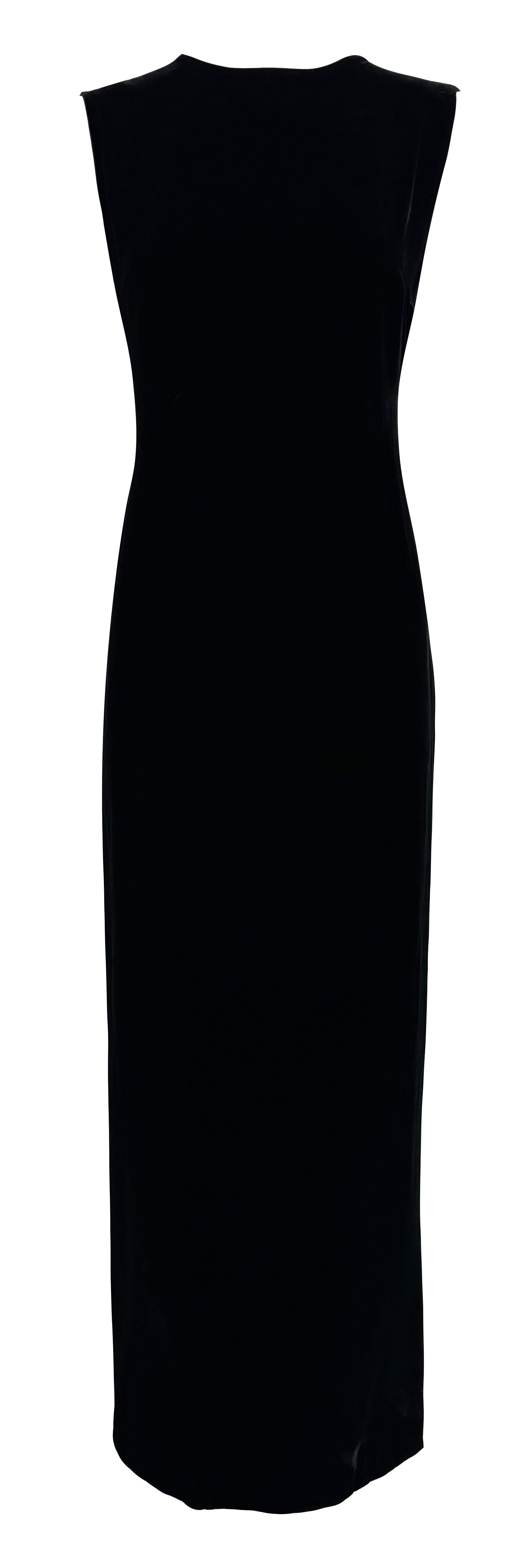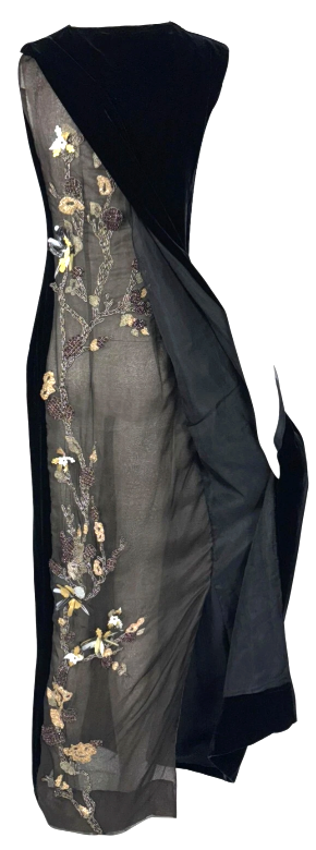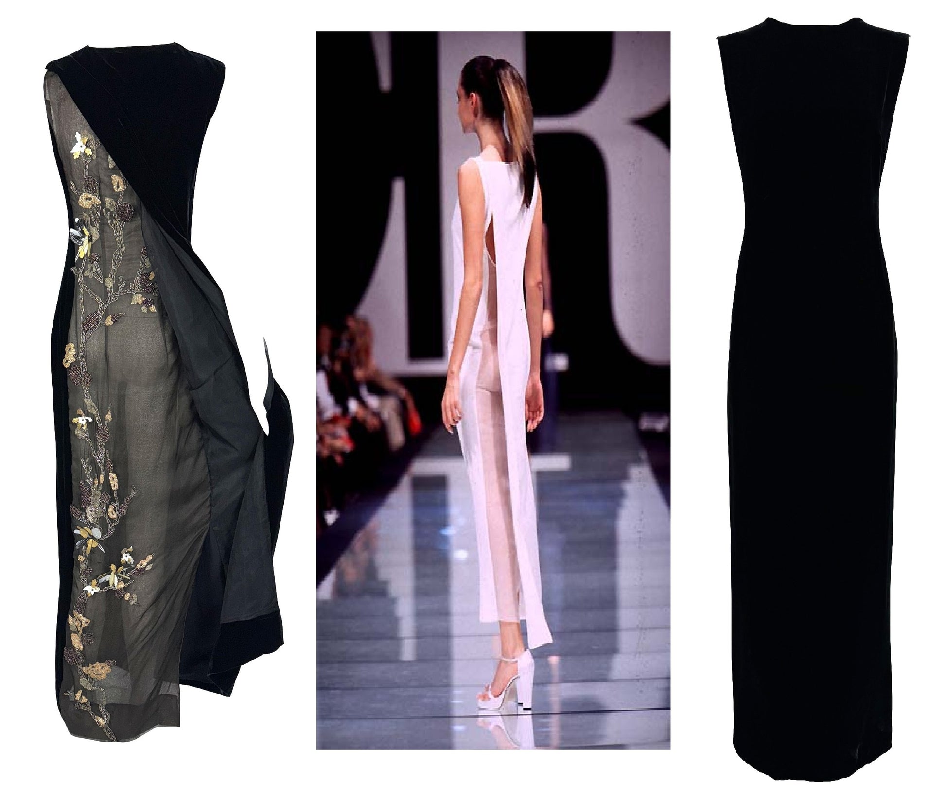 S/S 1997 Gianfranco Ferre Runway Black Velvet Chinoiserie Embellished Sheer Open Back Maxi Dress