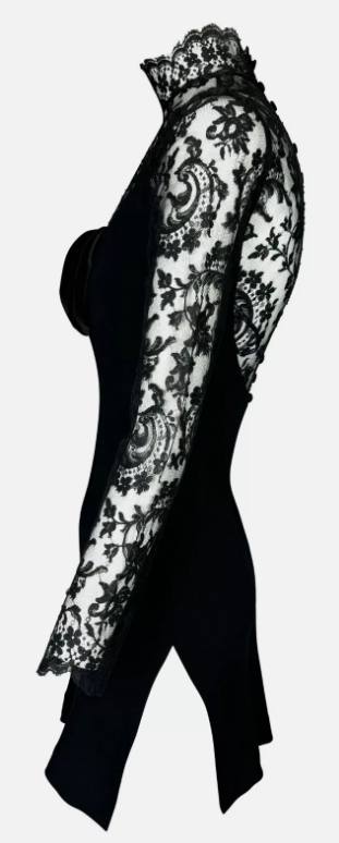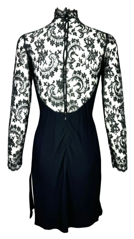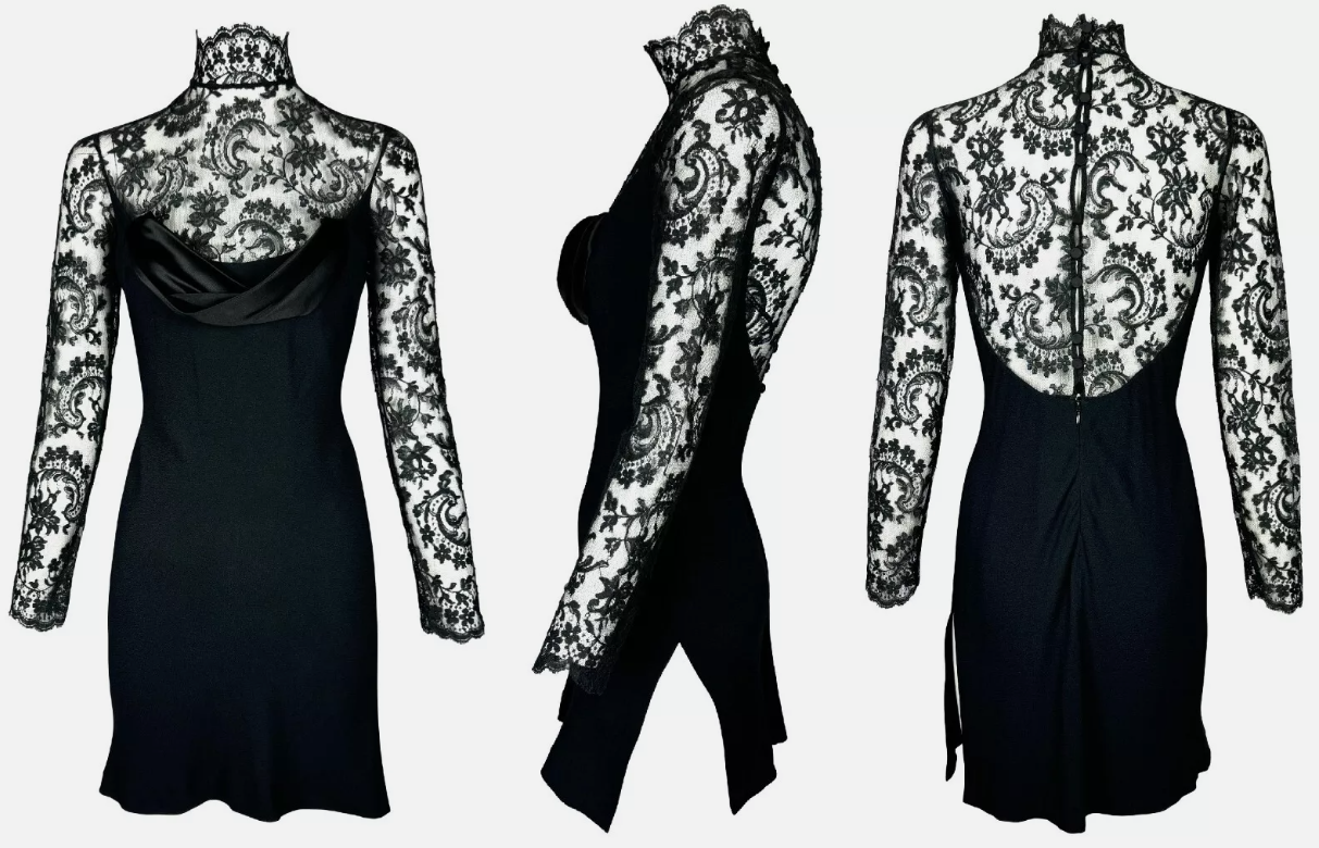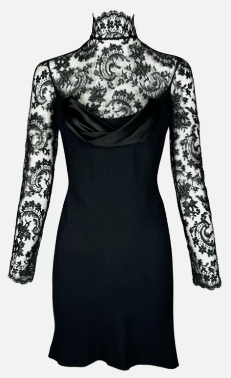 S/S 1997 Givenchy by John Galliano Sheer Black Lace Goth High Neck Mini Dress