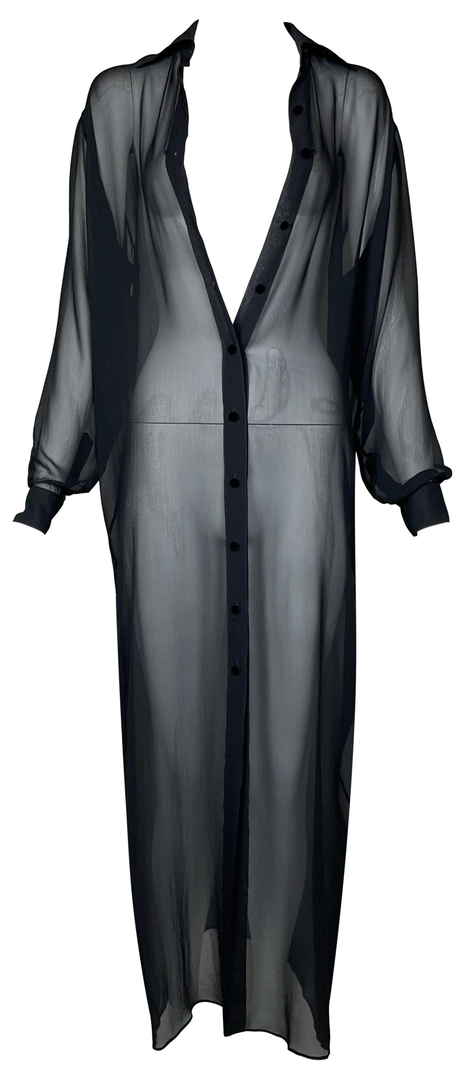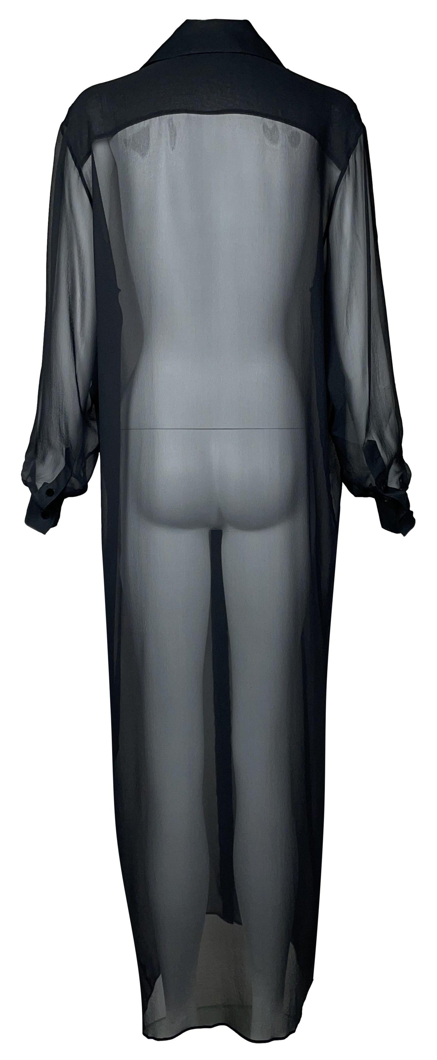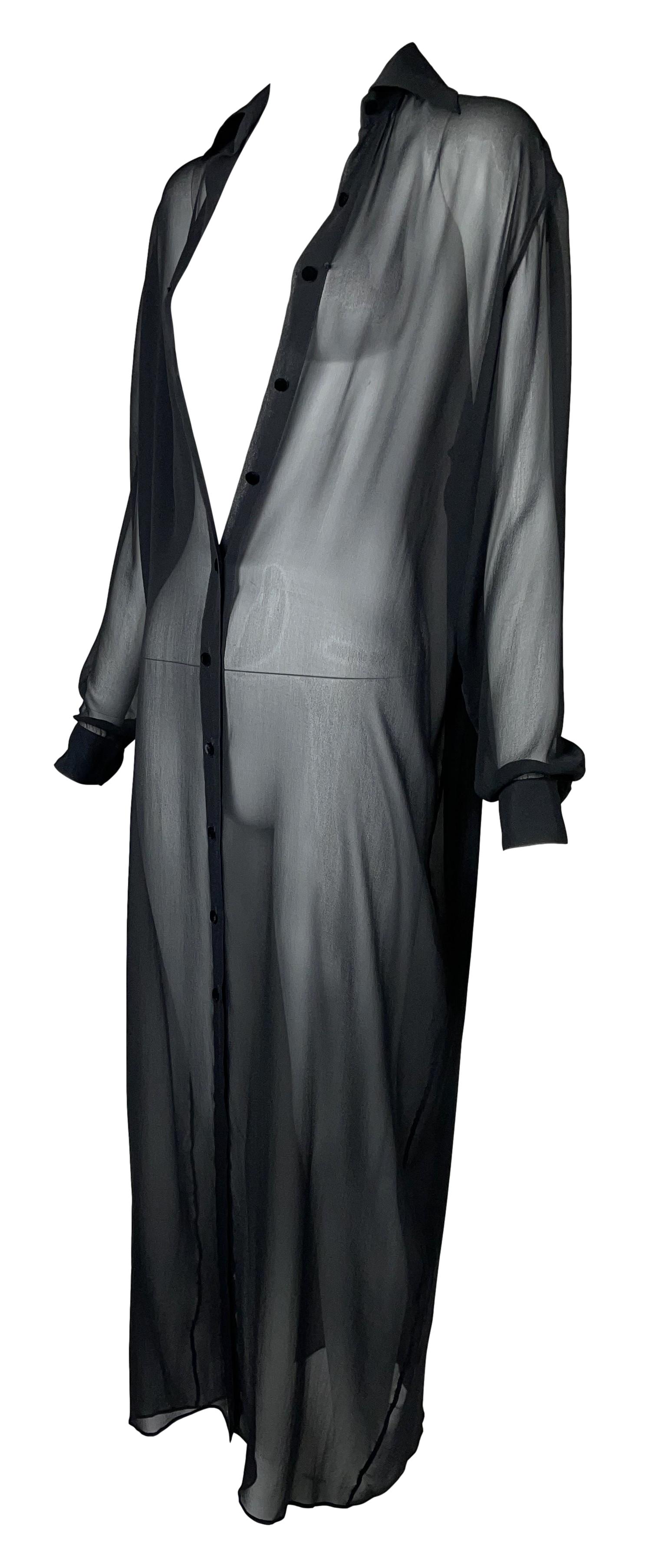 S/S 1997 Givenchy Couture by John Galliano Runway Sheer Black Silk Maxi Shirt Dress