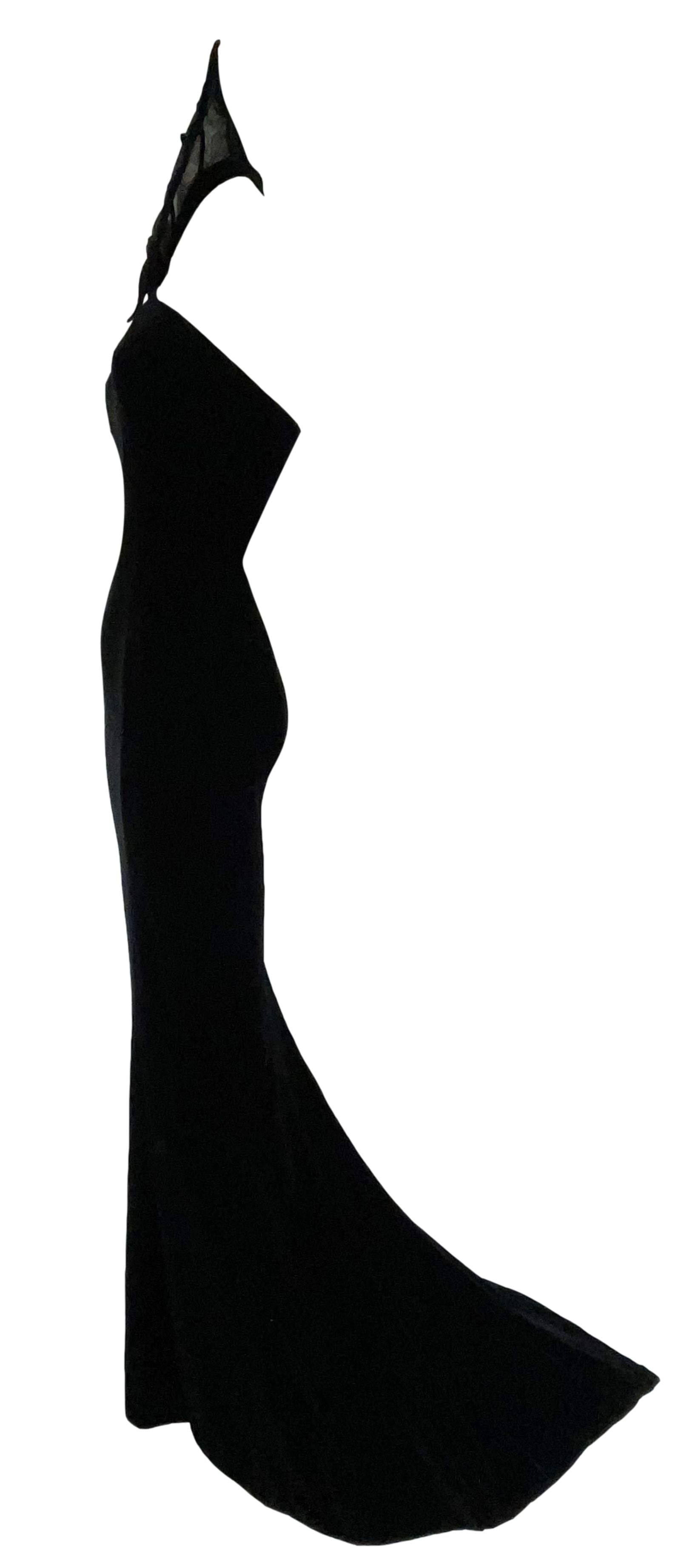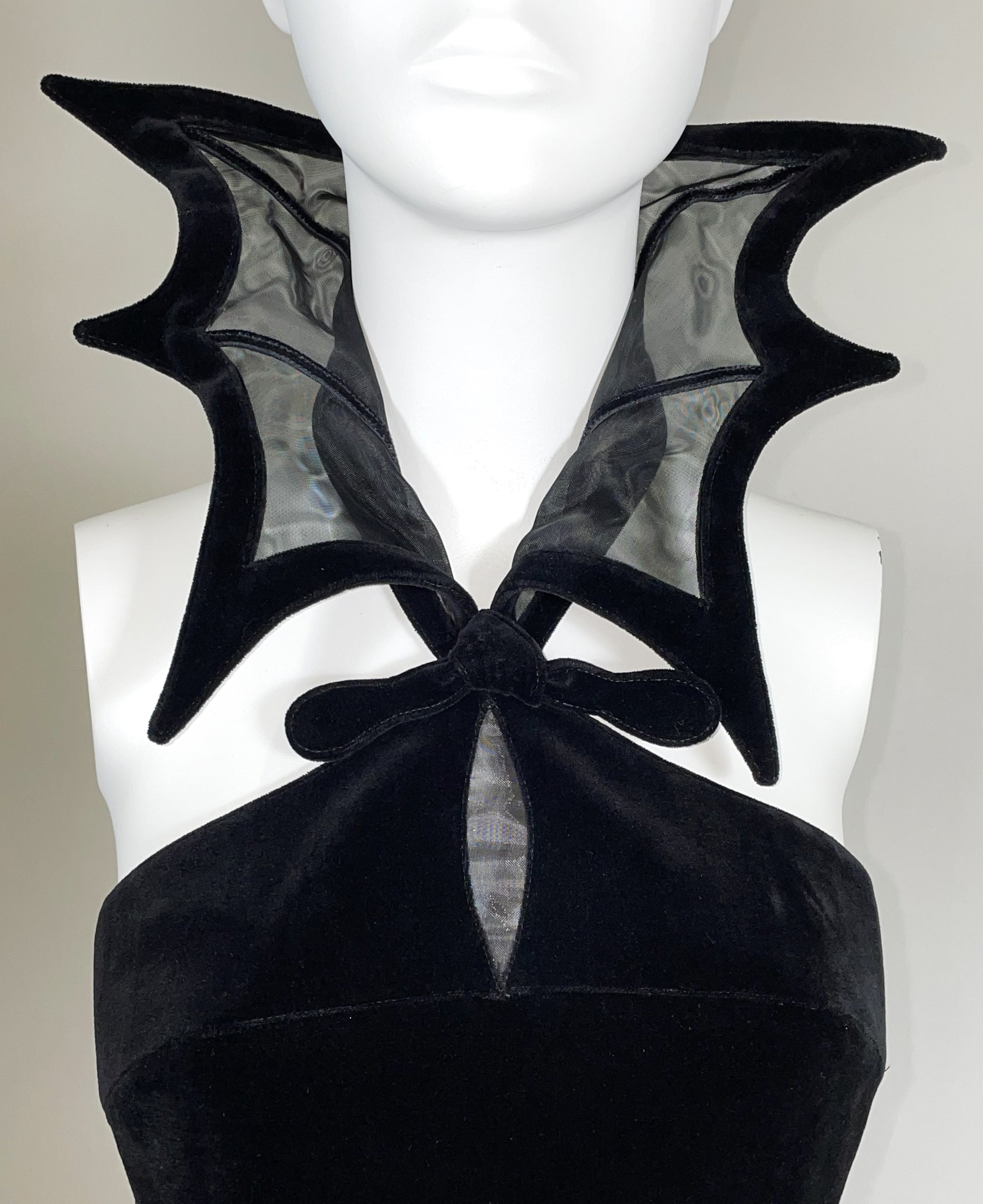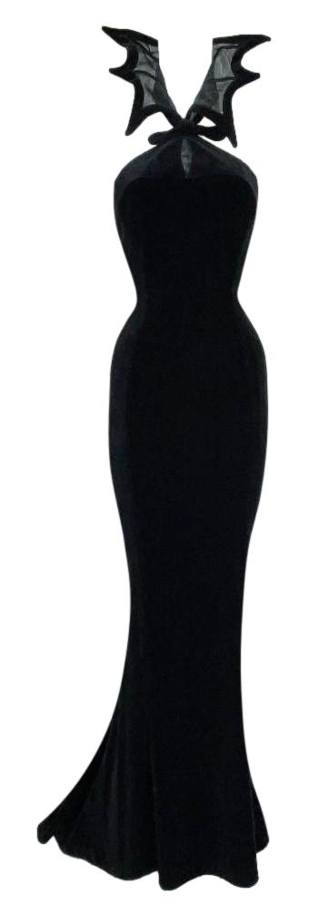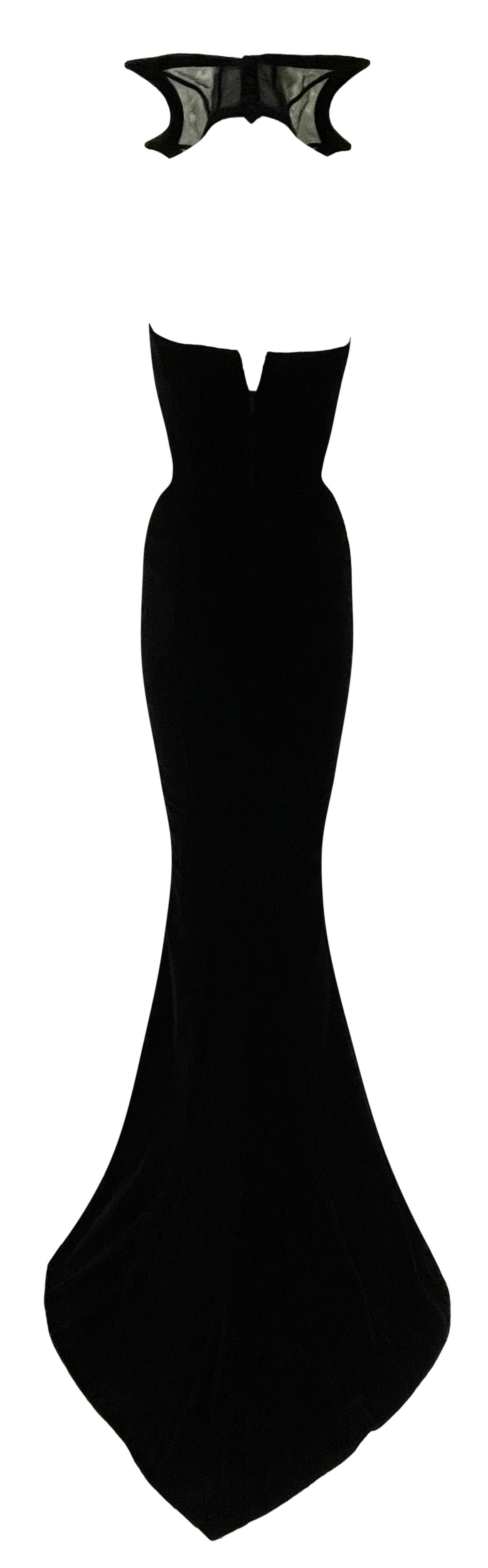 S/S 1997 Thierry Mugler Kiss of the Spiderwoman Black Velvet Mermaid Gown Dress