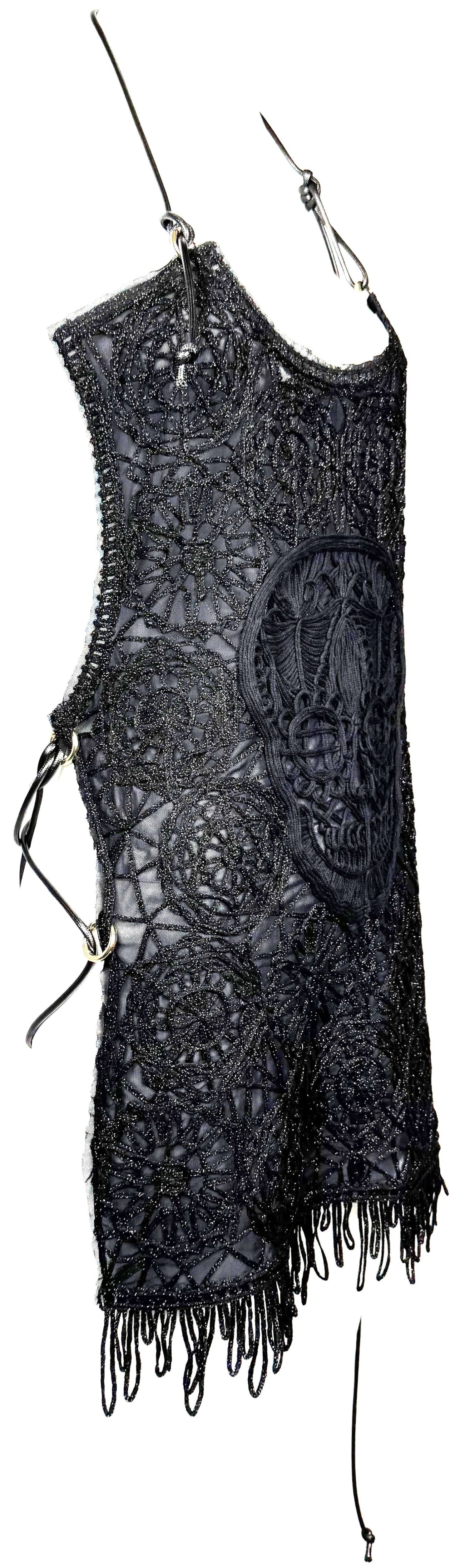 S/S 2000 Alexander McQueen RARE One Off Sample GOTH Sheer Lace Skull Plunging Corset Backless Mini Dress Tunic Top