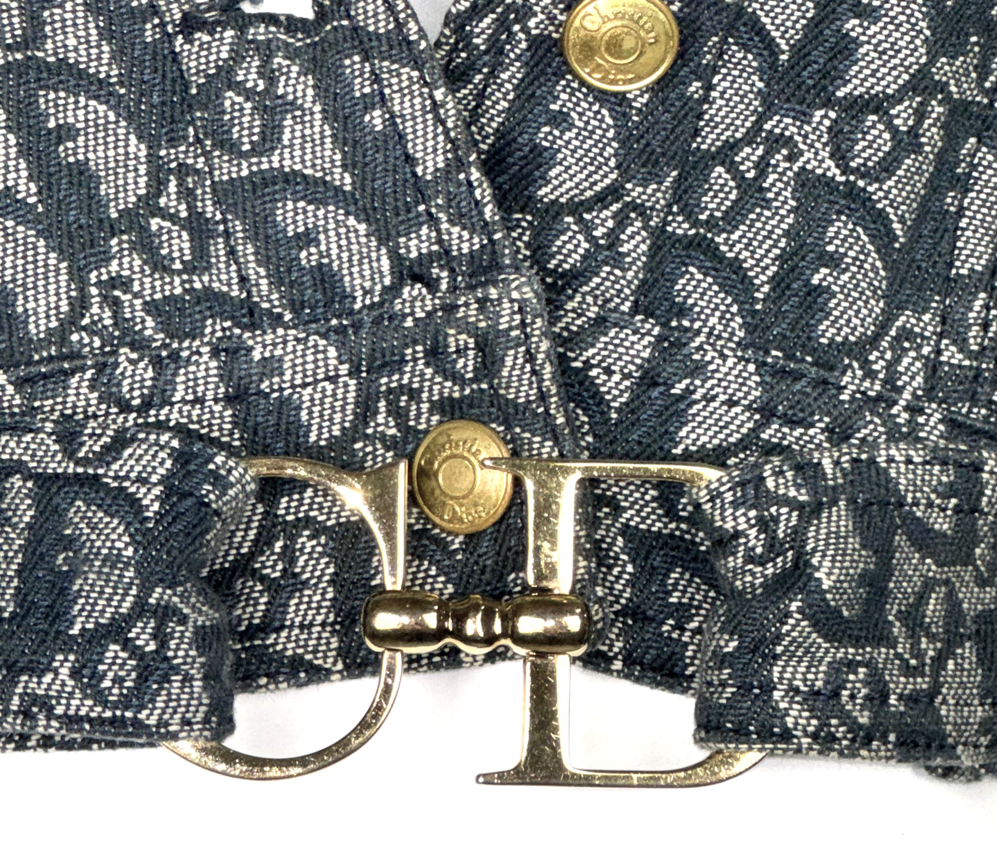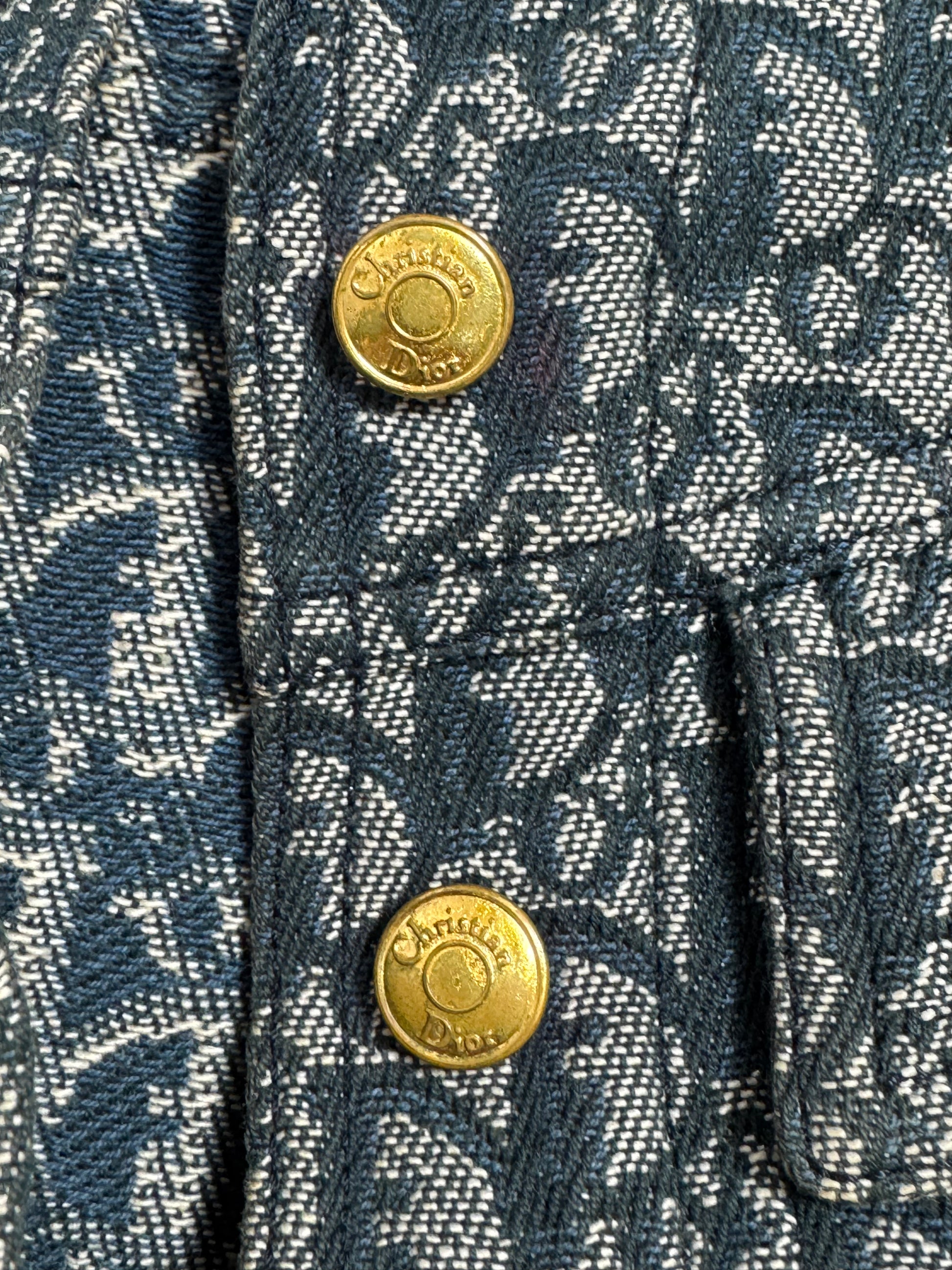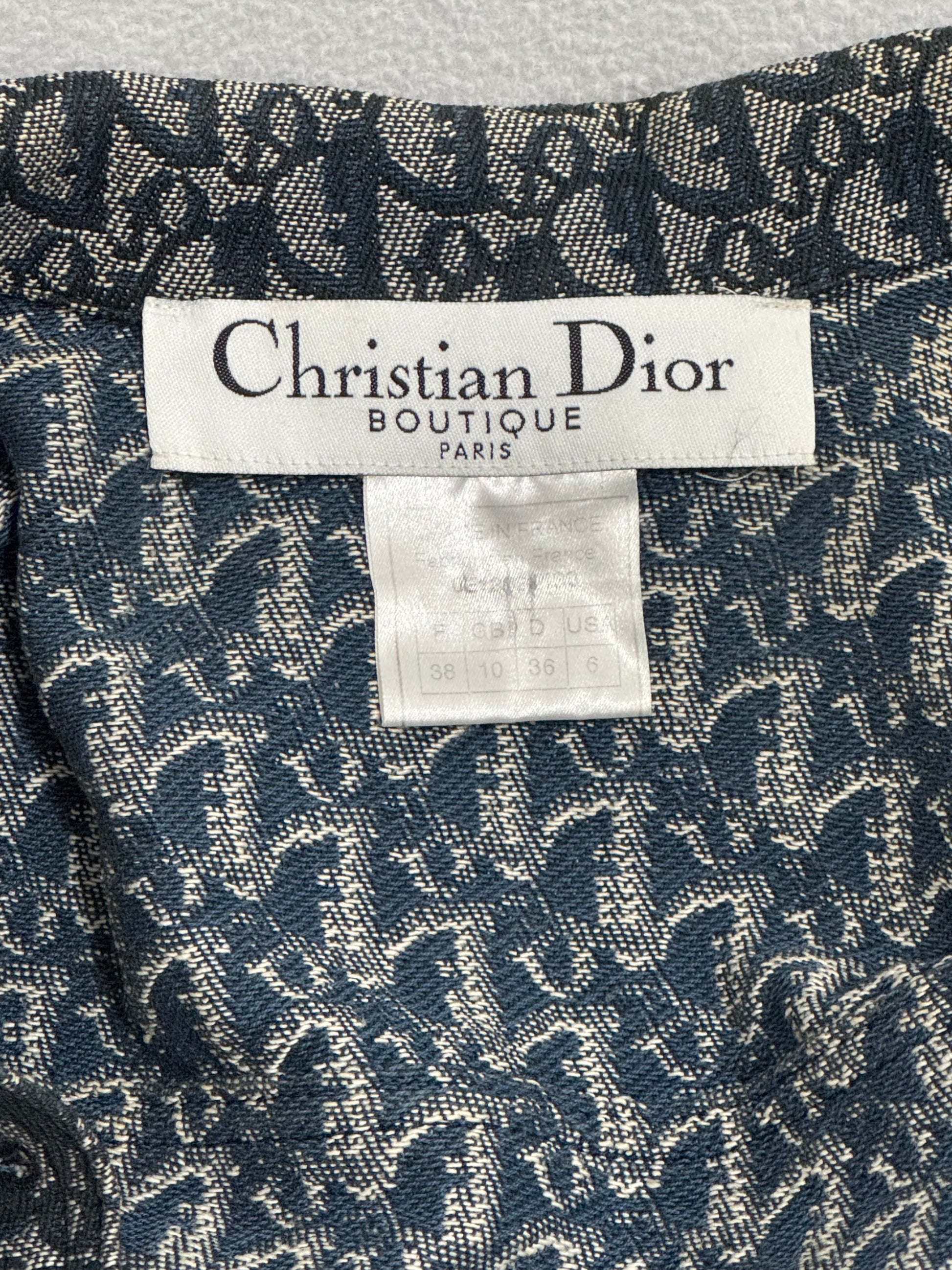S/S 2000 Christian Dior by John Galliano Logo Monogram Trotter Denim Cropped Buckle Jacket & Zipper Maxi Skirt