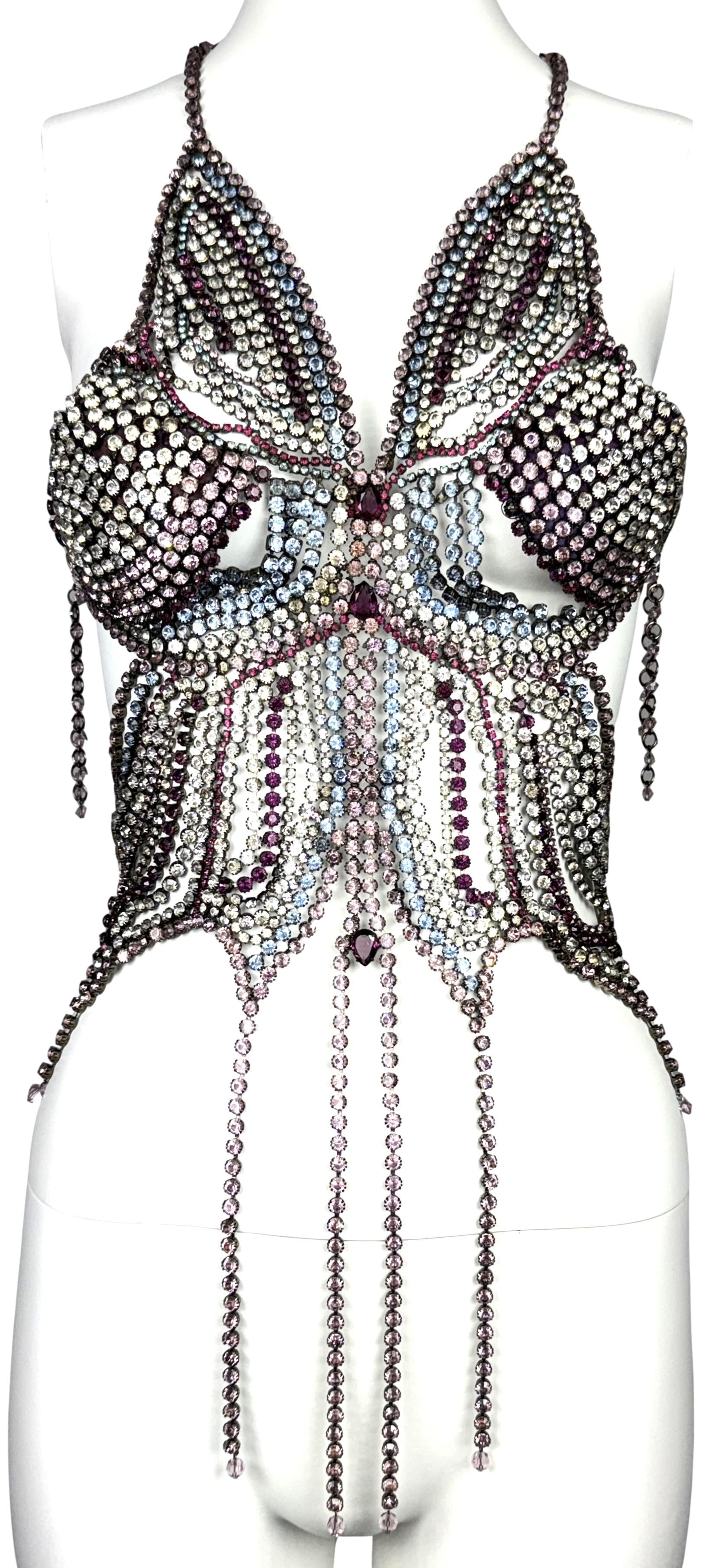 S/S 2000 Emanuel Ungaro HAUTE COUTURE RARE Runway Butterfly Crystal Chain Necklace Top