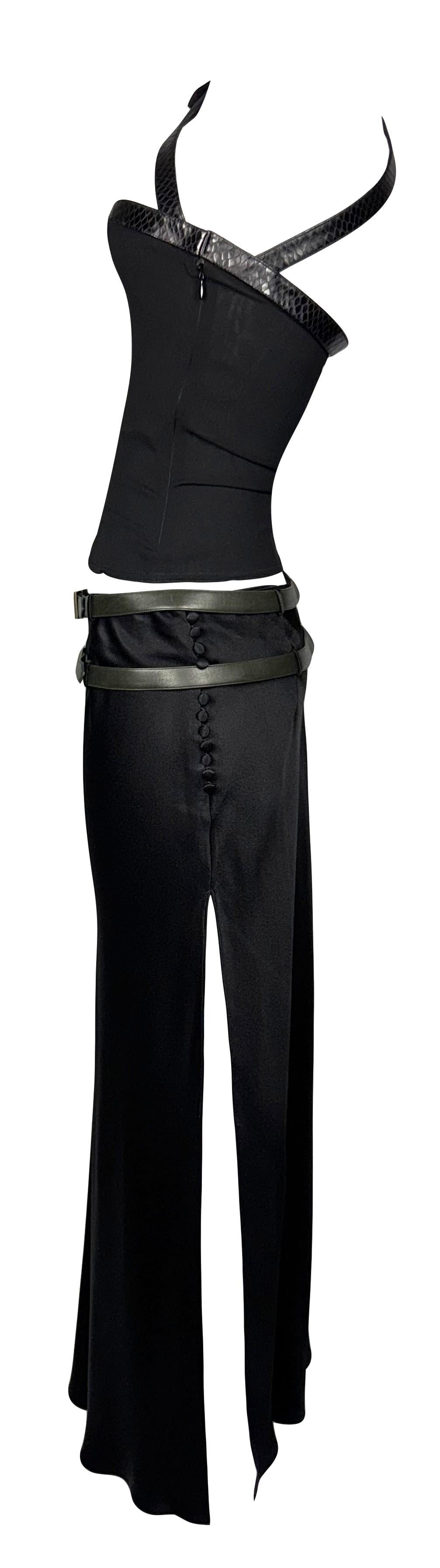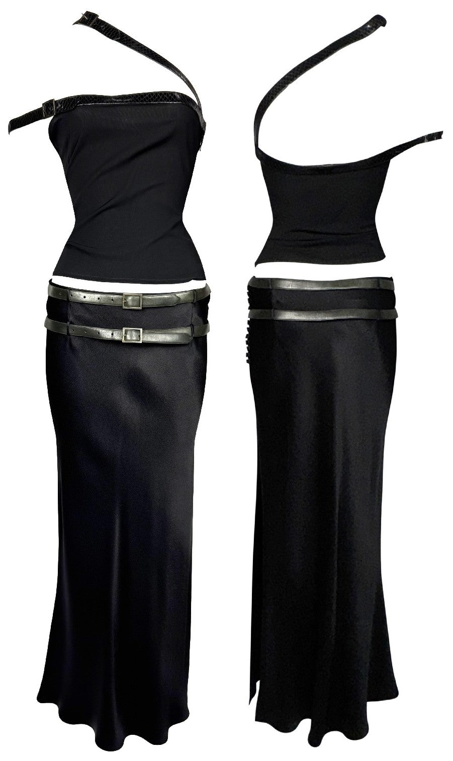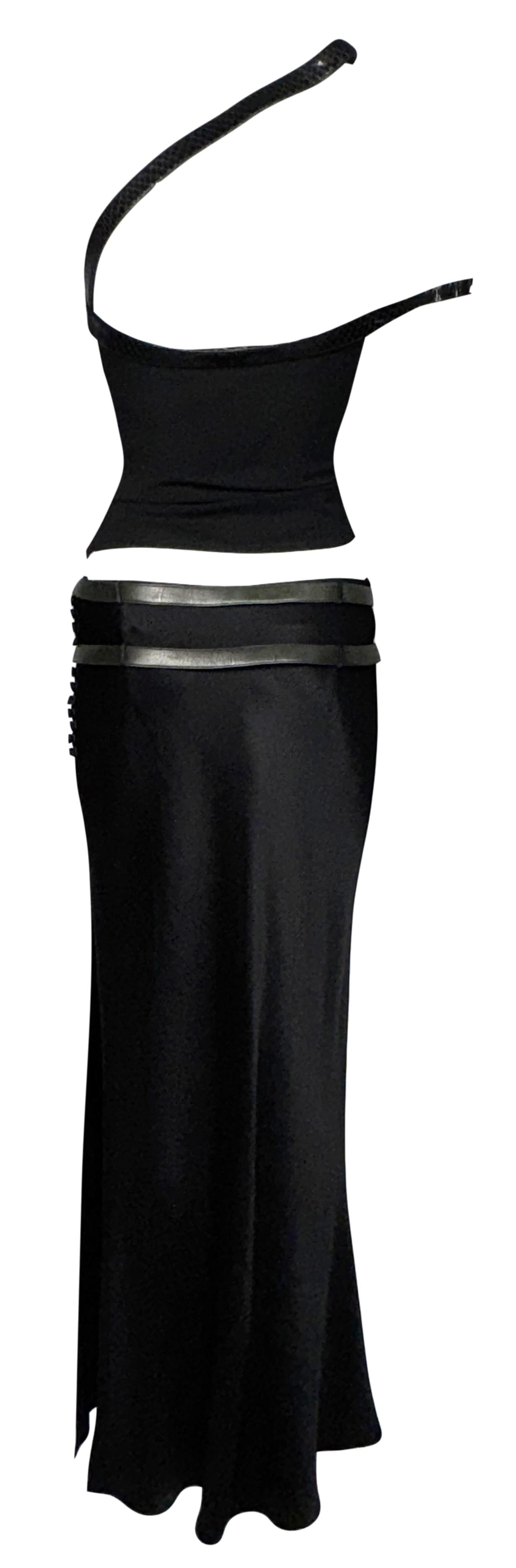 S/S 2001 Christian Dior by John Galliano Black Satin Crop Top & Maxi Skirt Set w Snakeskin Straps
