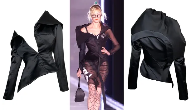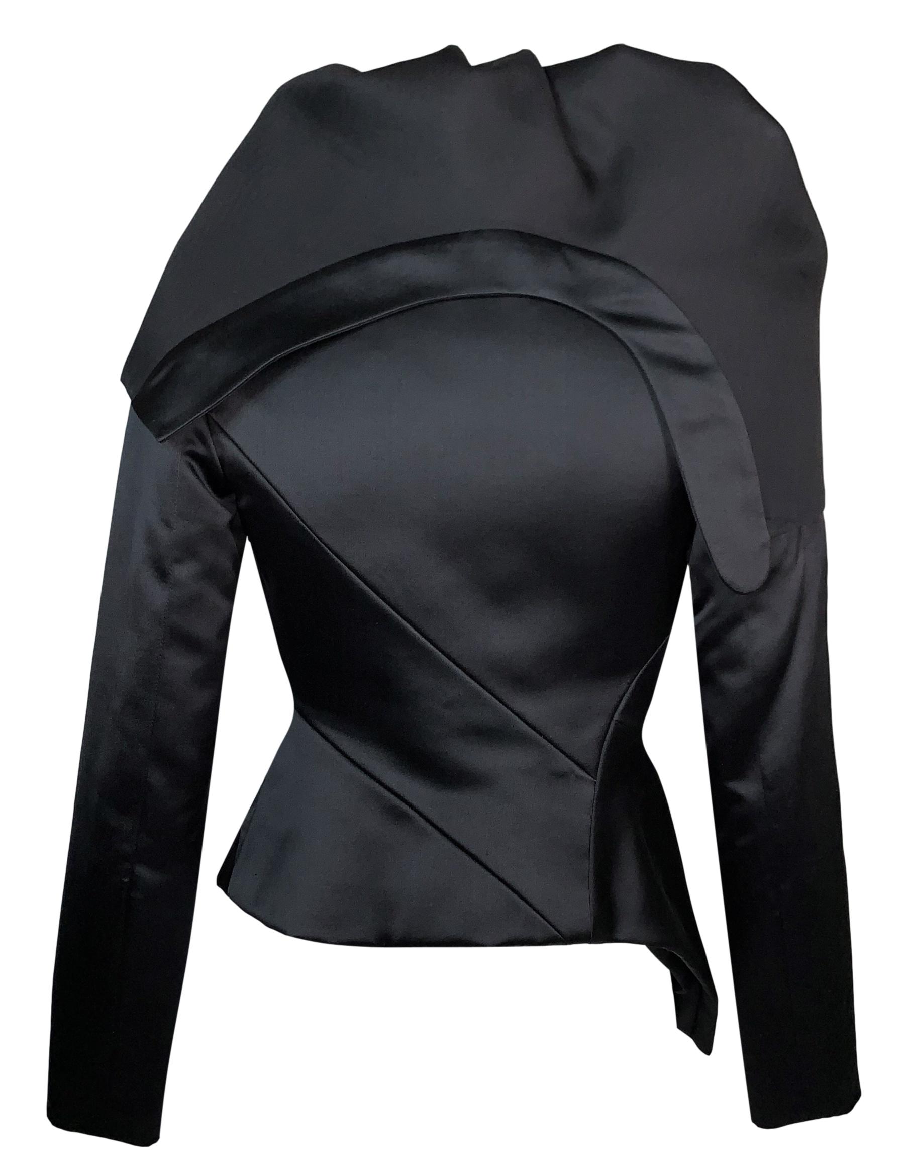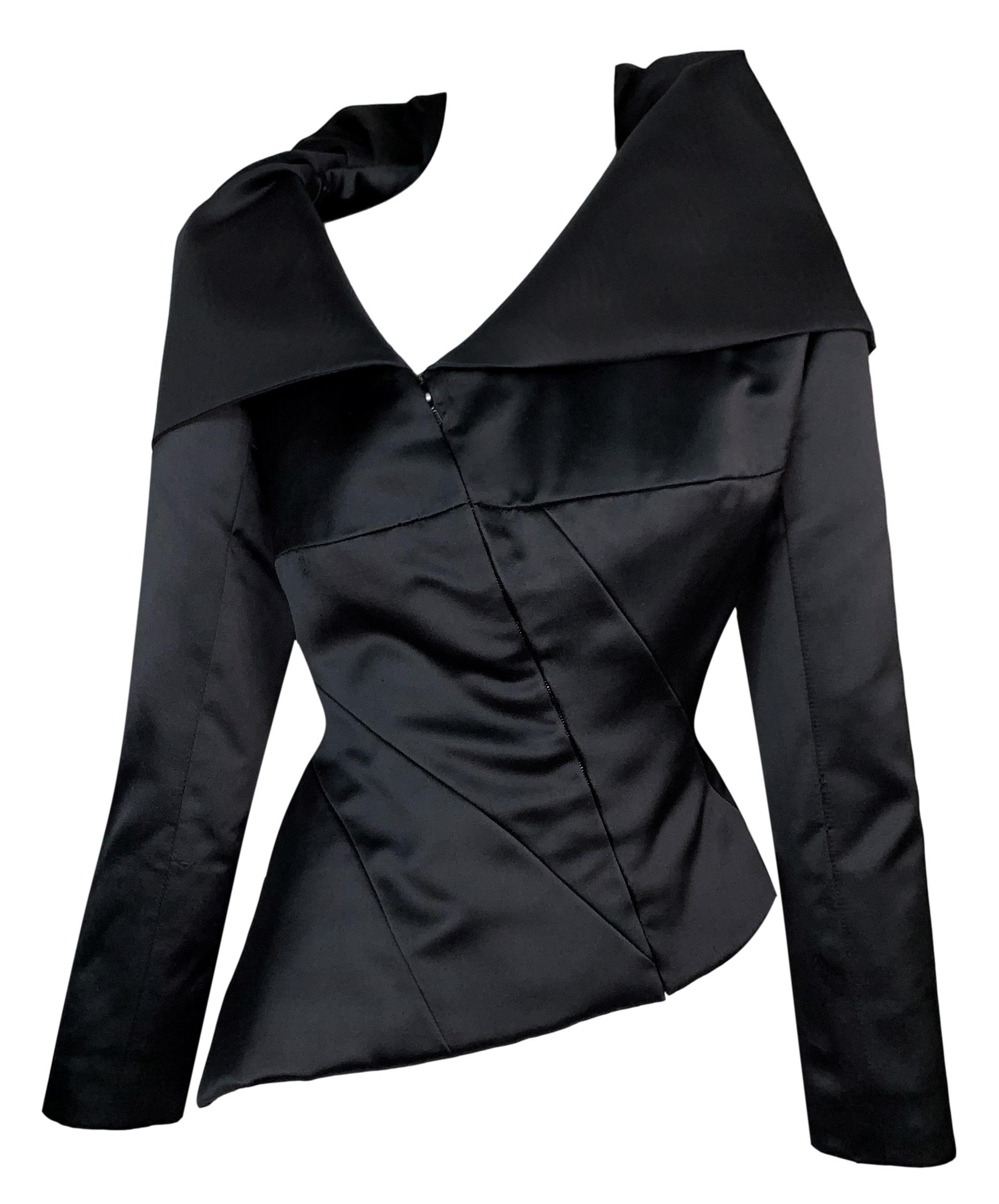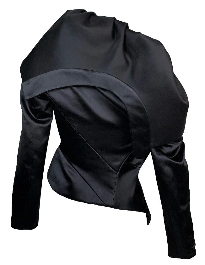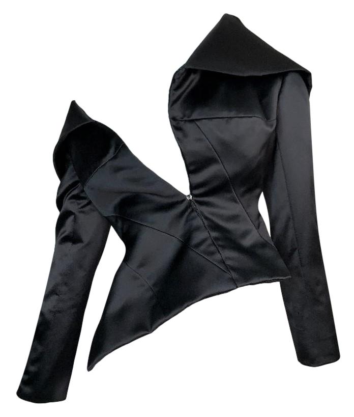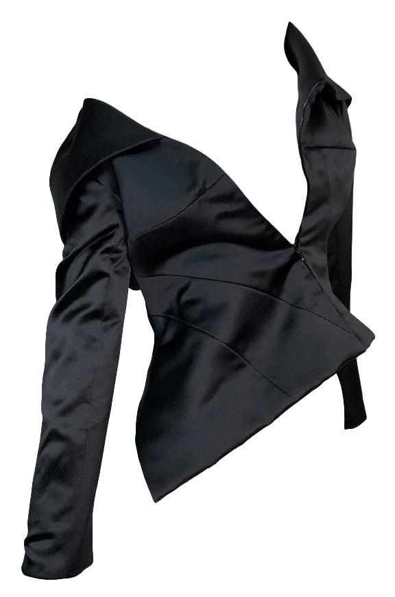 S/S 2001 Christian Dior by John Galliano Haute Couture Avant Garde Black Satin Off Shoulder Asymmetrical Jacket
