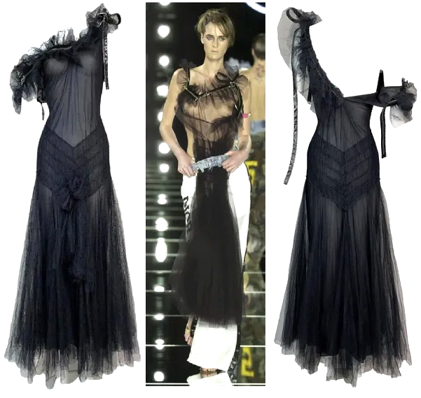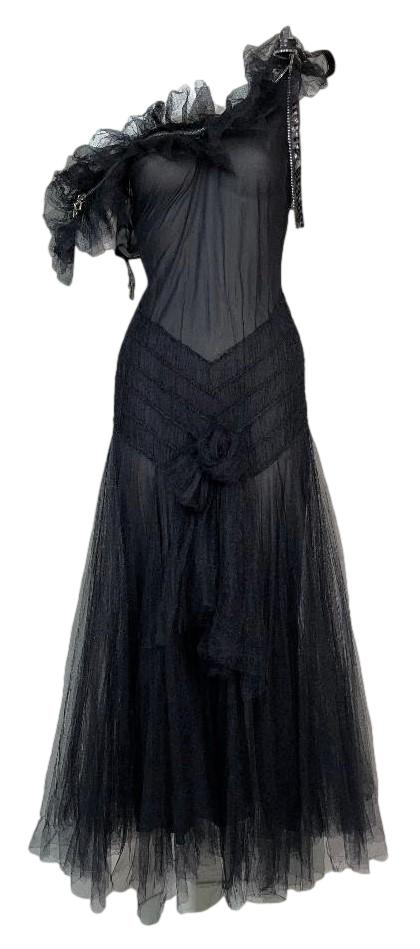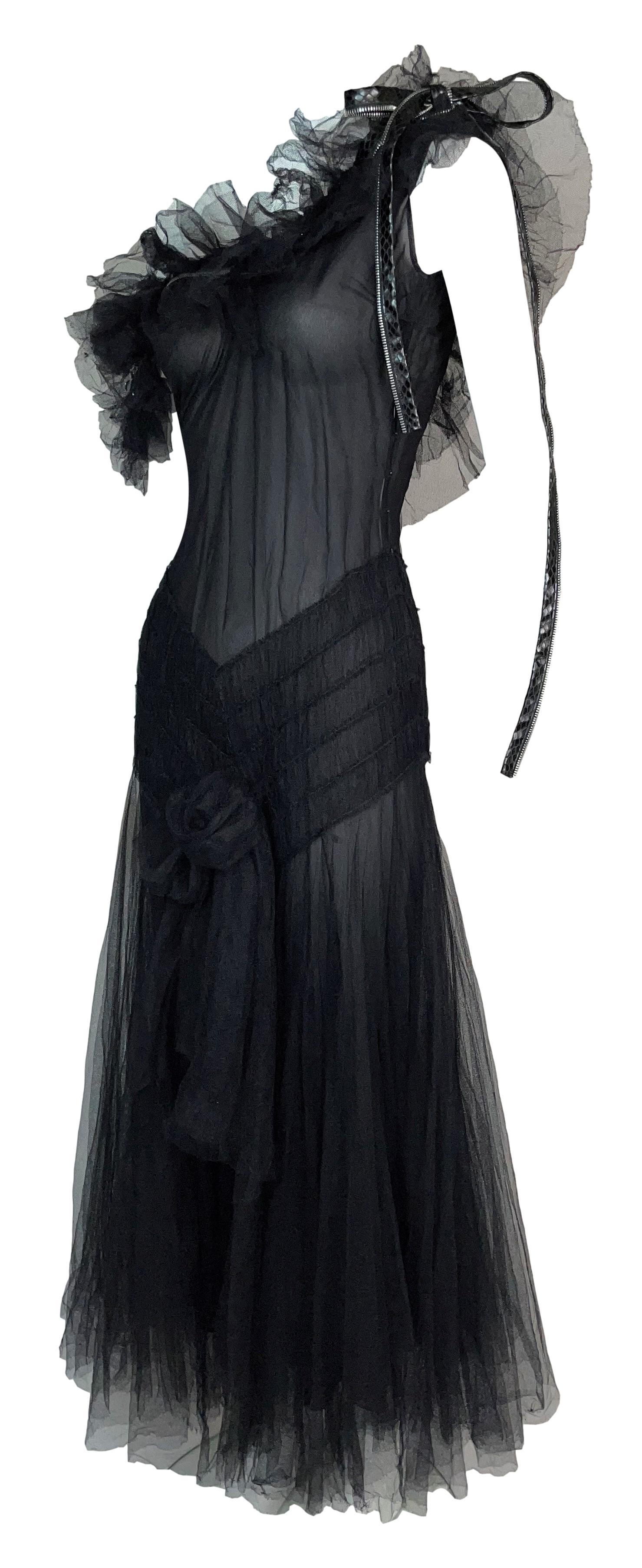 S/S 2001 Christian Dior by John Galliano Runway Black Swan Ballerina Tulle Zipper Dress