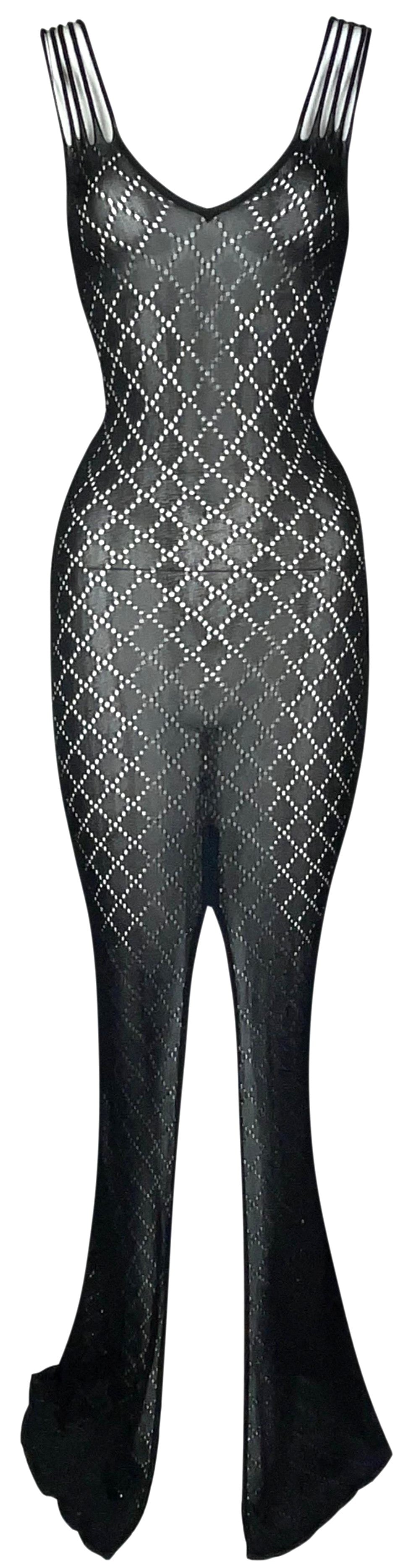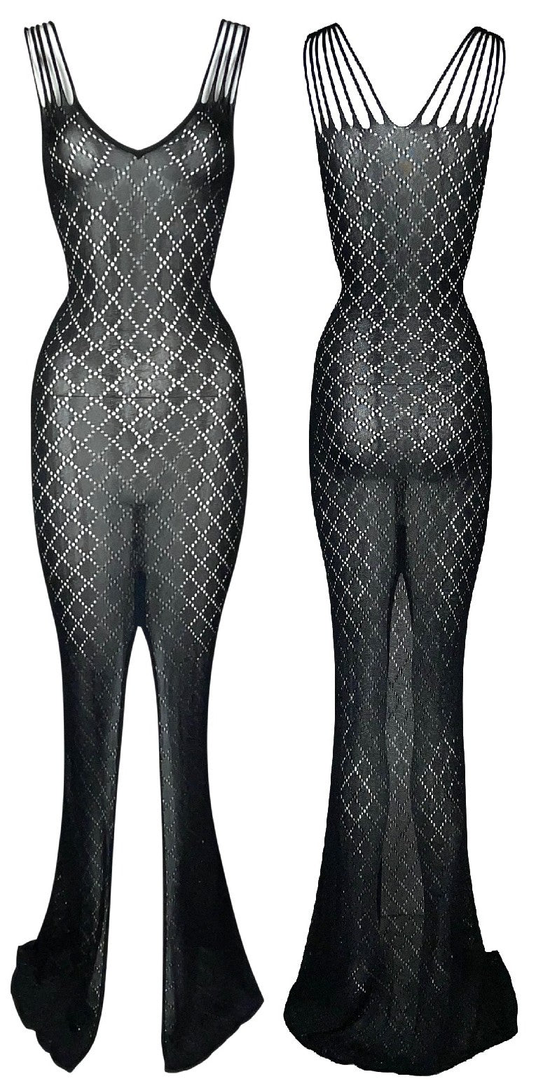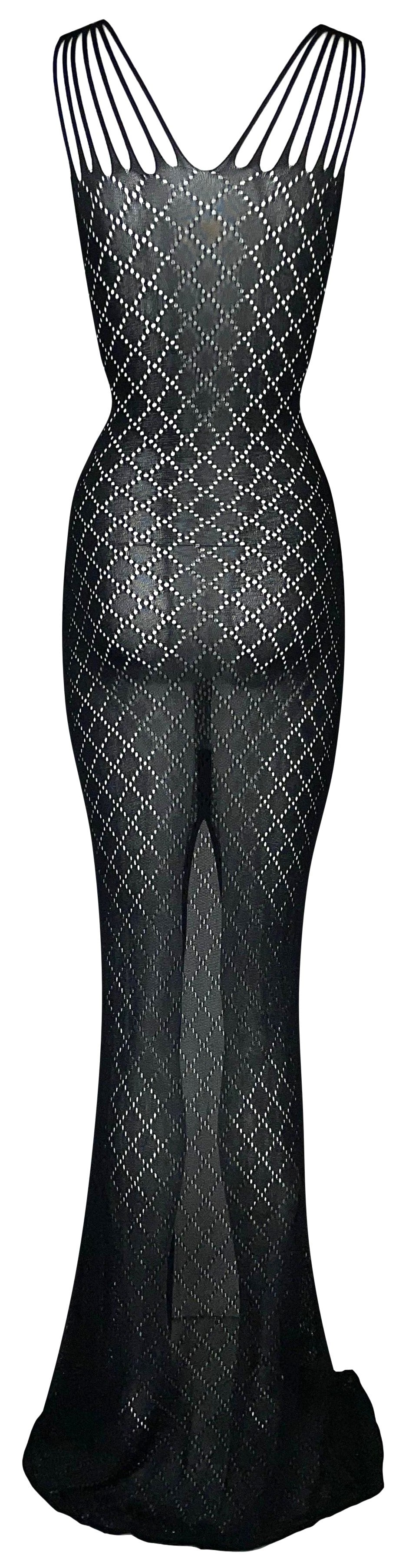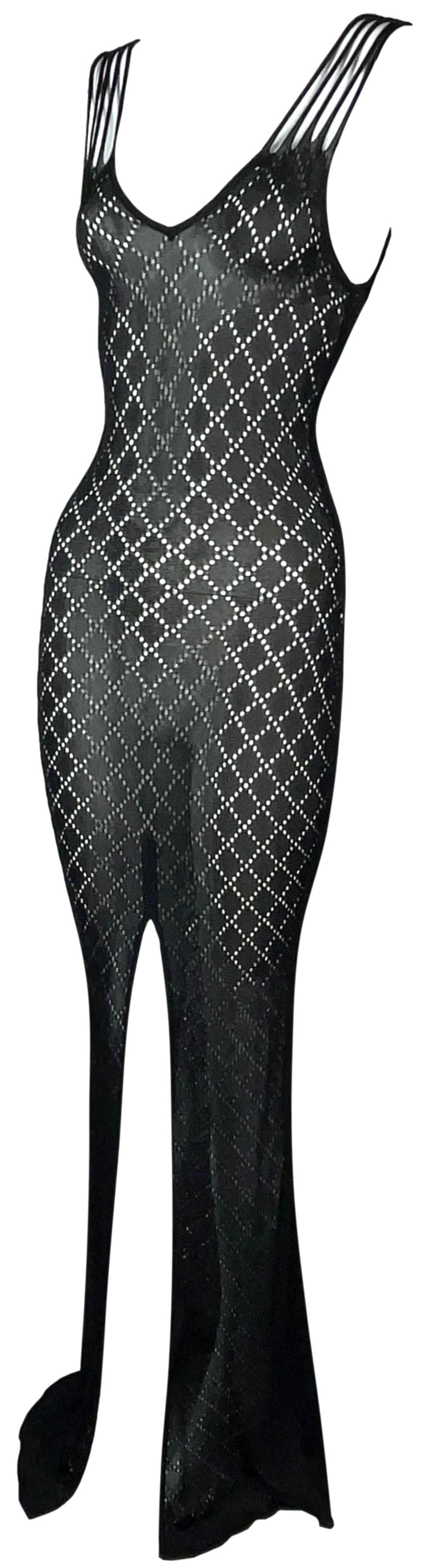 S/S 2001 Christian Dior by John Galliano Sheer Black Knit Bodycon Extra Long Maxi Dress