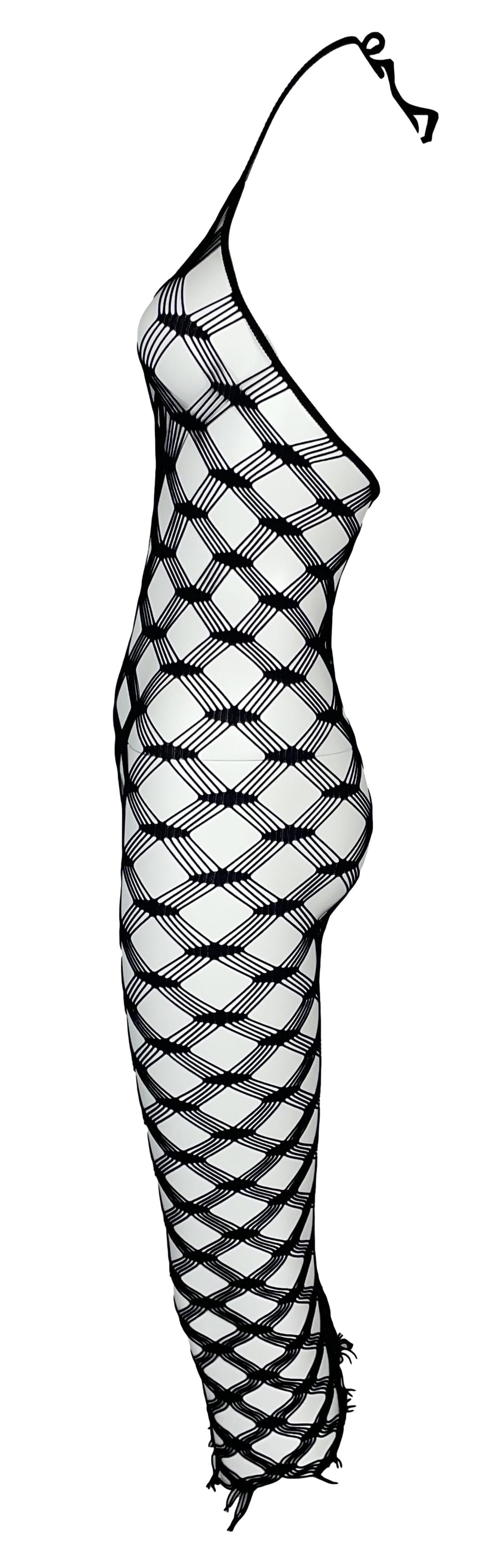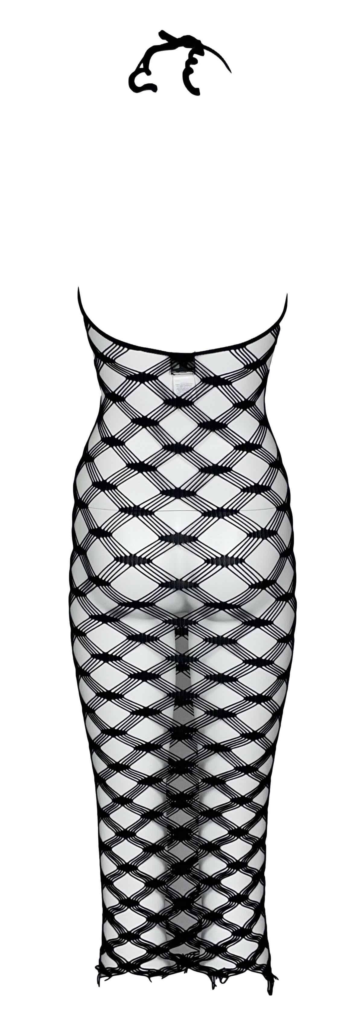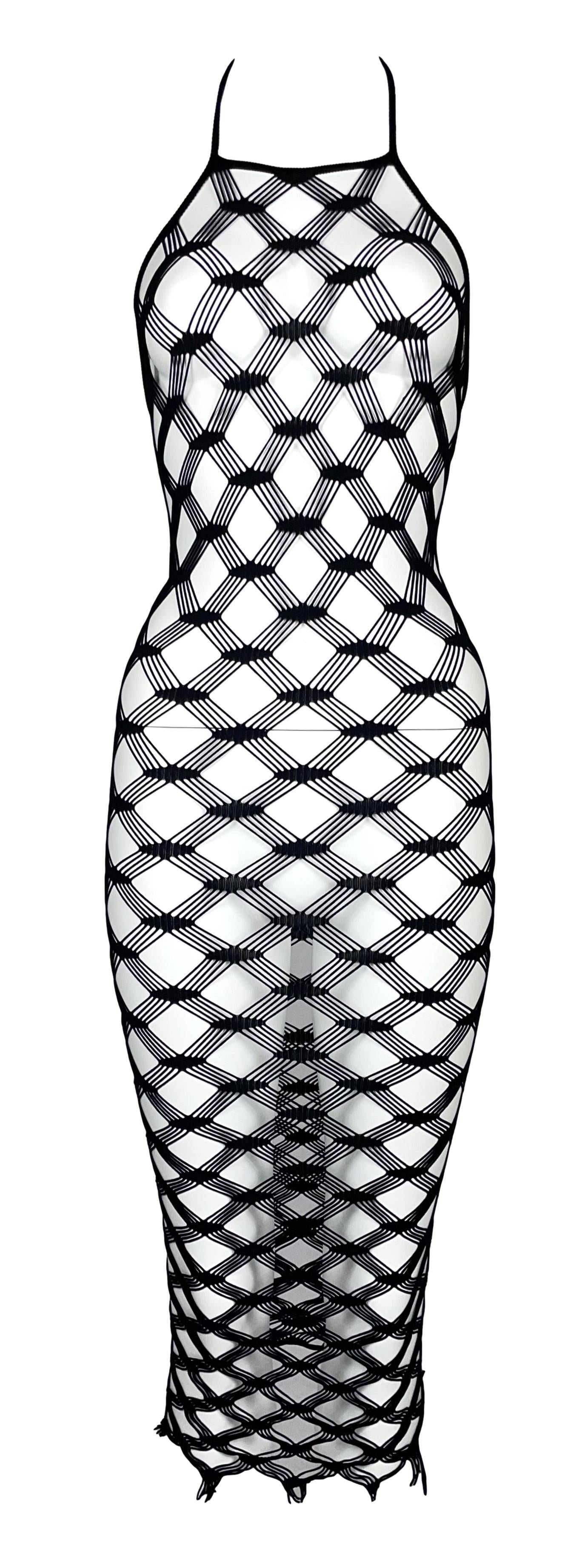 S/S 2001 Jean Paul Gaultier Sheer Black Fishnet Mesh Bodycon Halter Dress