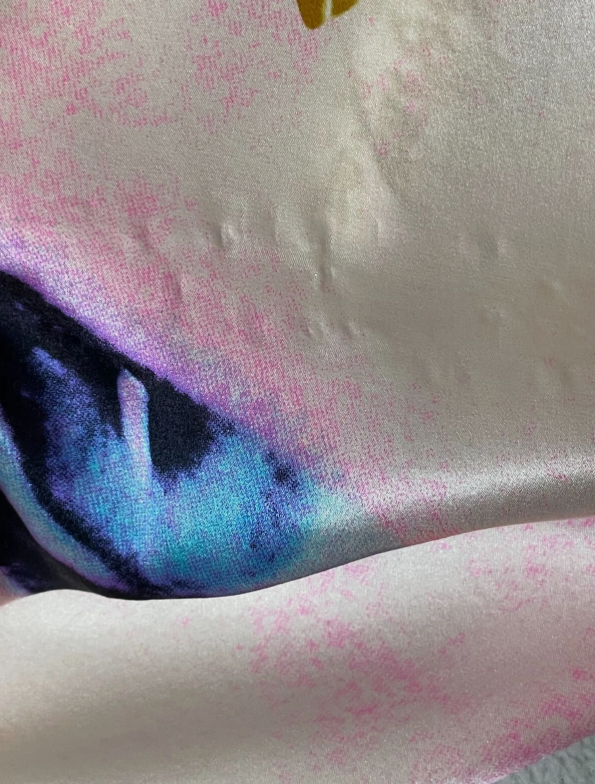 S/S 2001 Roberto Cavalli Pink Face & Roses Print Silk Top & Low Rise Wide Leg Pant Set