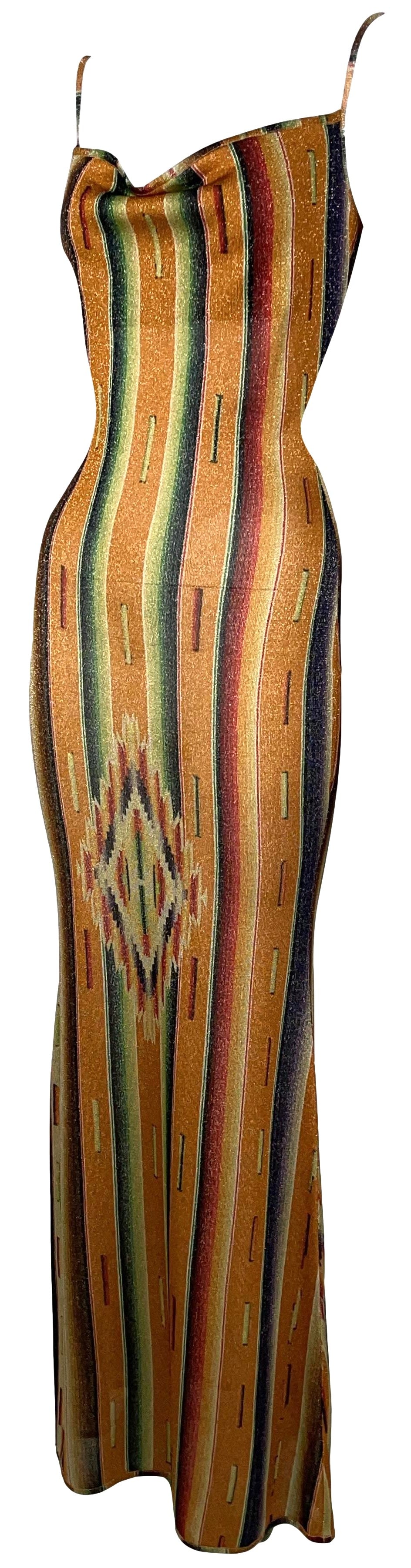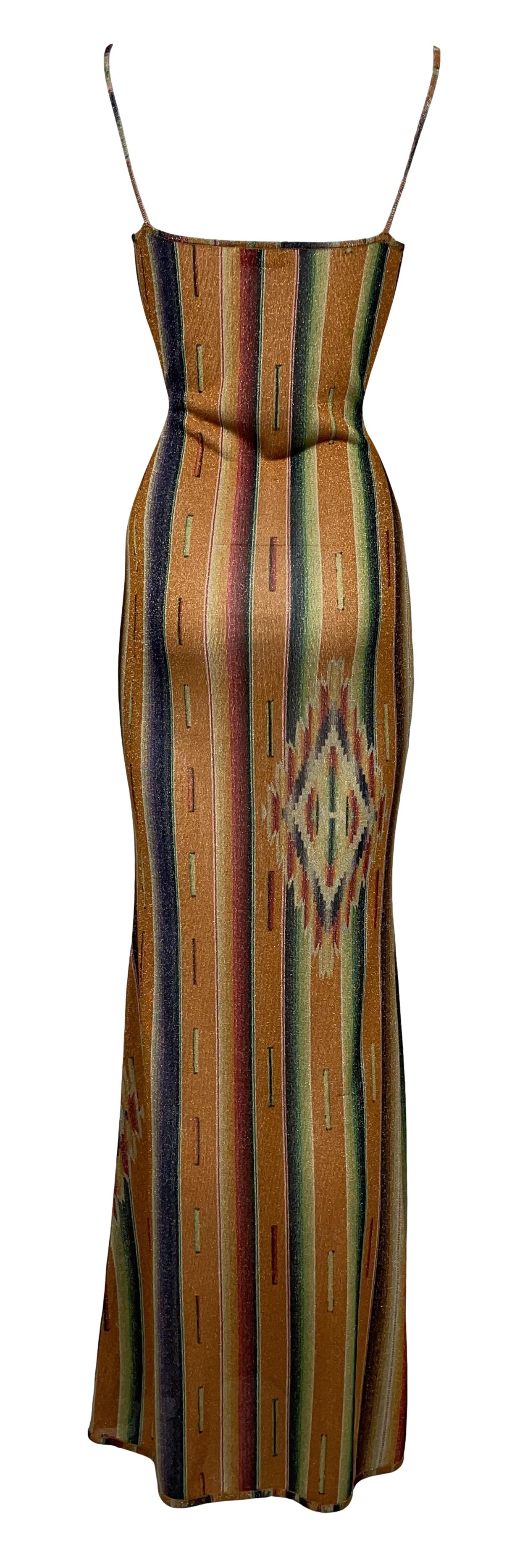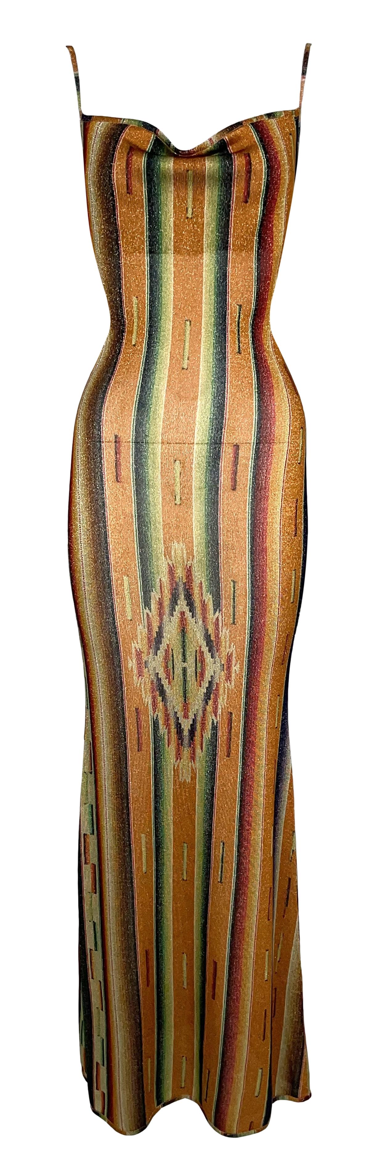 S/S 2002 Christian Dior by John Galliano Western Native American Print Bodycon Maxi Dress