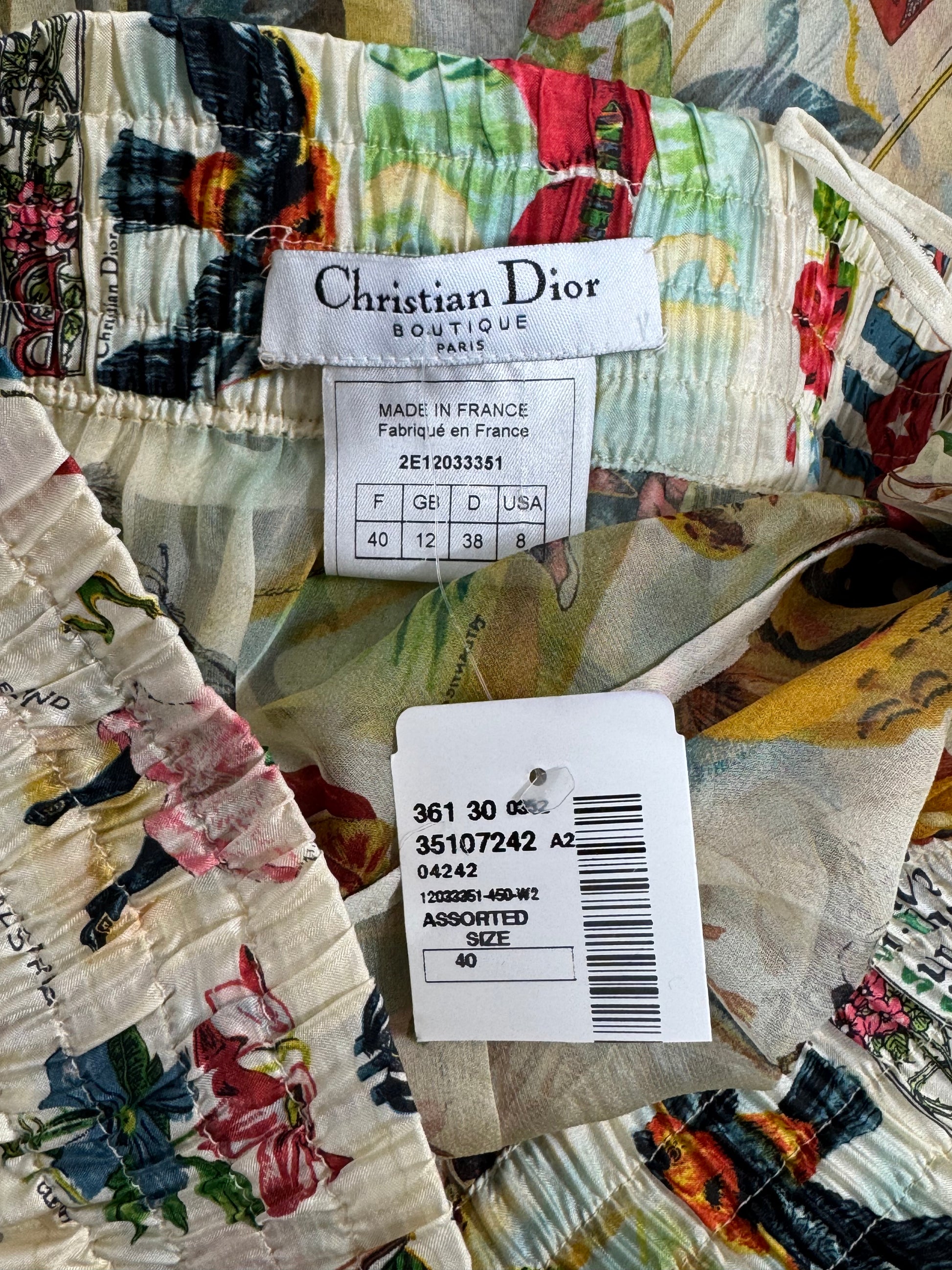 S/S 2002 Christian Dior x John Galliano Ivory Printed Bustier Corset Top & Sheer Silk Maxi Skirt Set