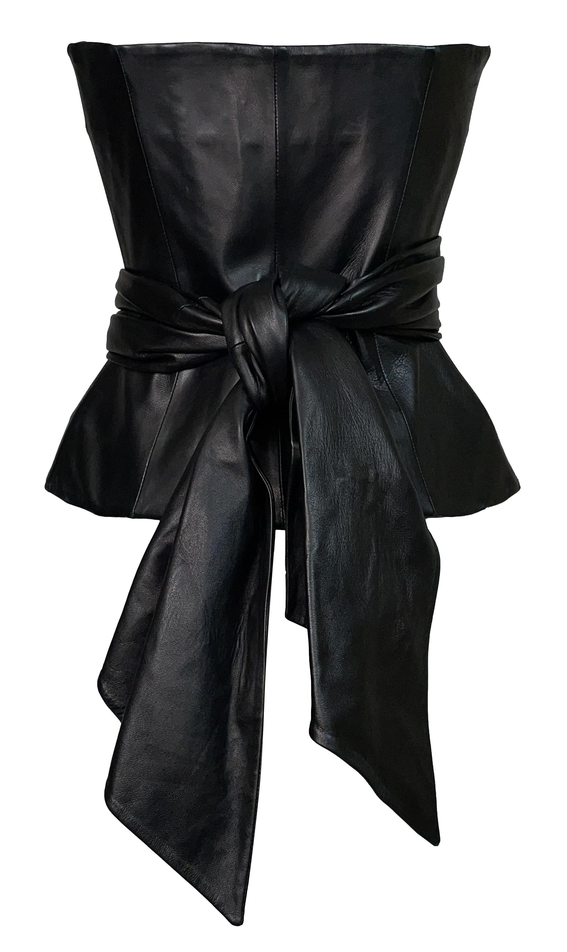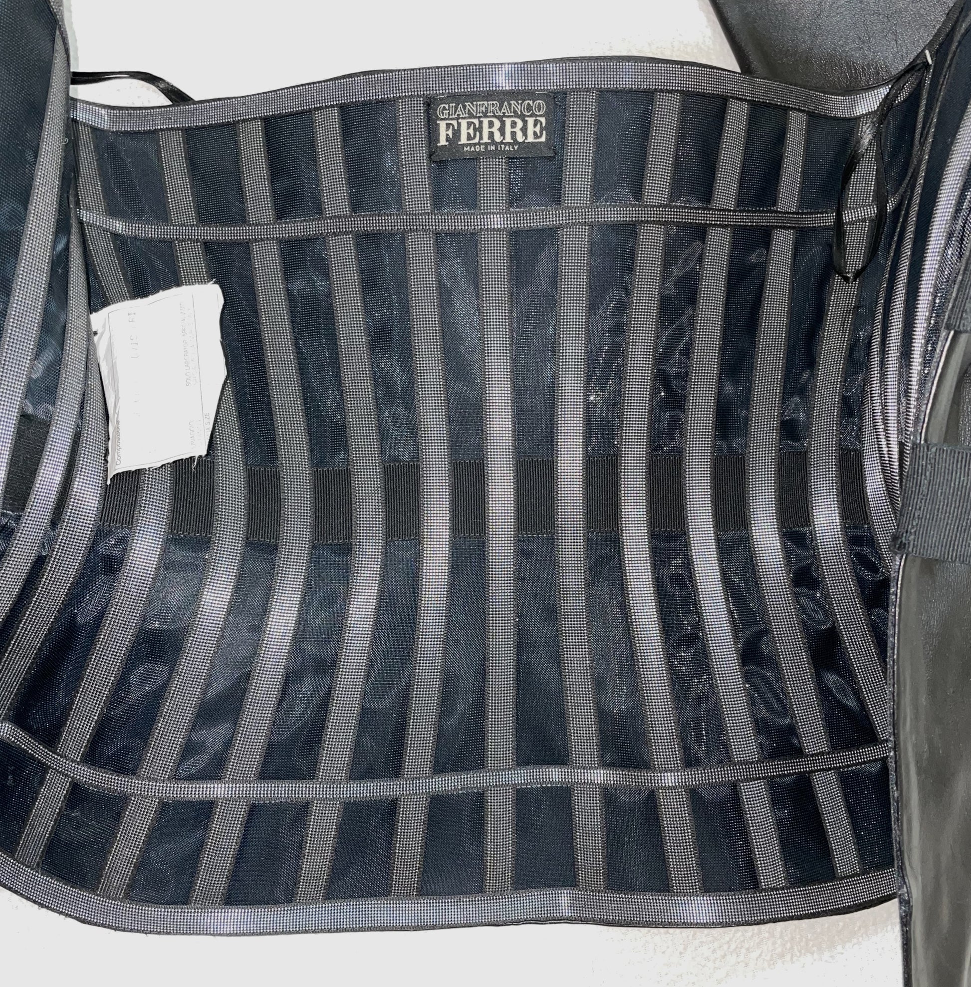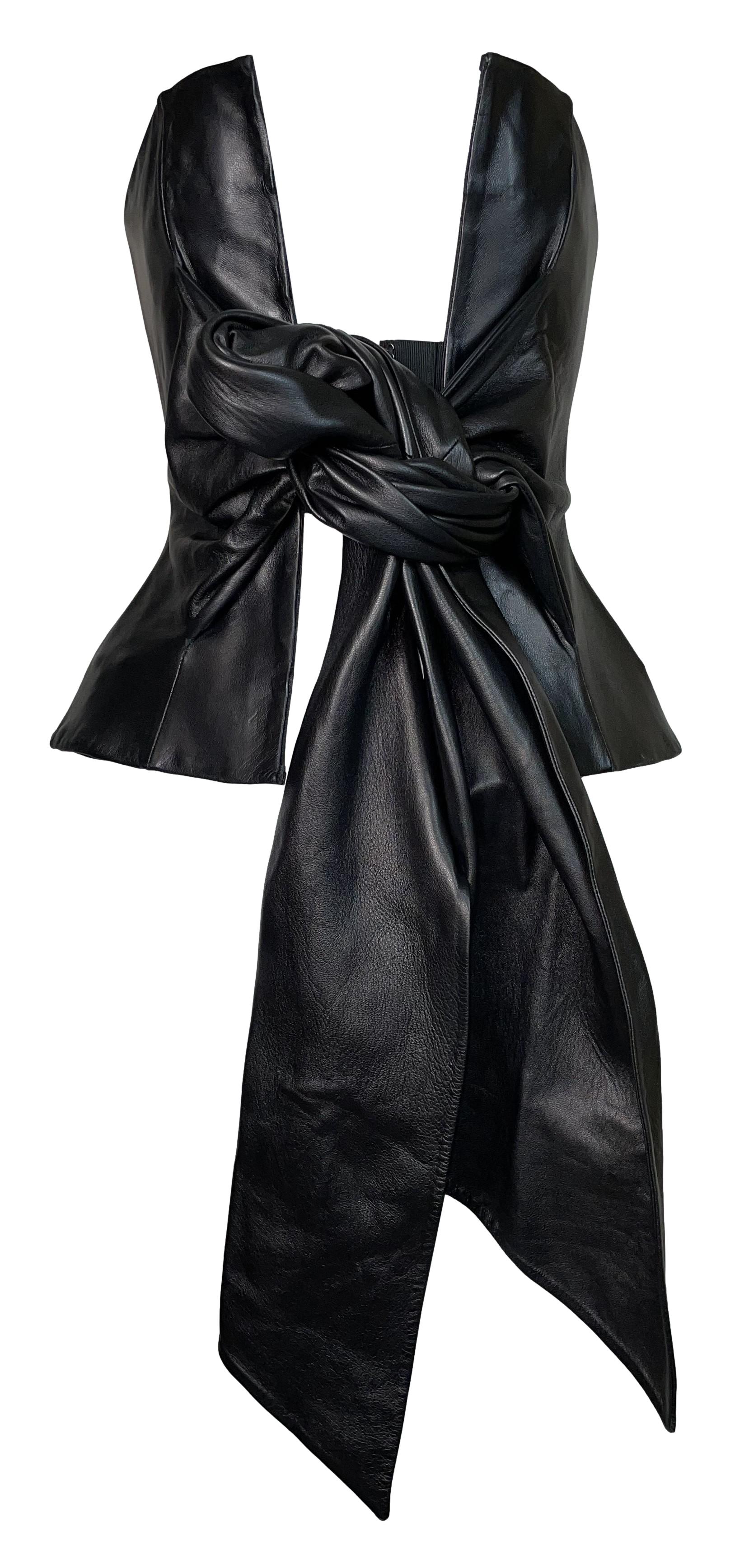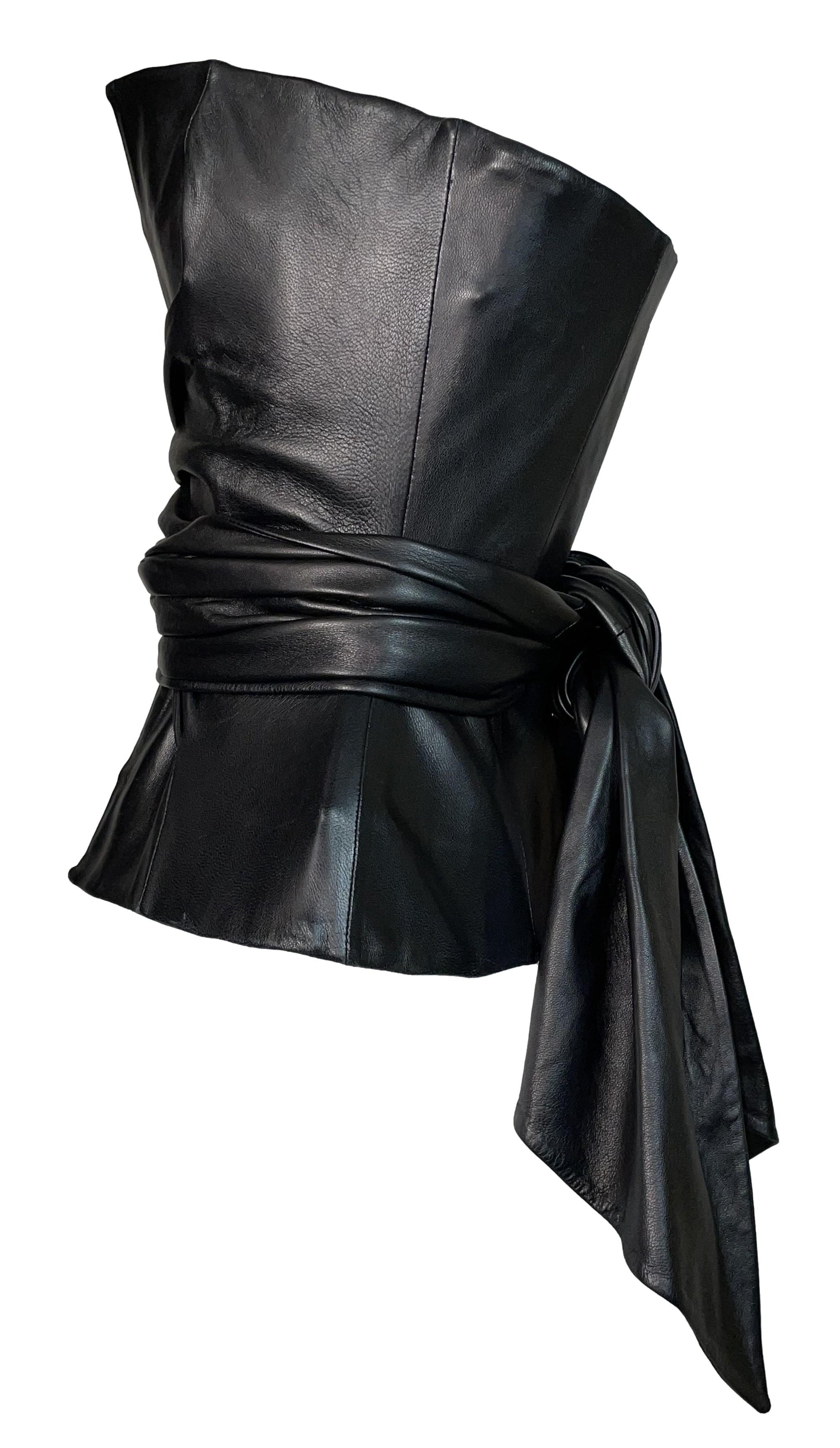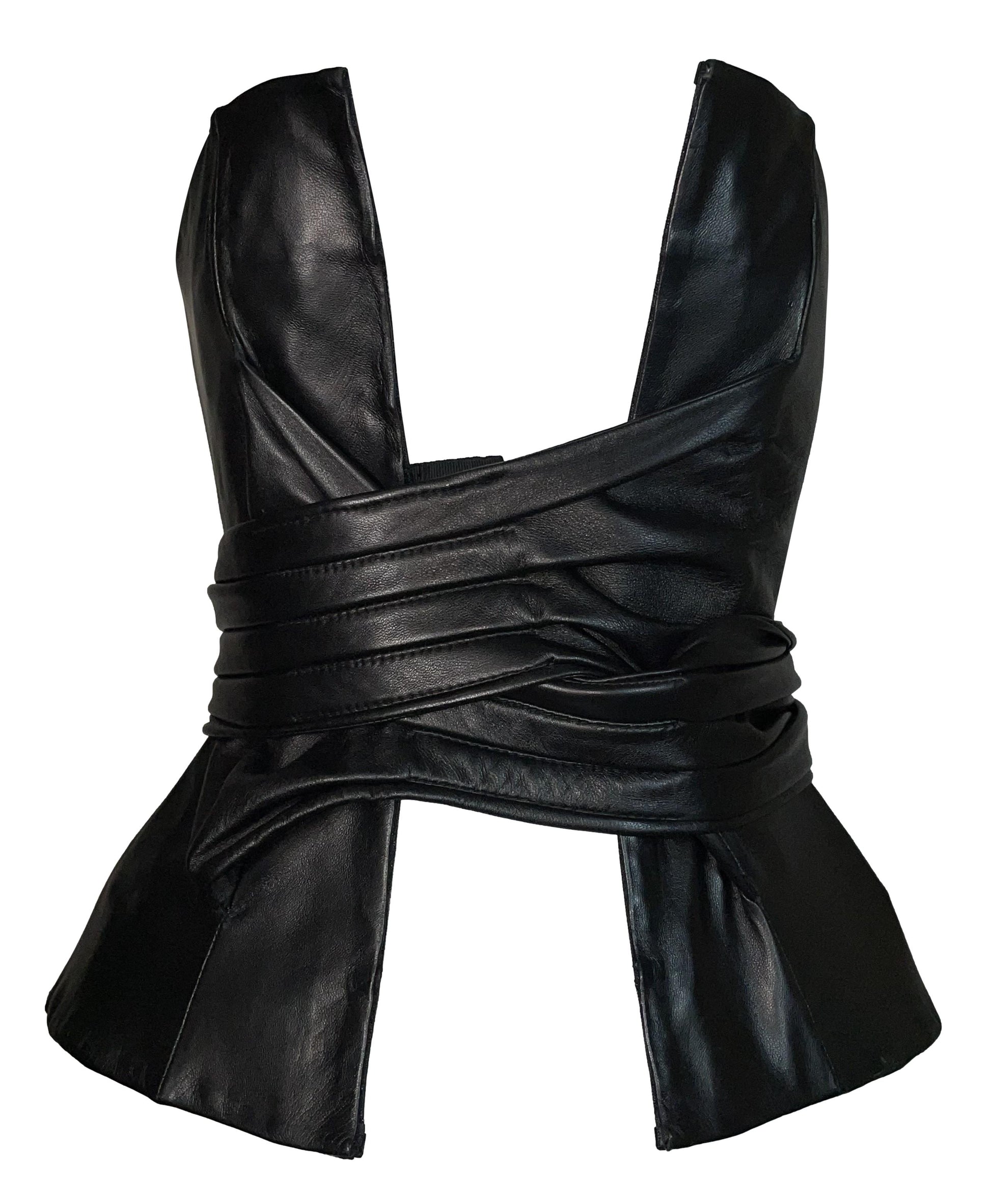 S/S 2002 Gianfranco Ferre Runway Plunging Open Chest Black Leather Bustier Top