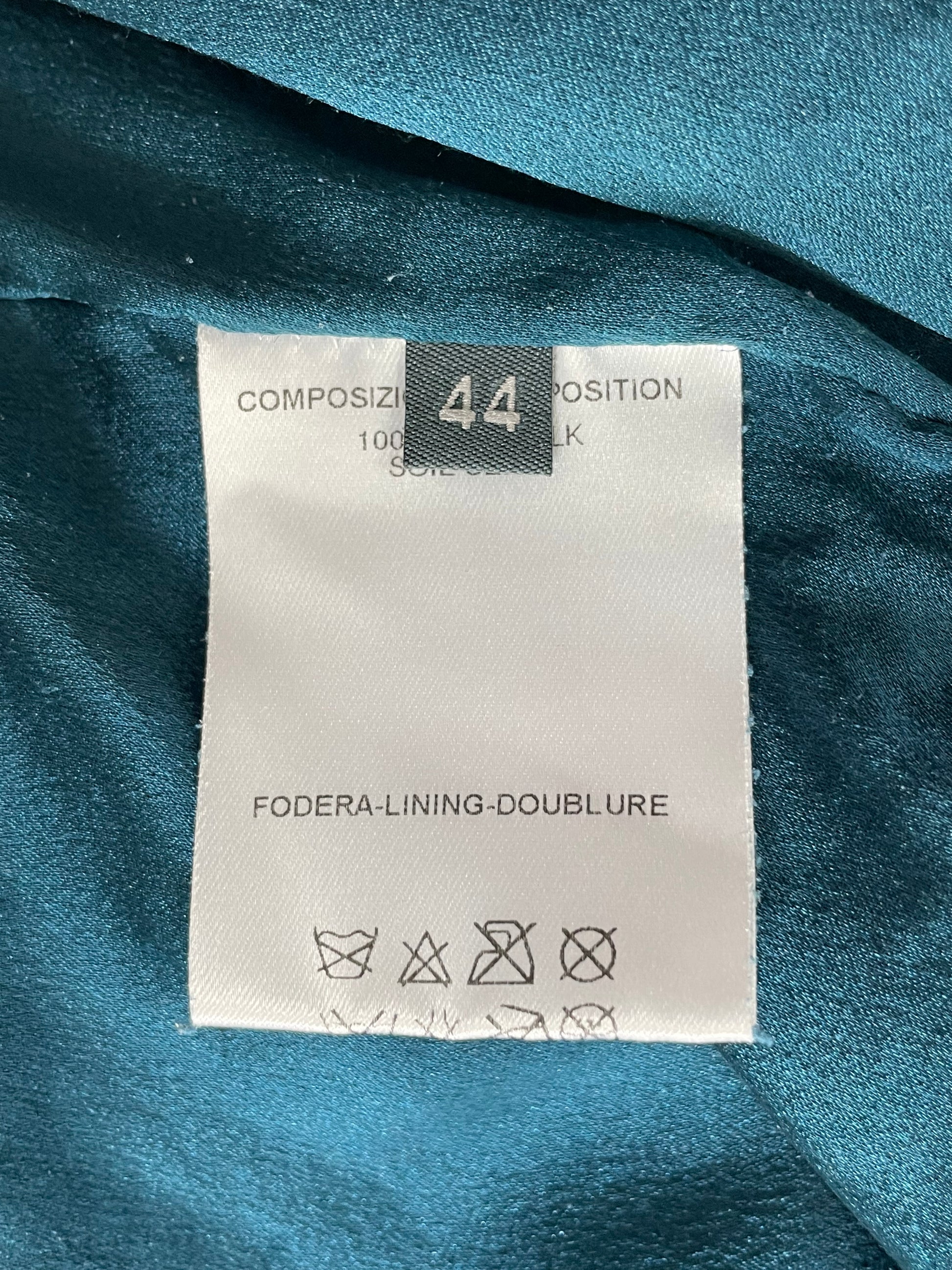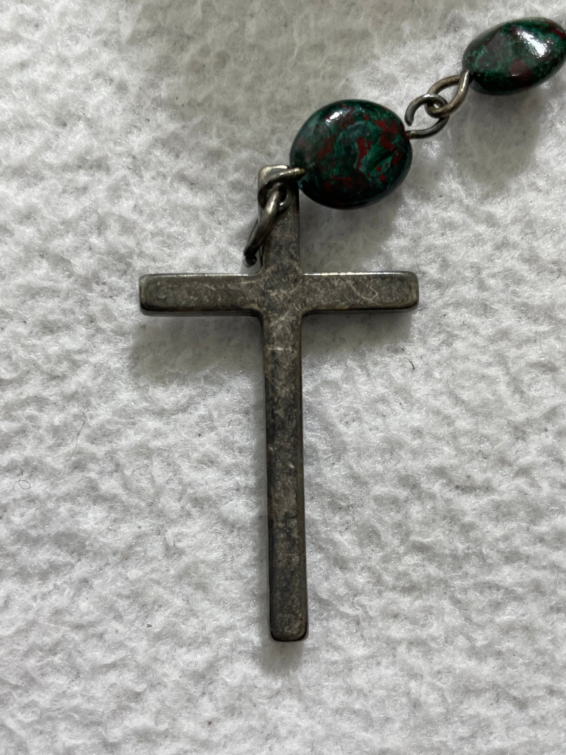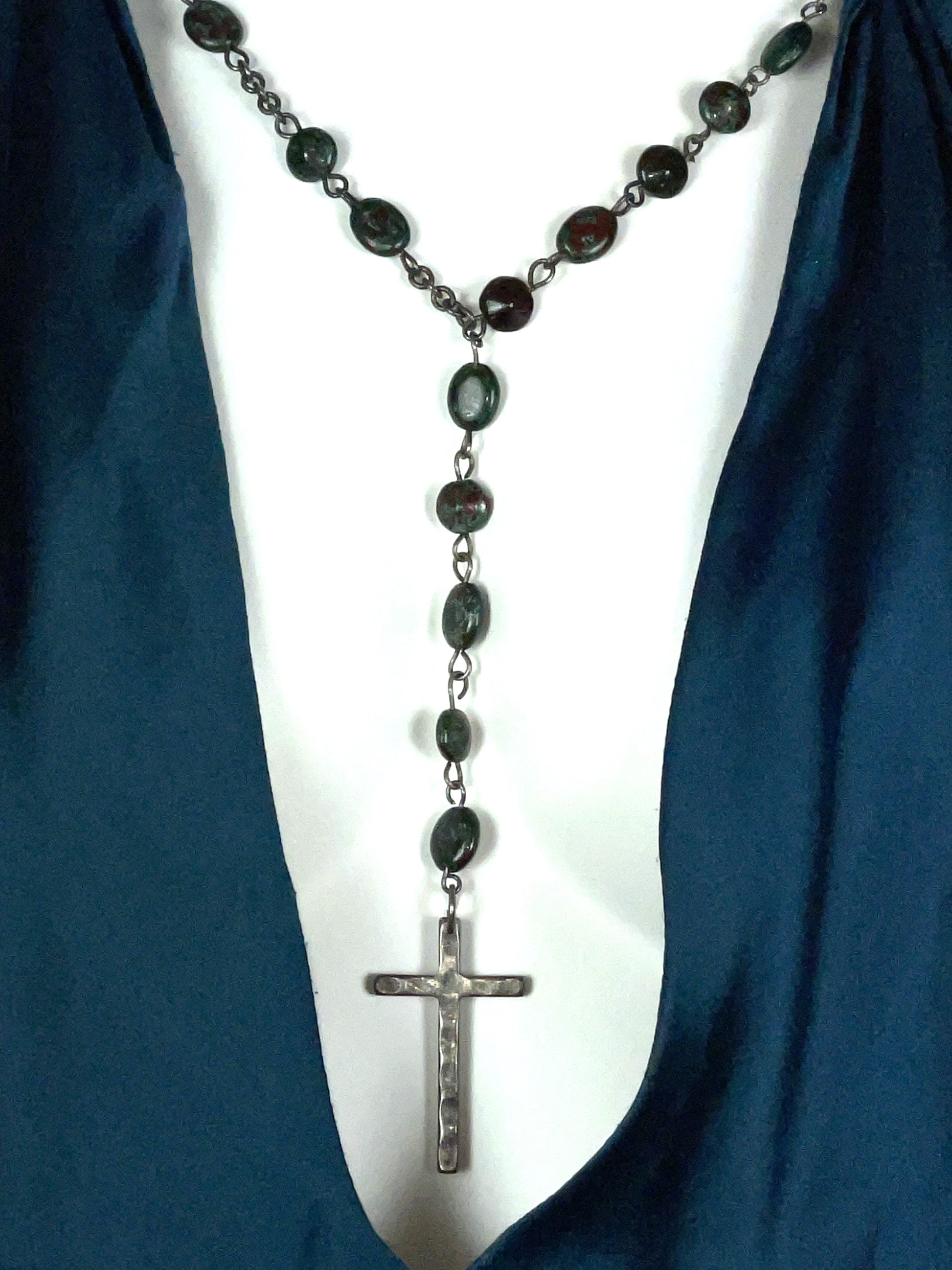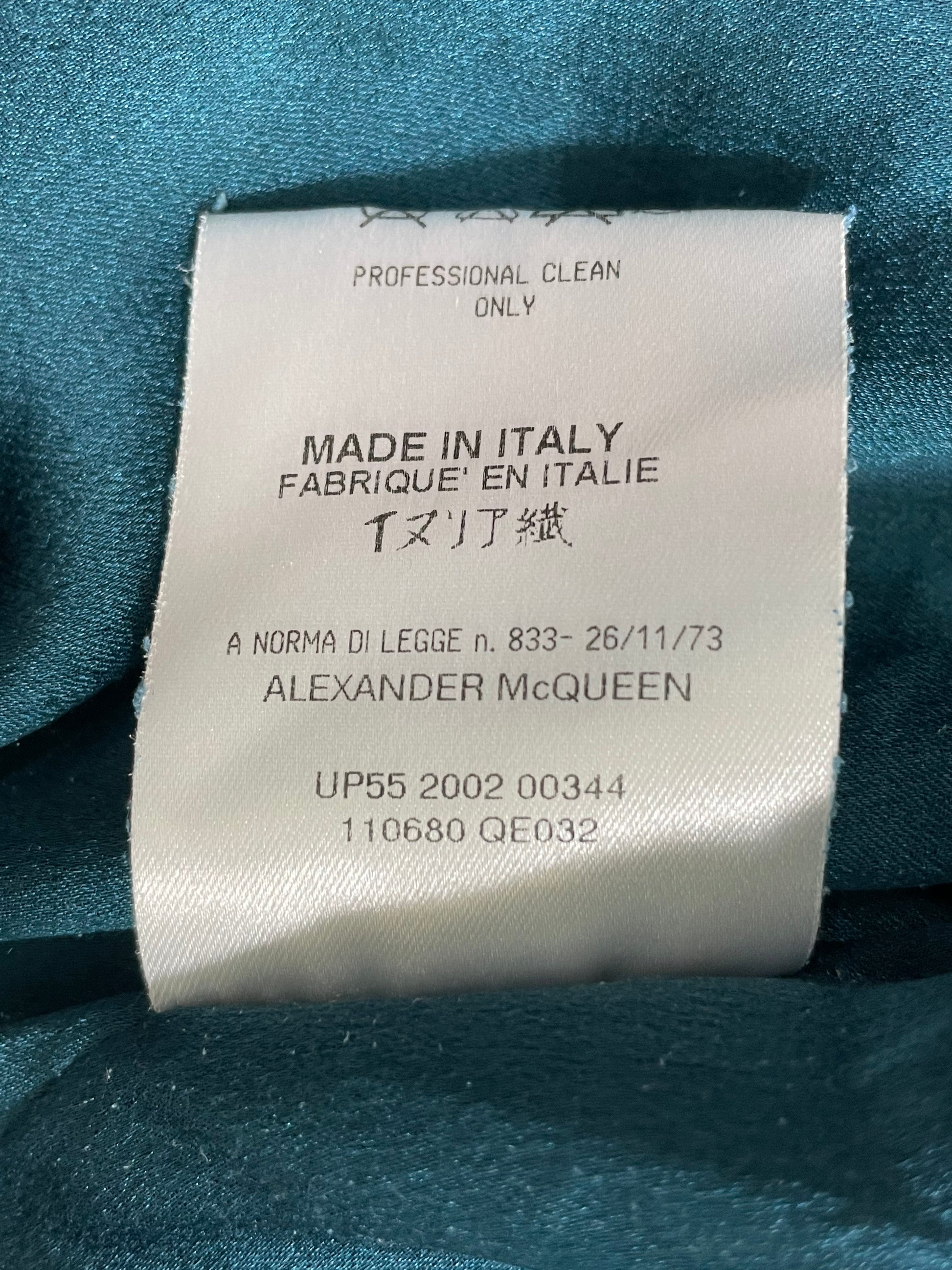 S/S 2003 Alexander McQueen Teal Silk Tattered Pirate Rosary Cross Necklace Plunging Top