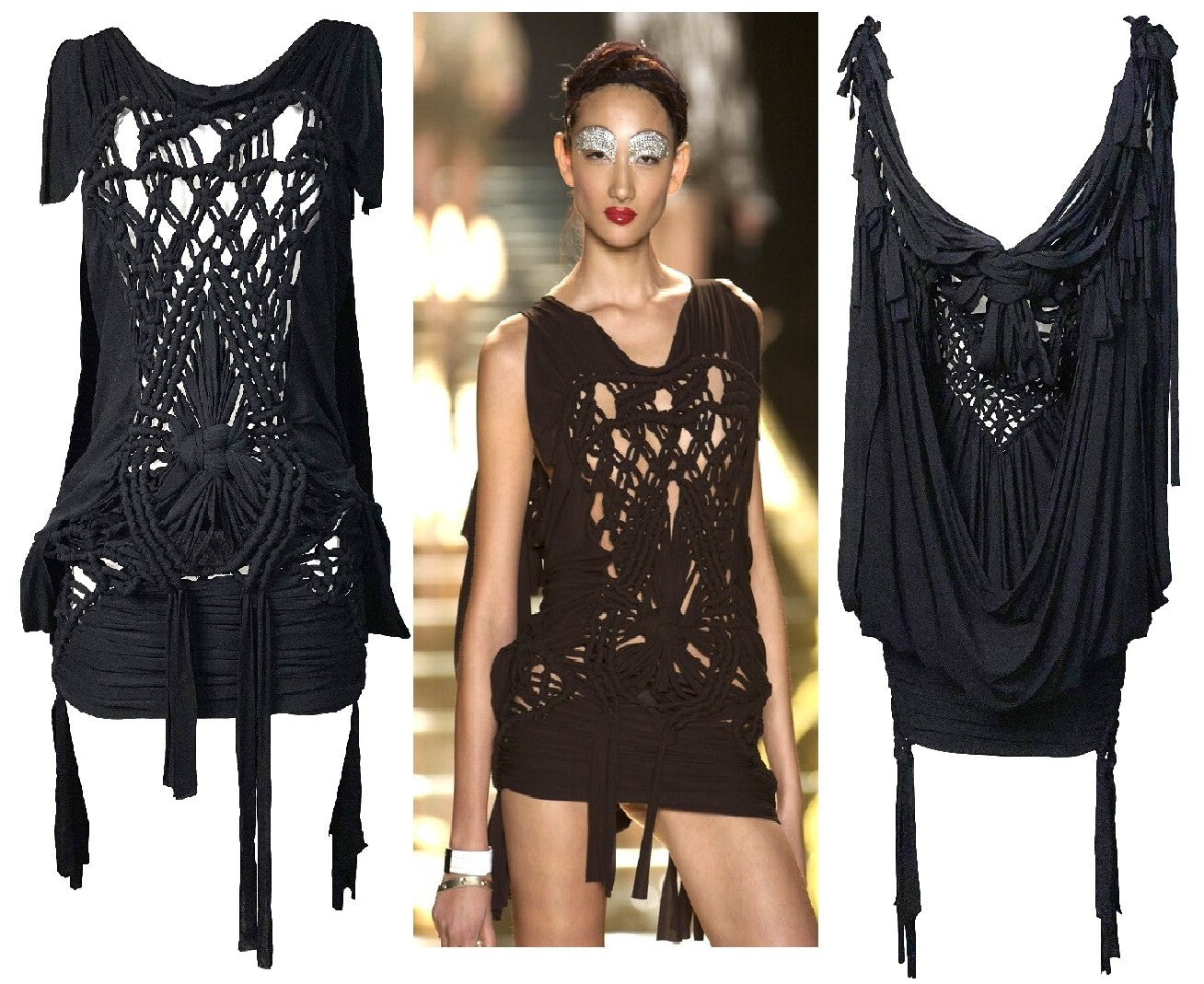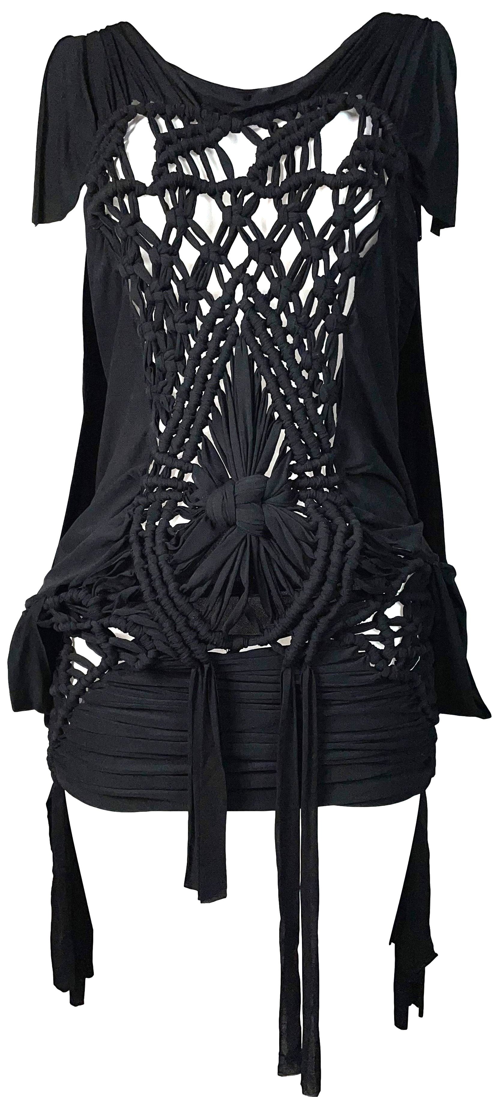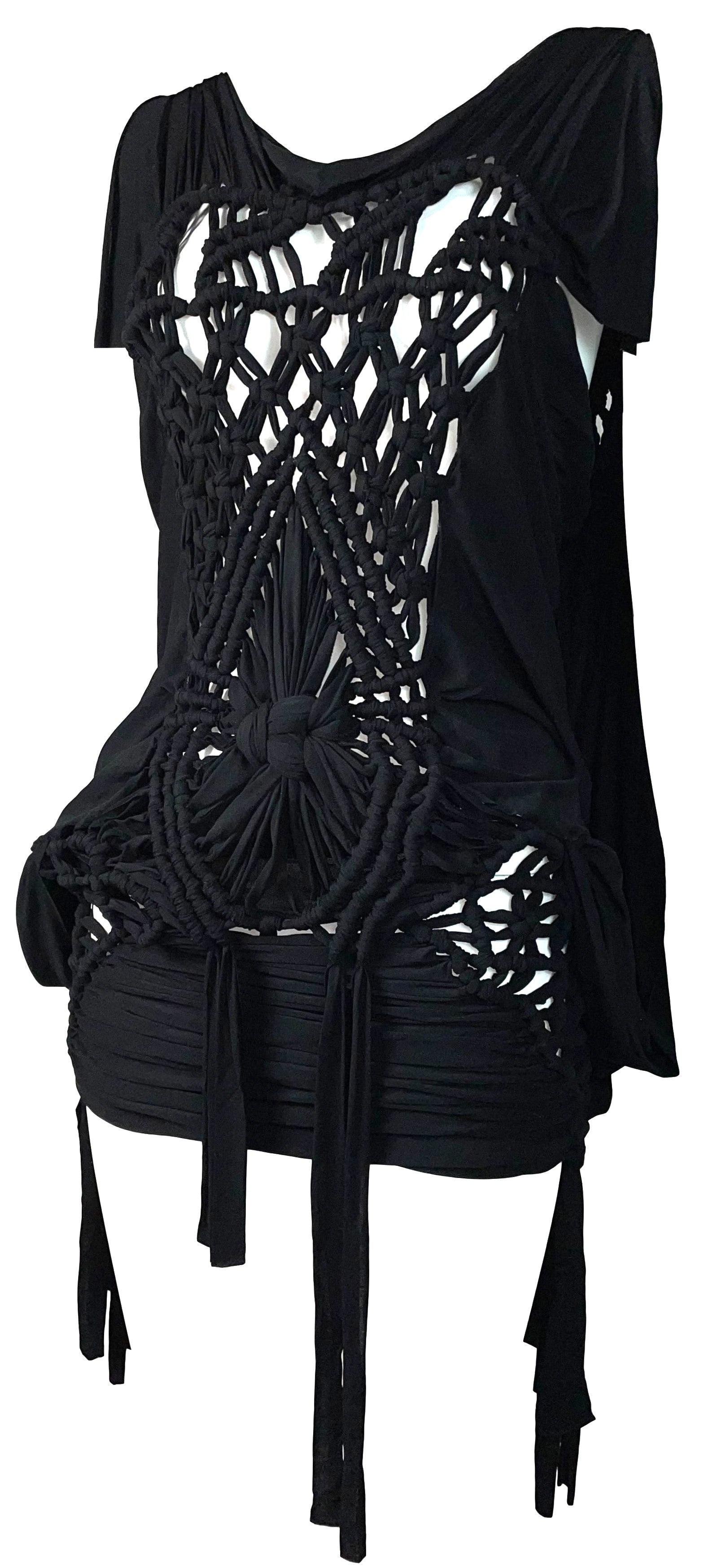S/S 2003 Christian Dior by John Galliano Runway Sheer Black Knotted Mini Dress