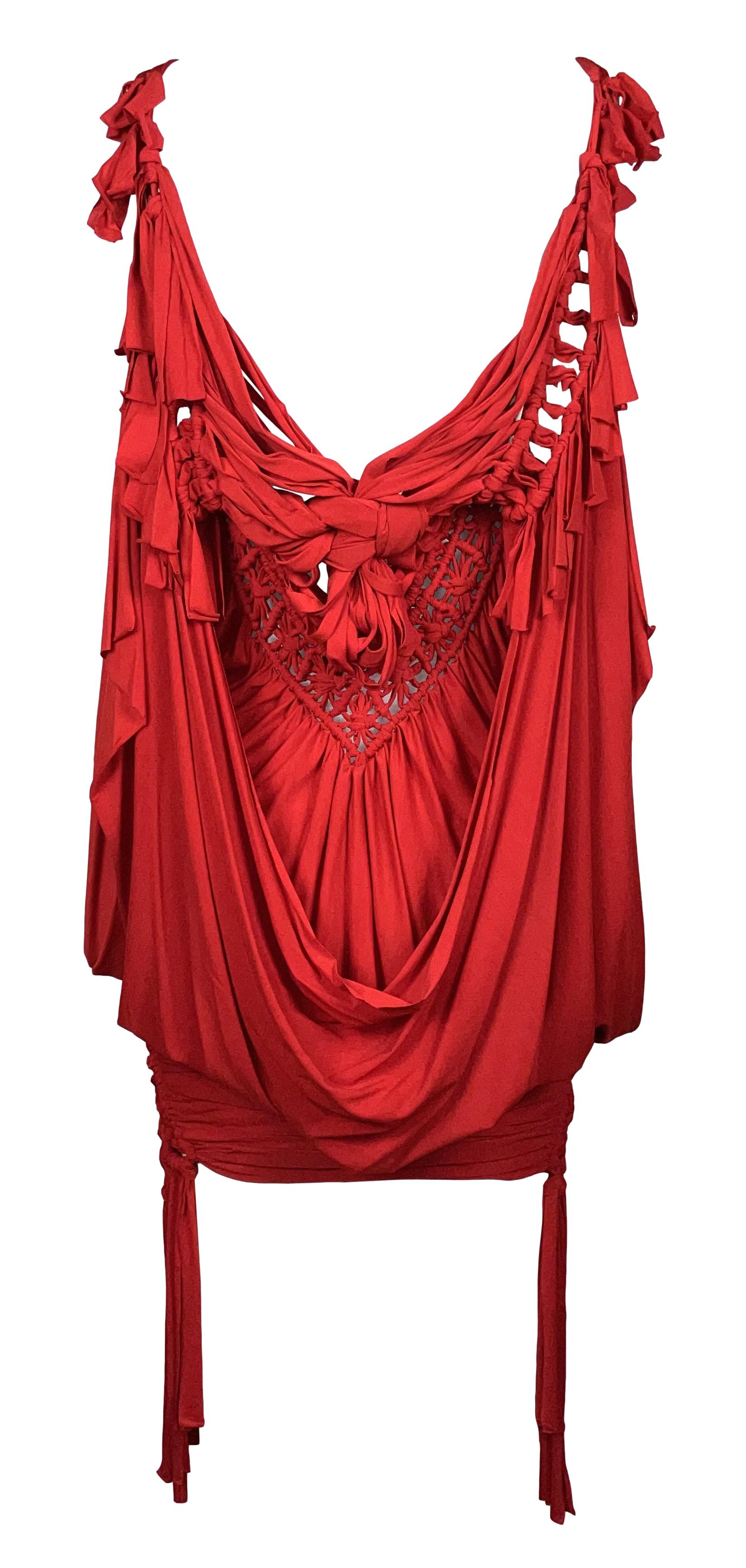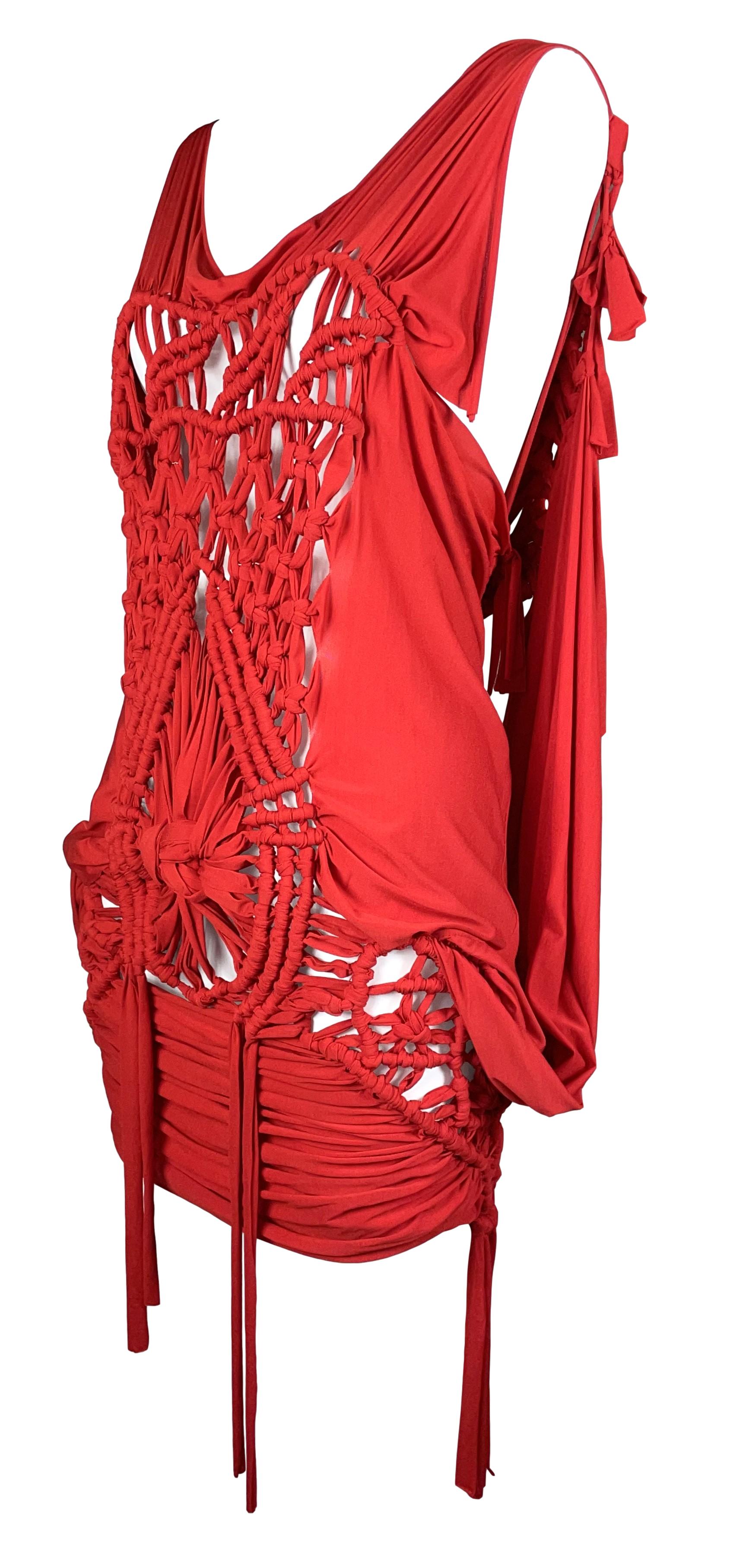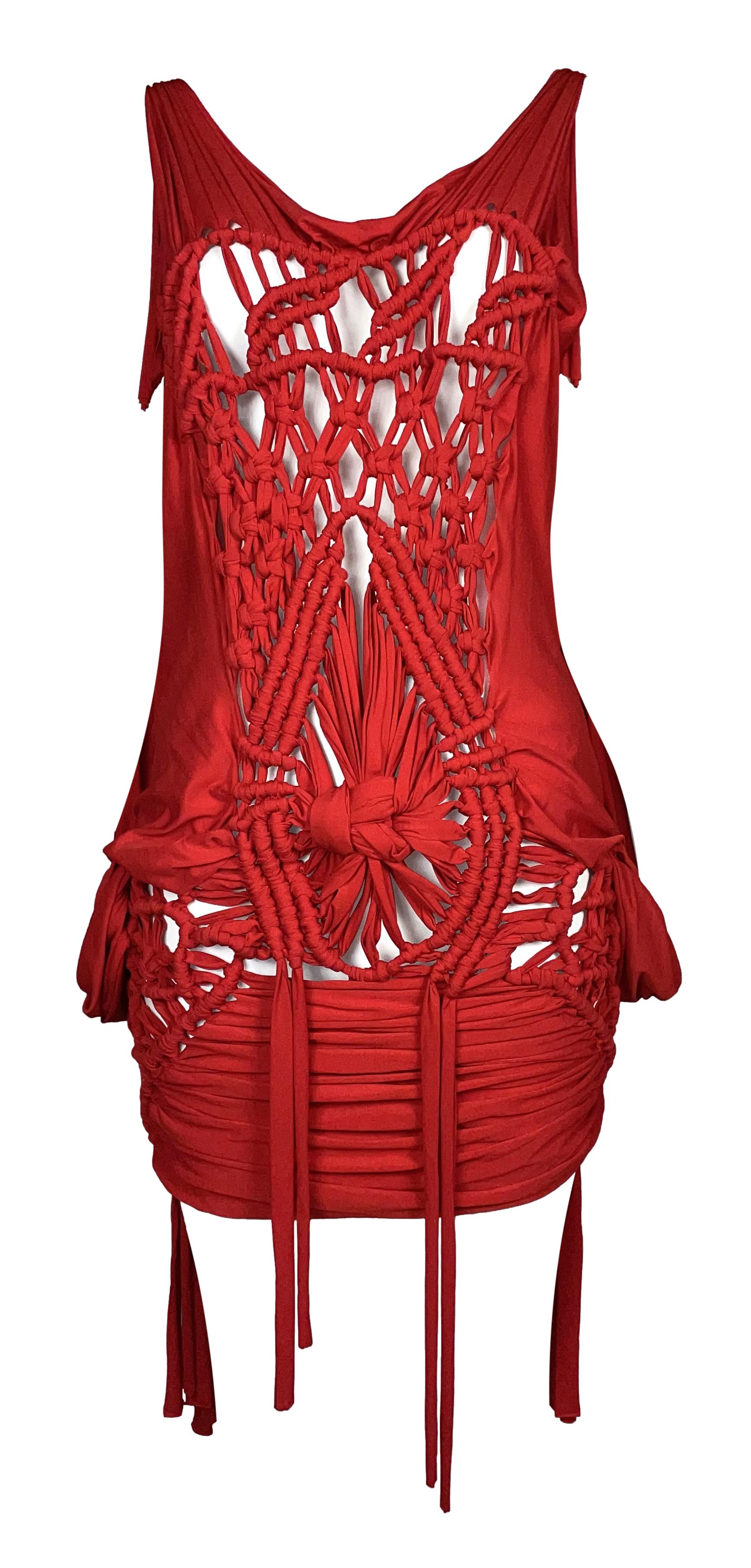 S/S 2003 Christian Dior by John Galliano Runway Sheer Red Knotted Mini Dress
