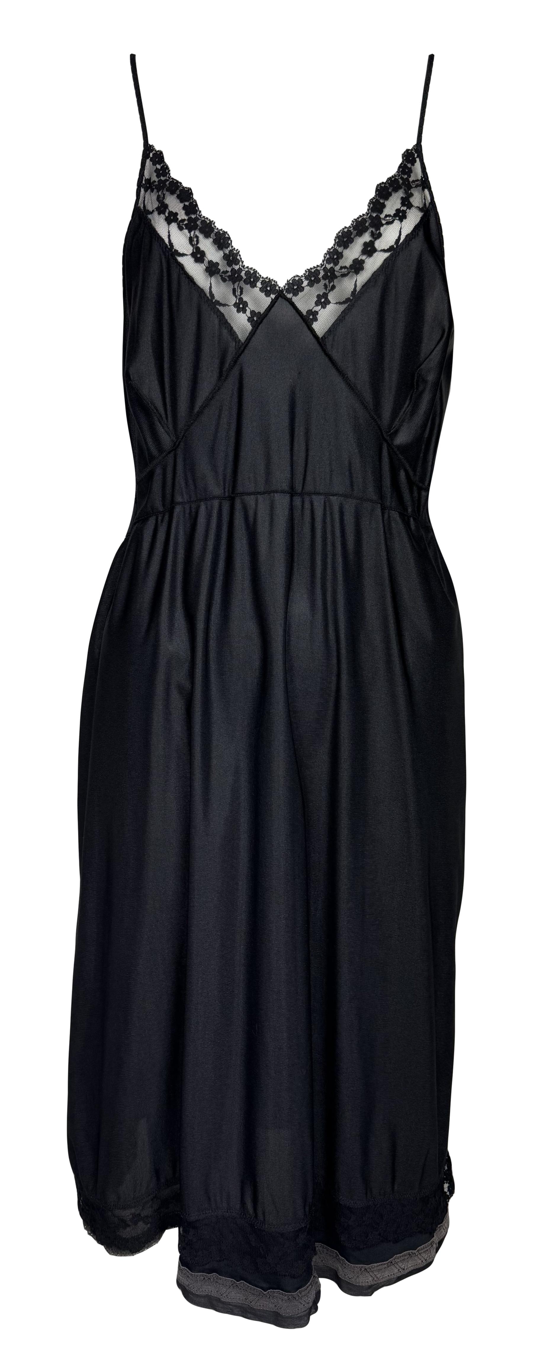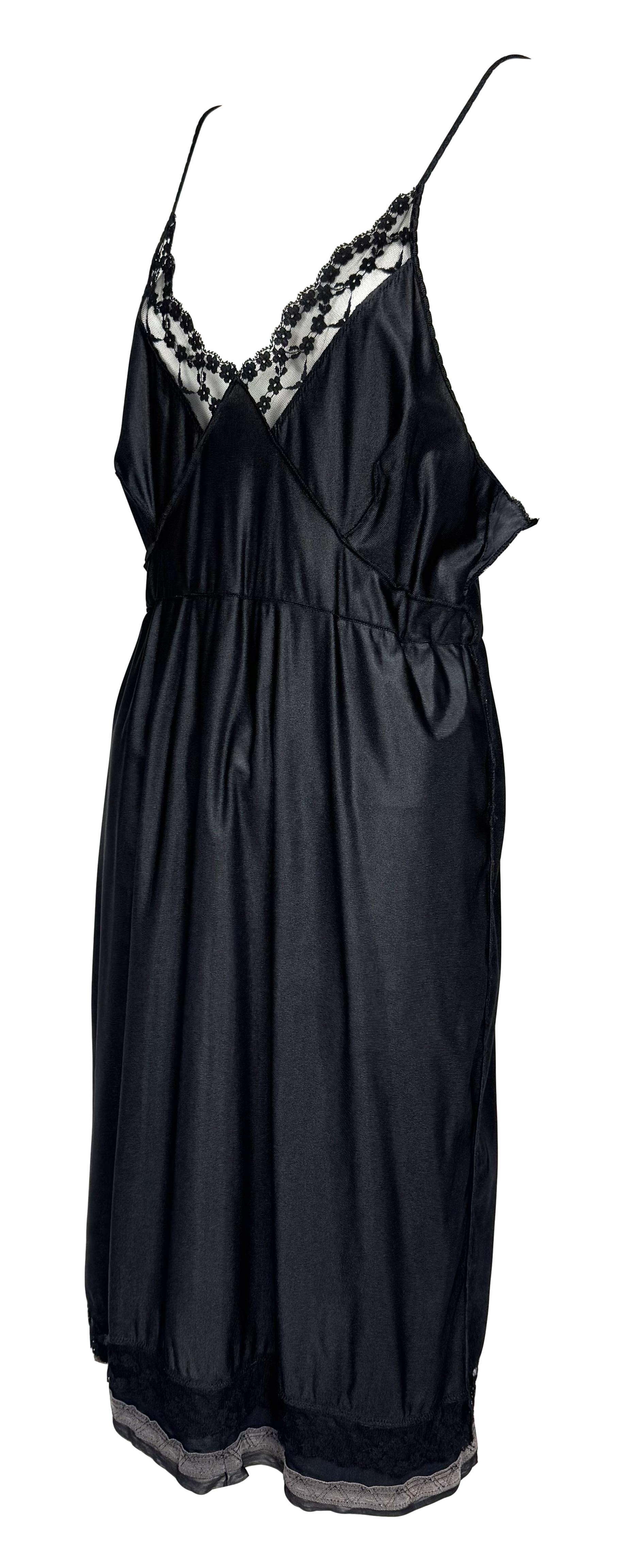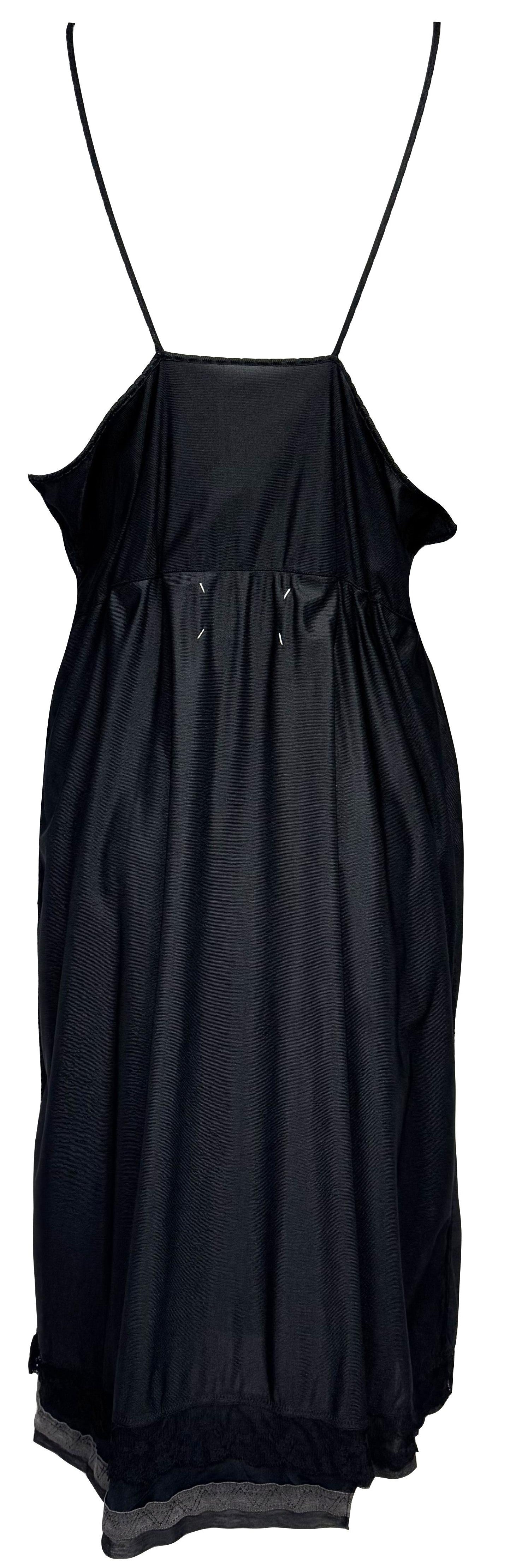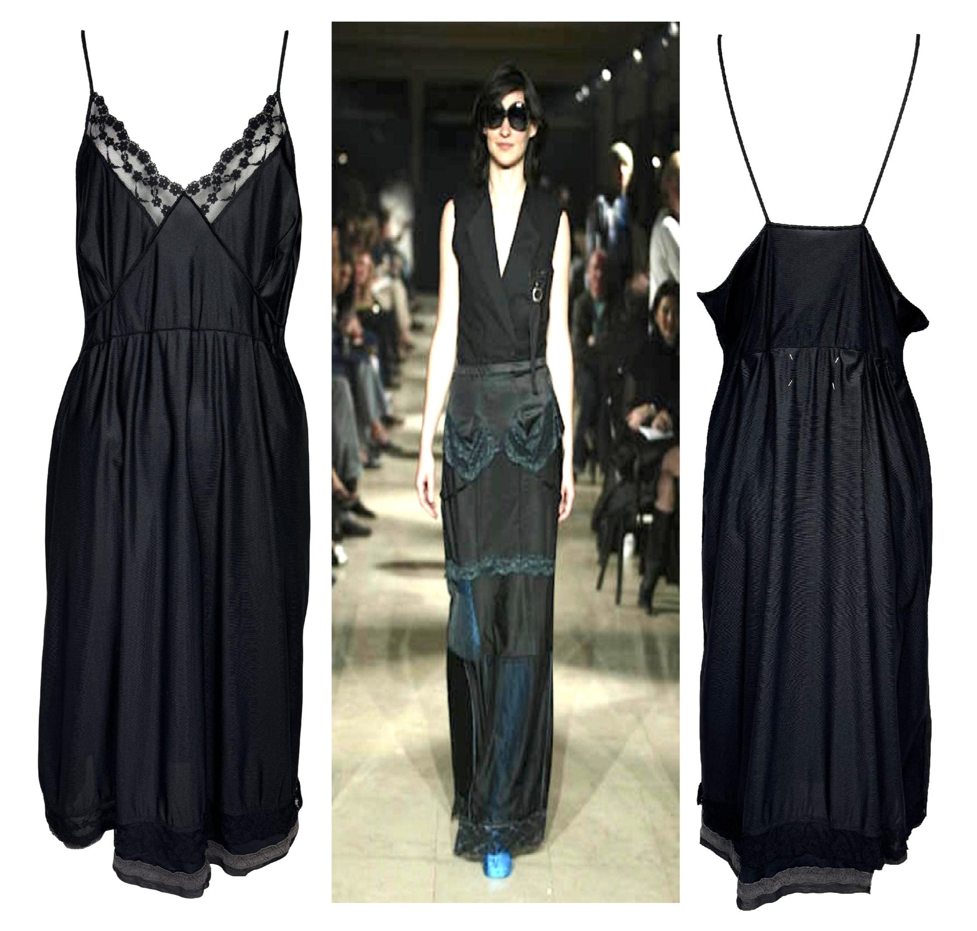 S/S 2003 Maison Martin Margiela Artisanal Runway Plunging Black Lace Trim Slip Dress