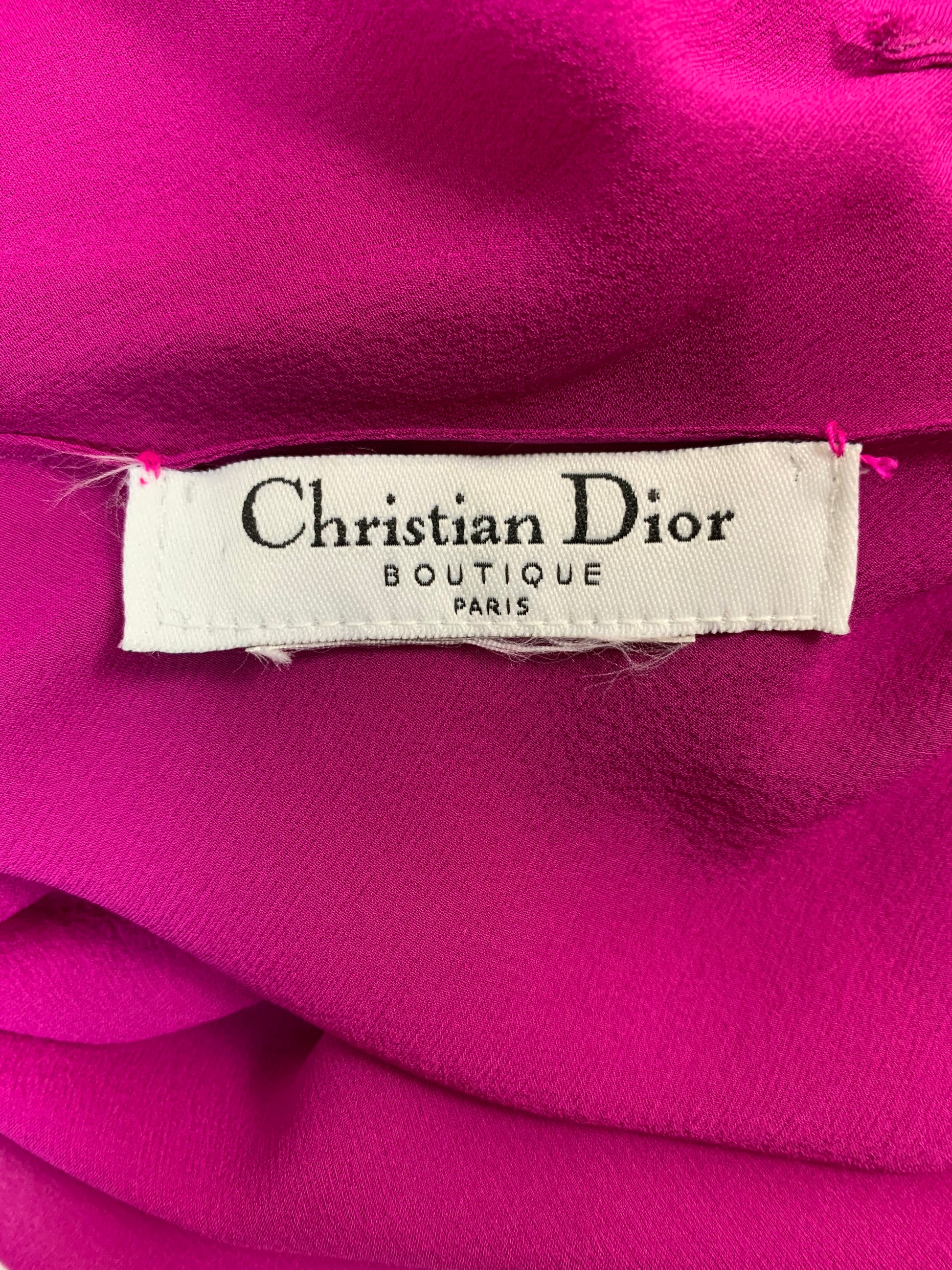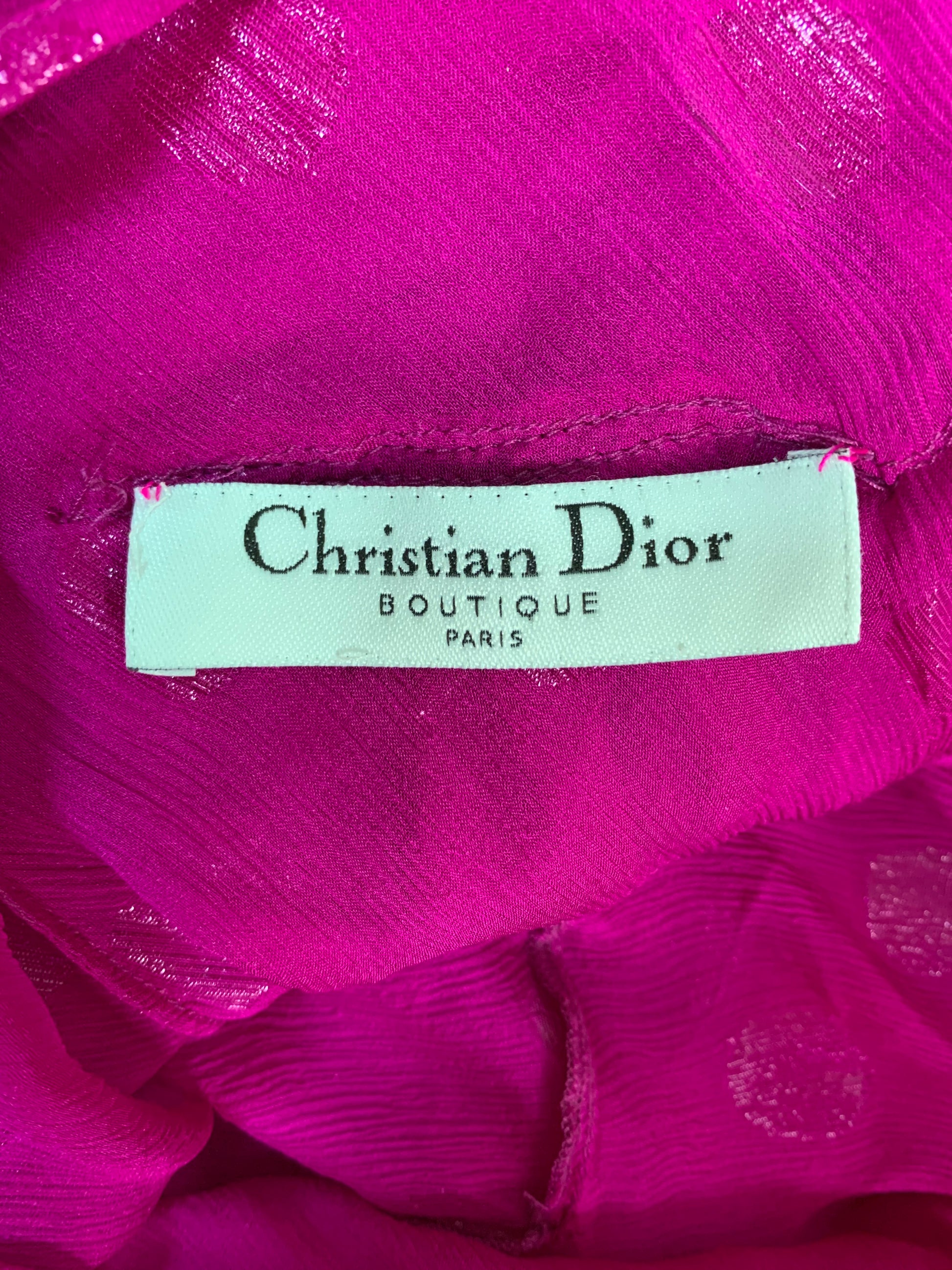 S/S 2004 Christian Dior by John Galliano Runway Sheer Hot Pink Polka Dot Plunging Dress w Train