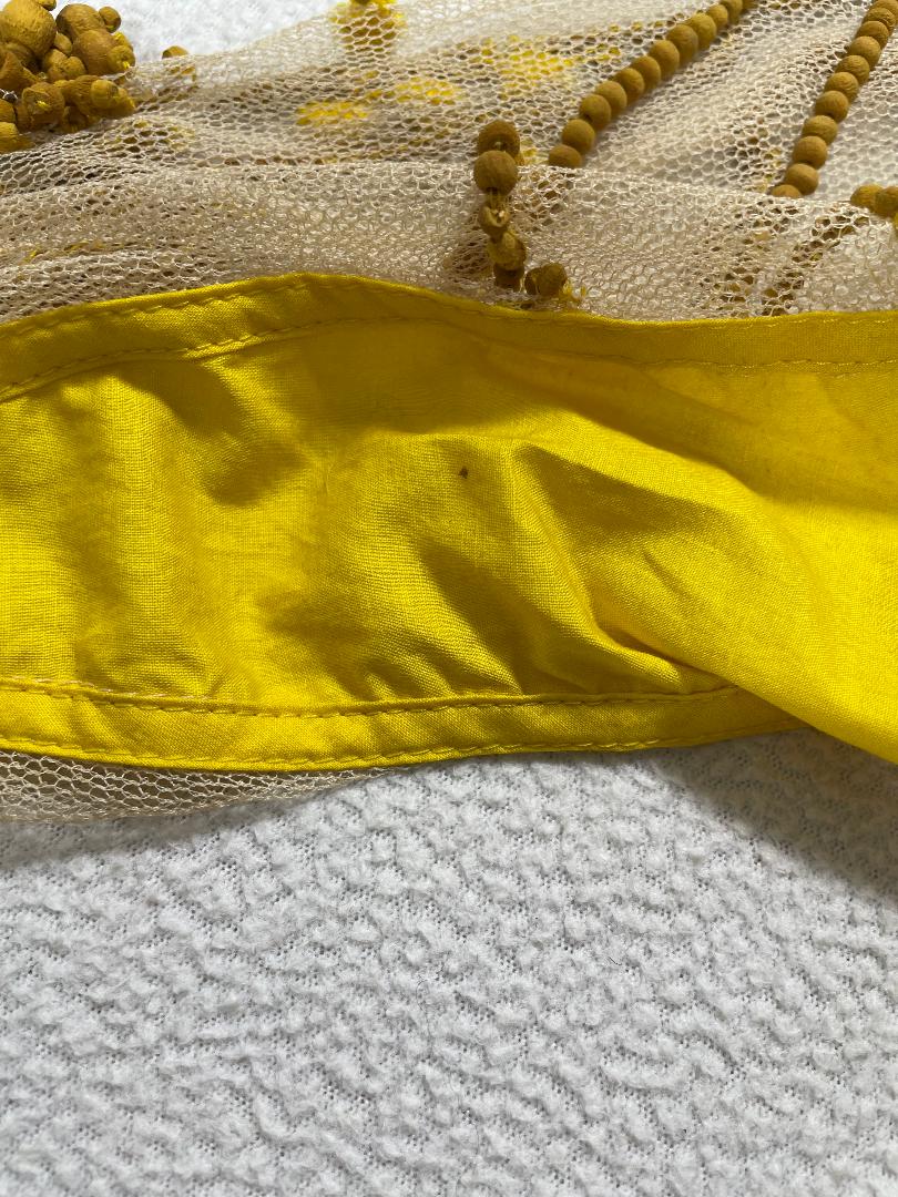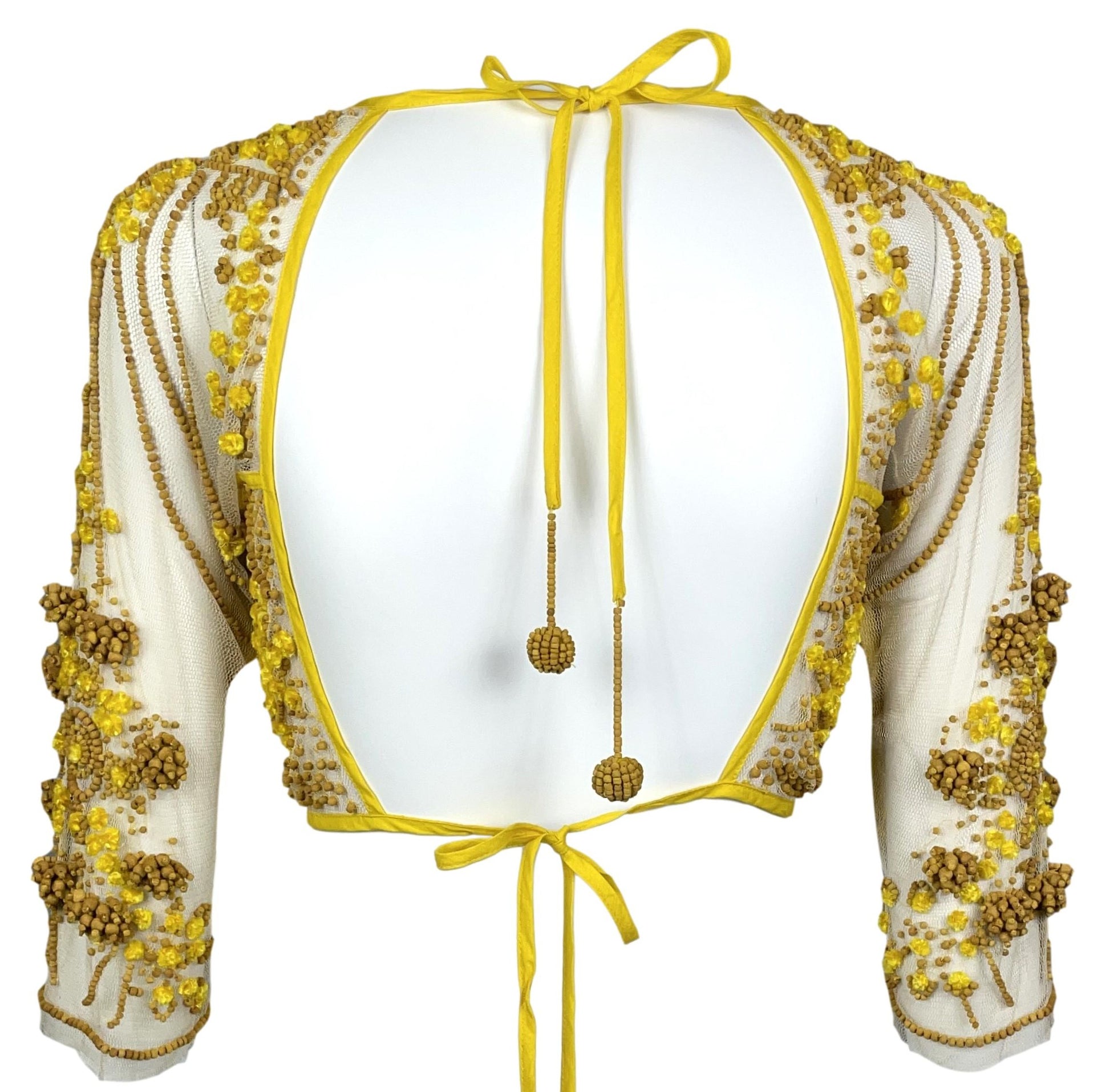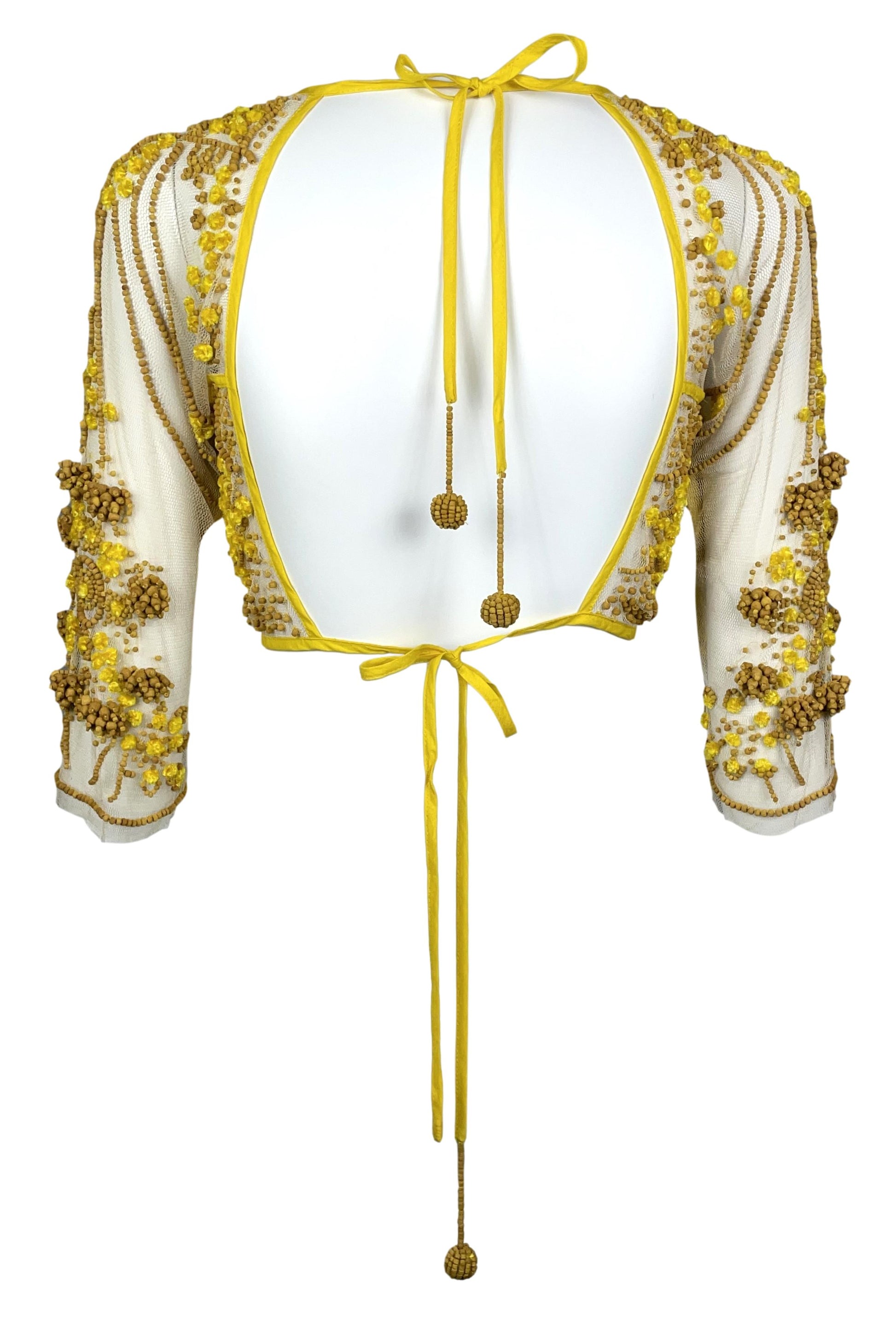 S/S 2004 Jean Paul Gaultier Runway Cone Bra Sheer Nude Mesh & Yellow Beaded Crop Top