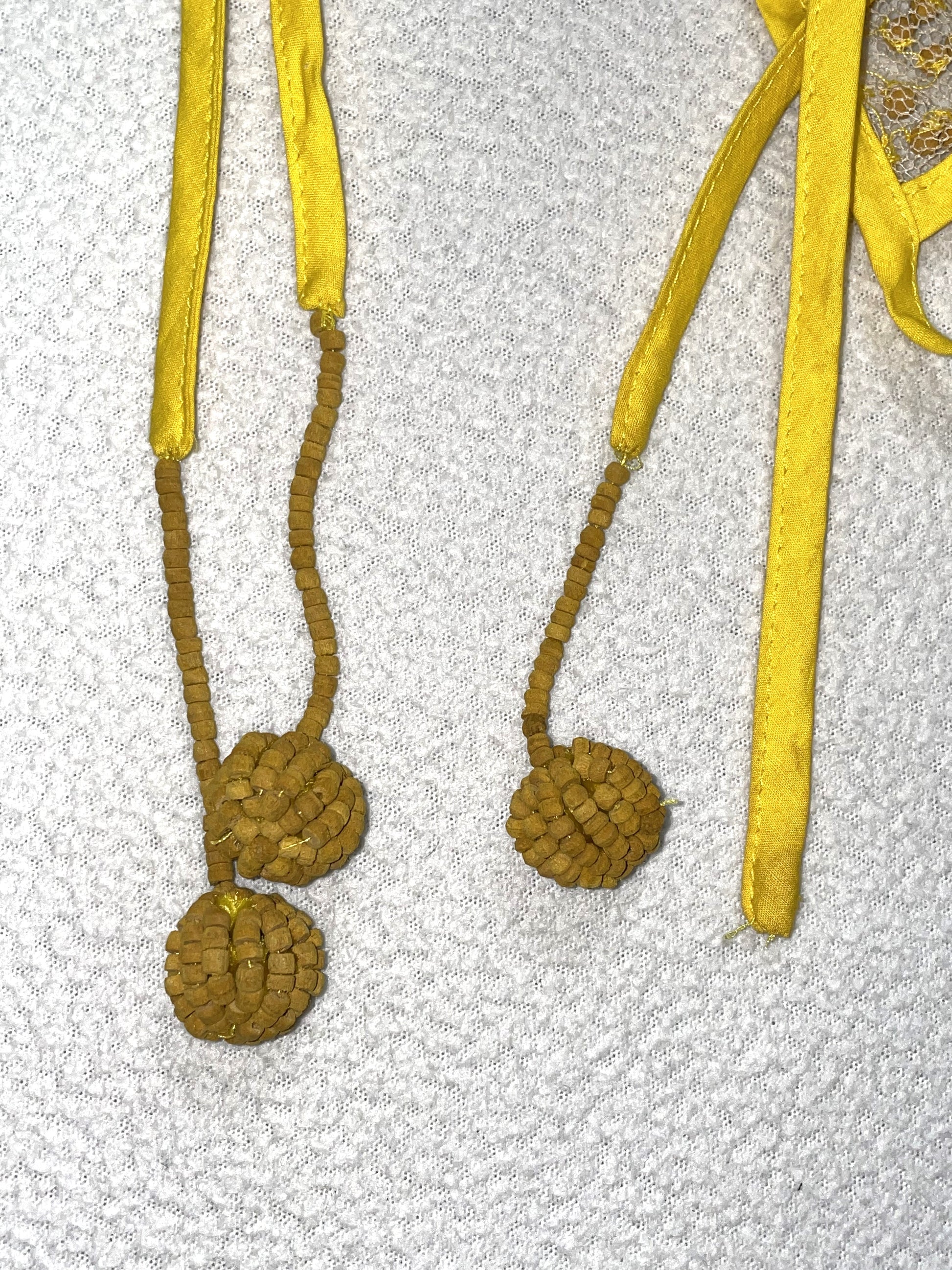 CONDITION: Good- minor marks on yellow fabric under arms, missing one ball at the end of ties, these are not things others will notice and are very minor