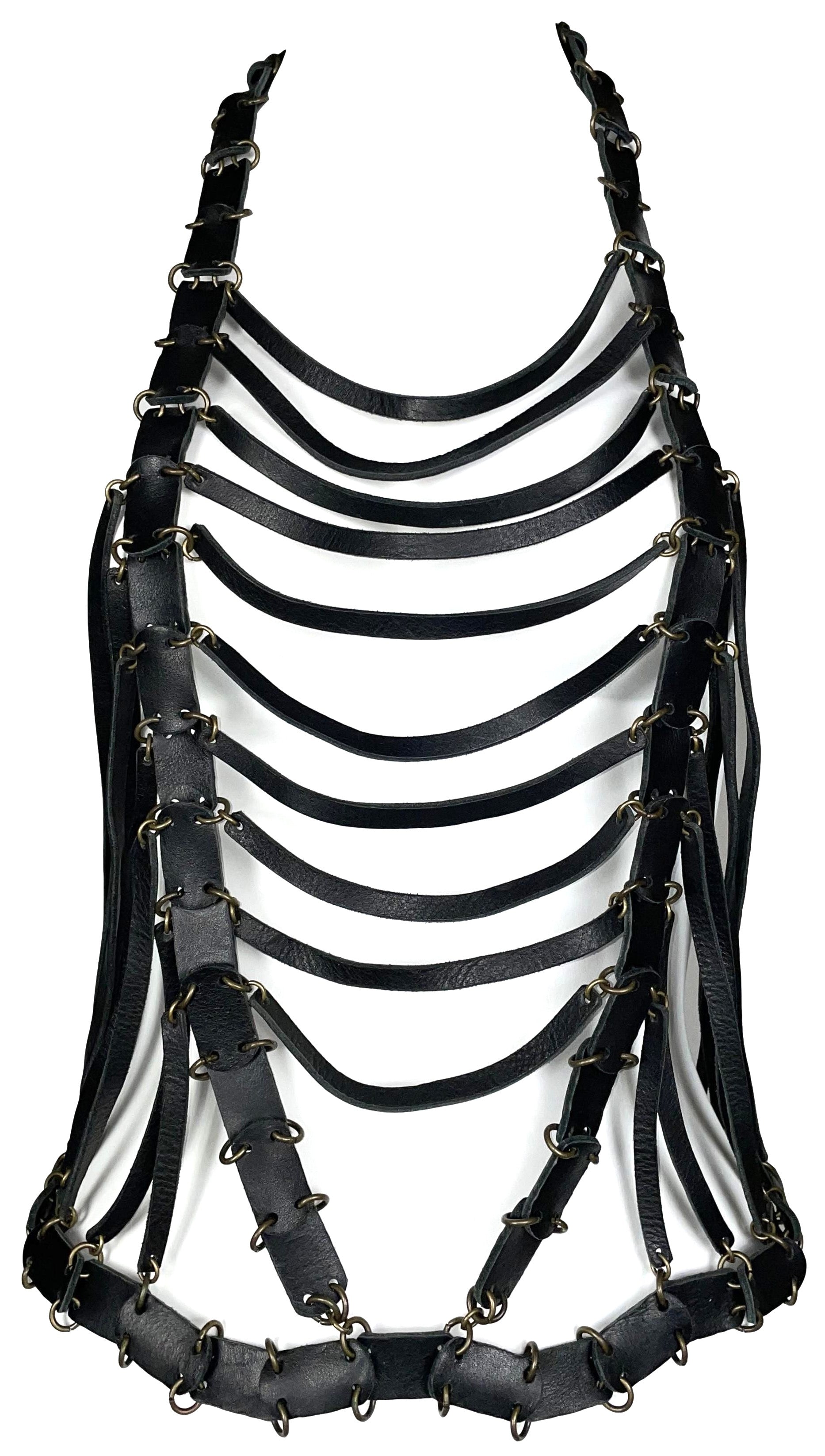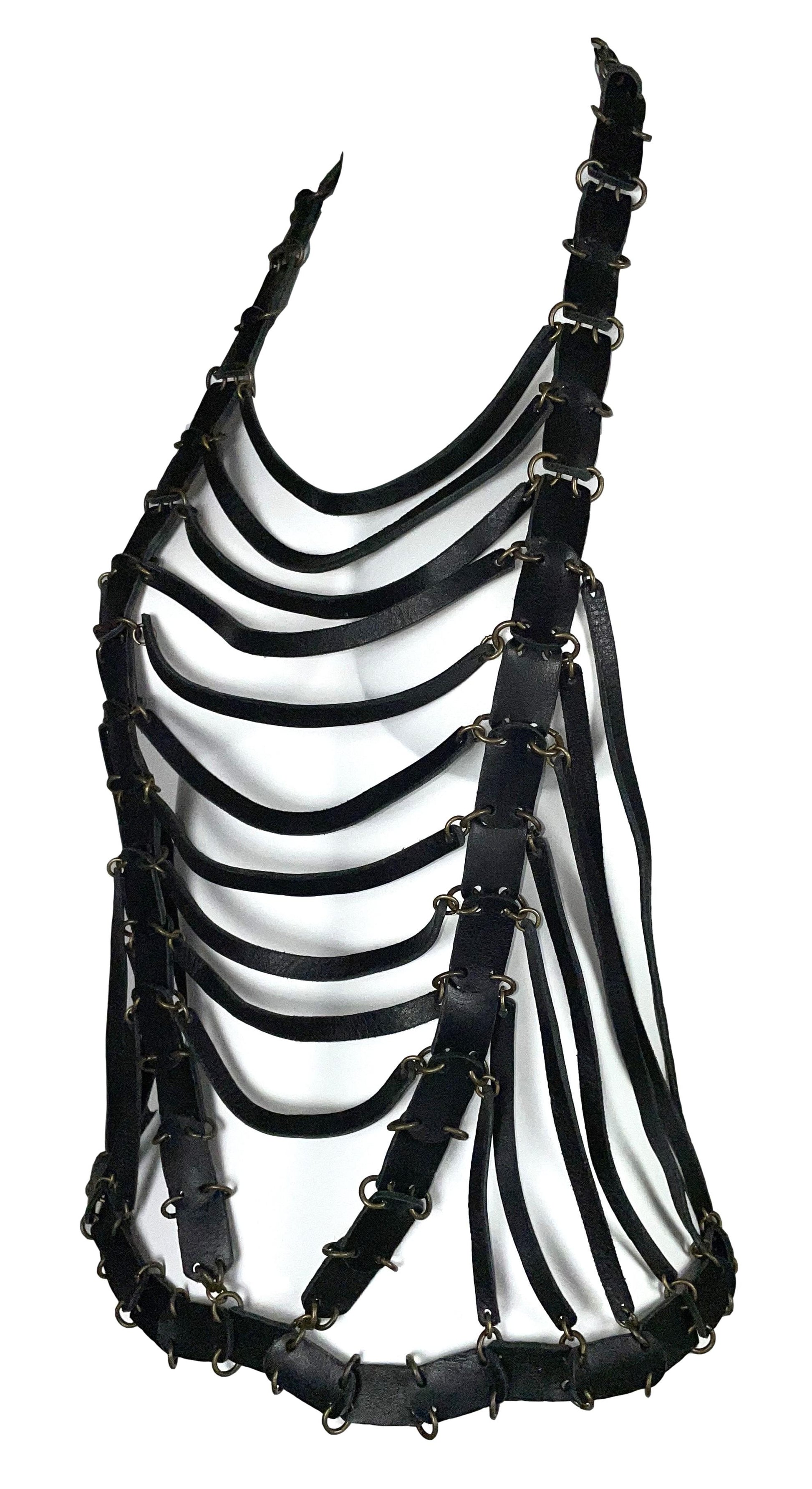 S/S 2004 Roberto Cavalli Black Leather Bondage Hardcore Harness Top Vest