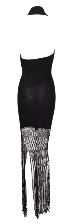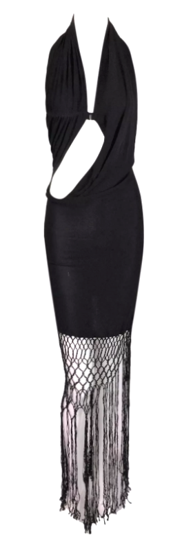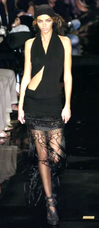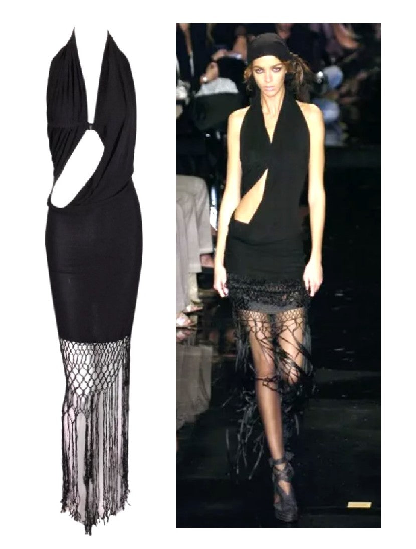 S/S 2005 Look 44 Jean Paul Gaultier Runway Black Cut-out Draped Fringe Dress