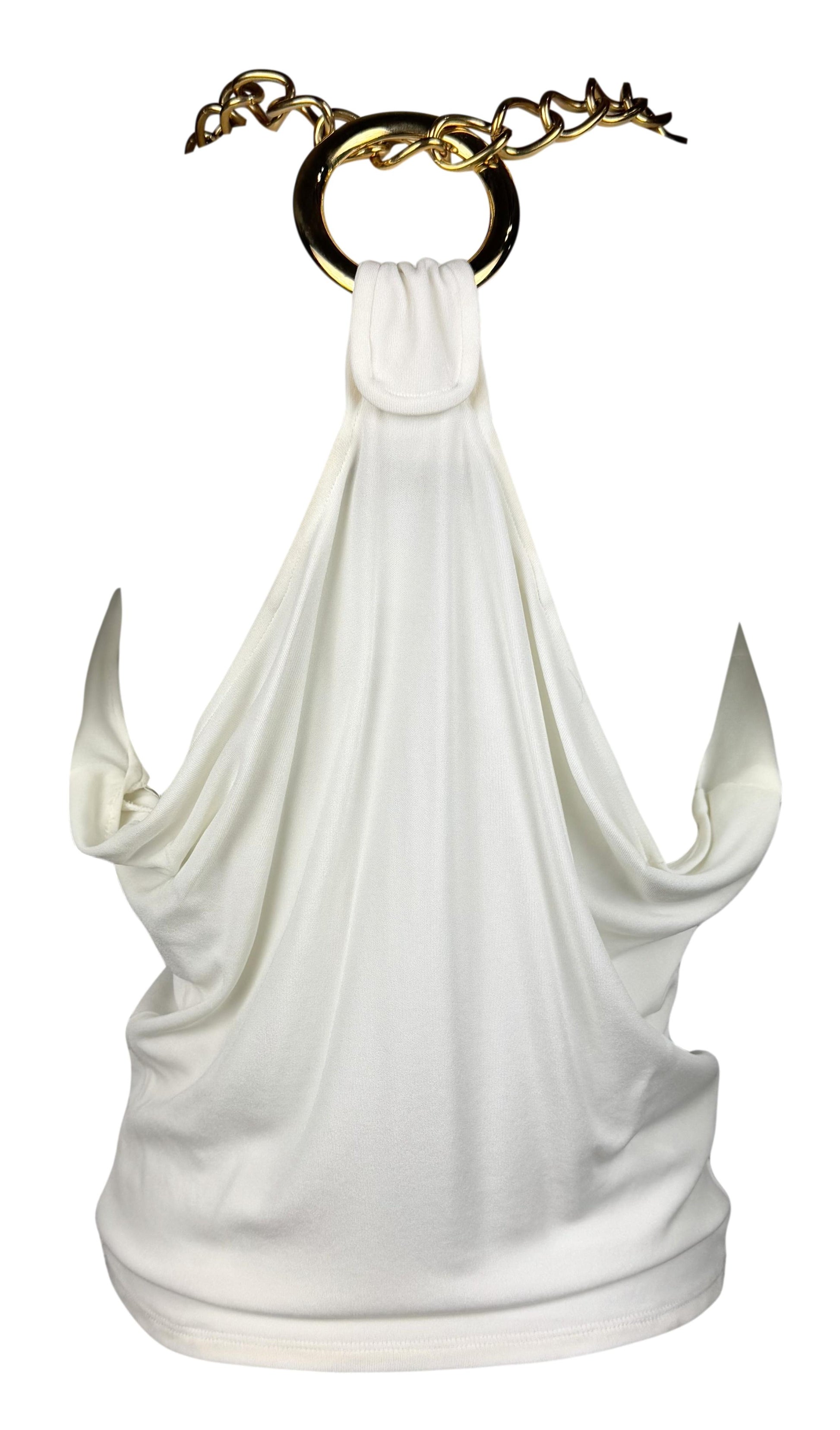 S/S 2005 Roberto Cavalli Plunging White Tank Top w Large Gold Chain Straps