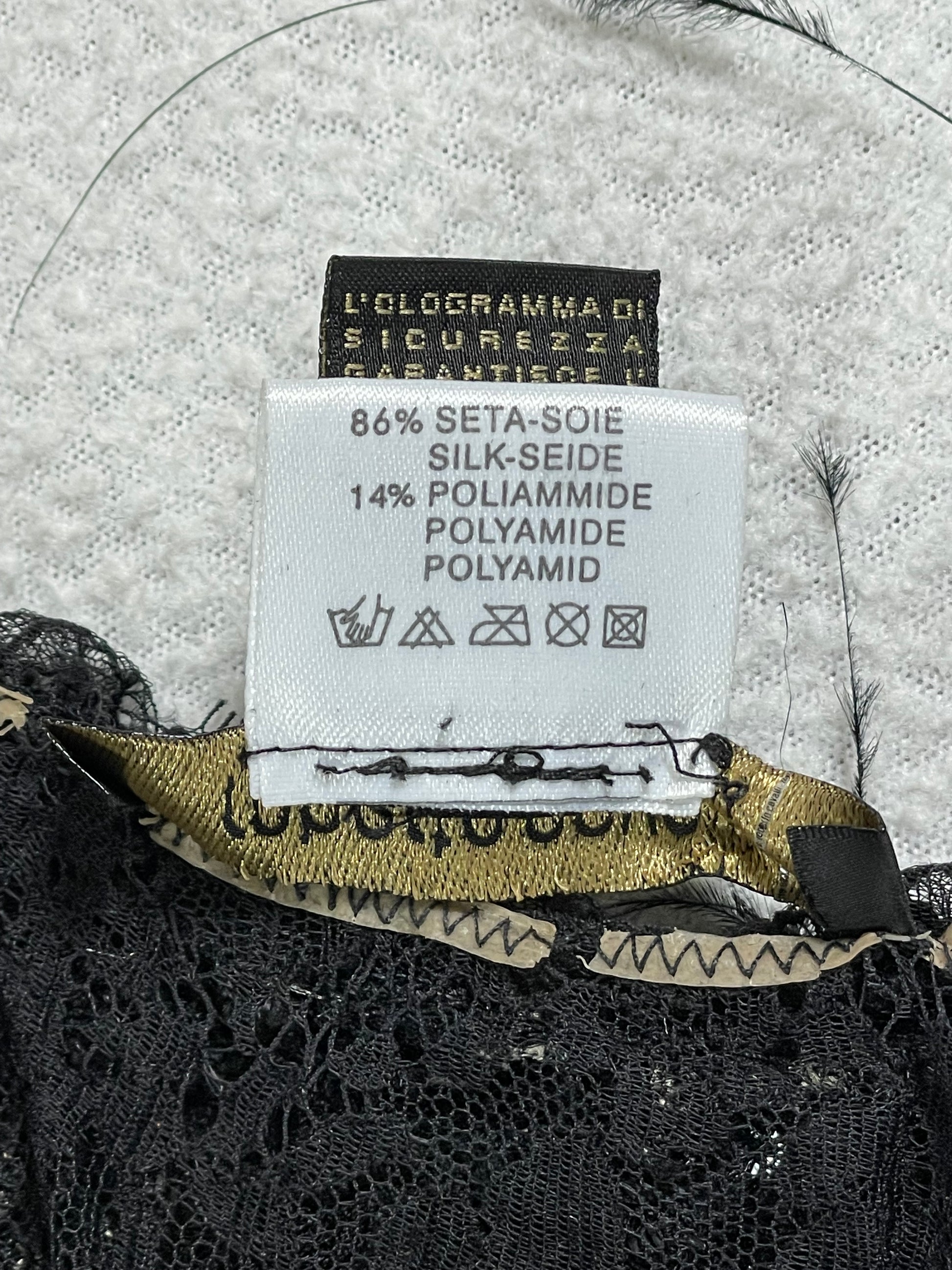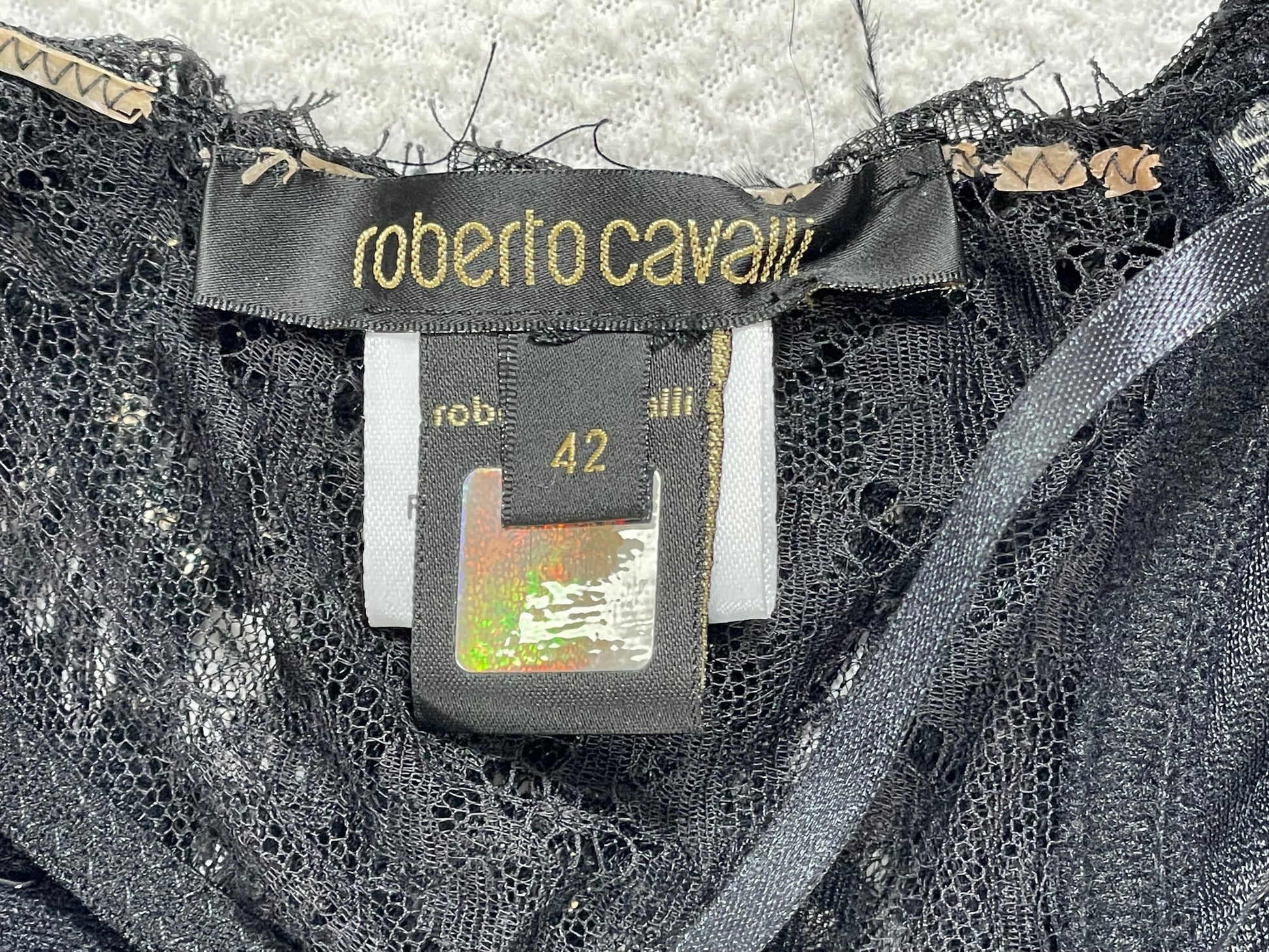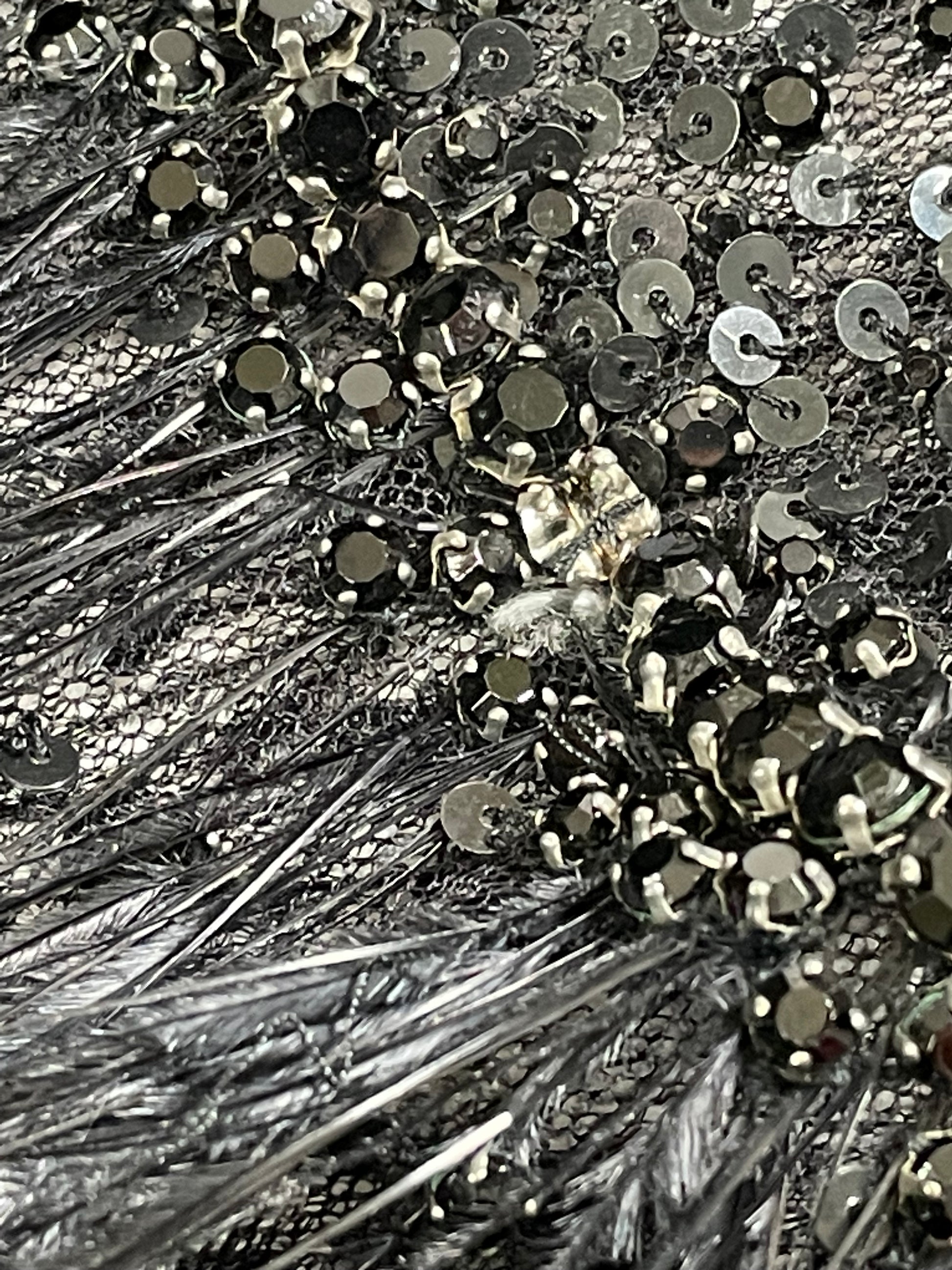 S/S 2006 Roberto Cavalli Runway Sheer Black Mesh & Lace Feather & Crystal Embellished Mini Dress