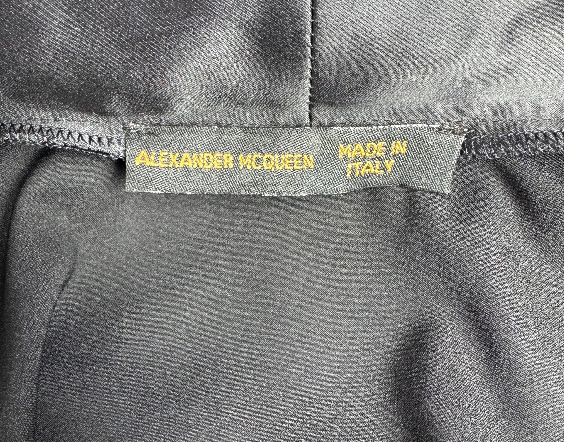 Vintage 1990's Alexander McQueen Black Stretch Satin L/S Plunging Maxi Gown Dress