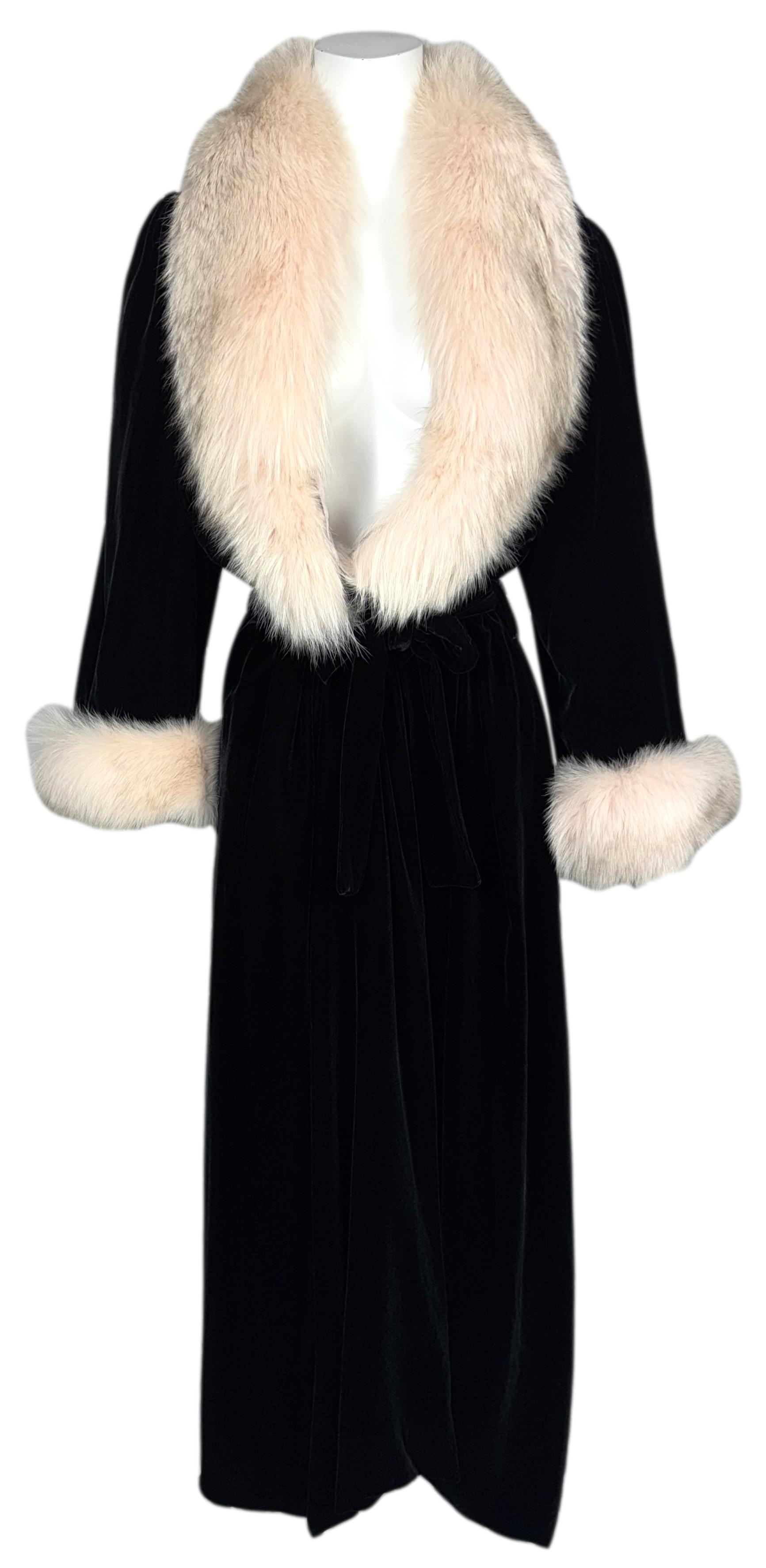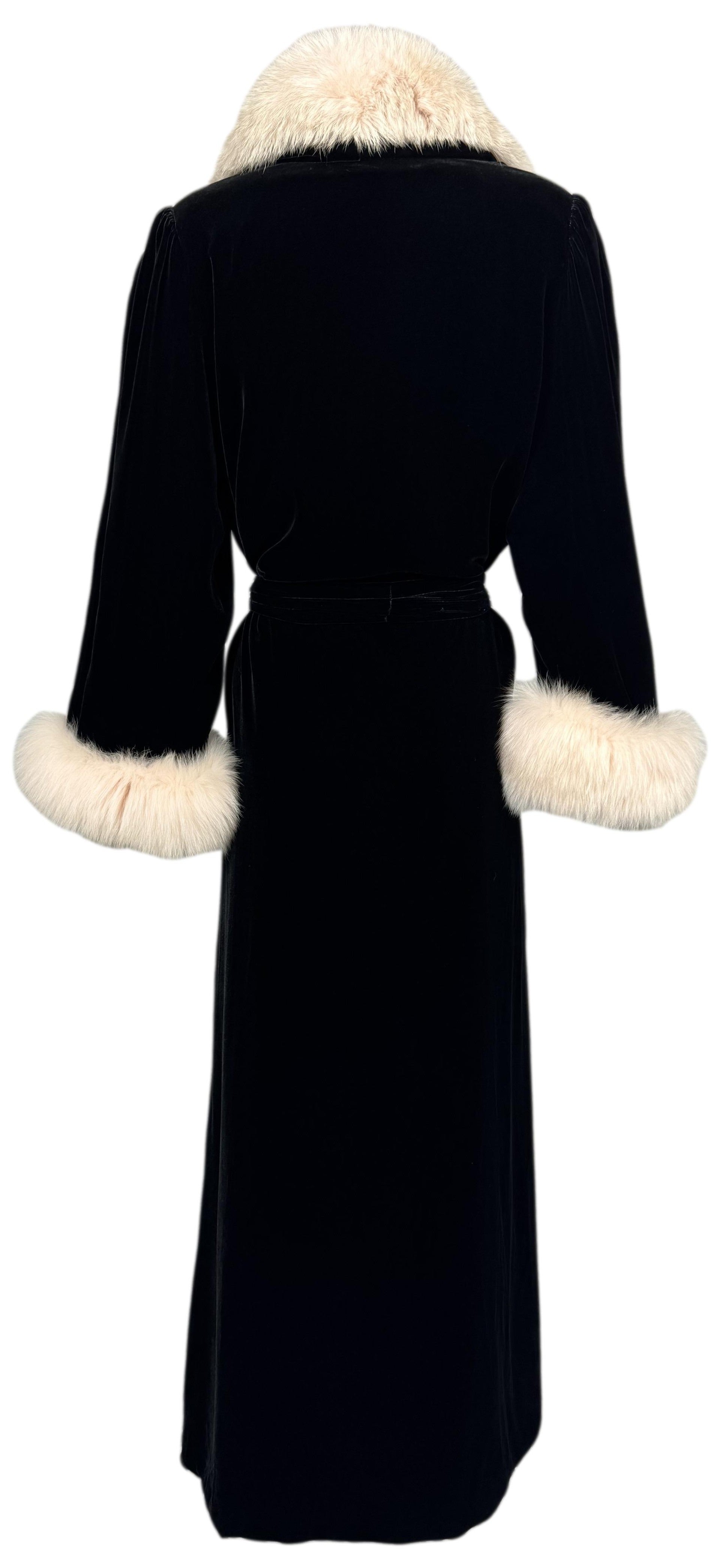 Vintage 1990's Christian Dior Old Hollywood 1940's Style Black Silk Velvet Pink Fox Fur Robe Dress Coat