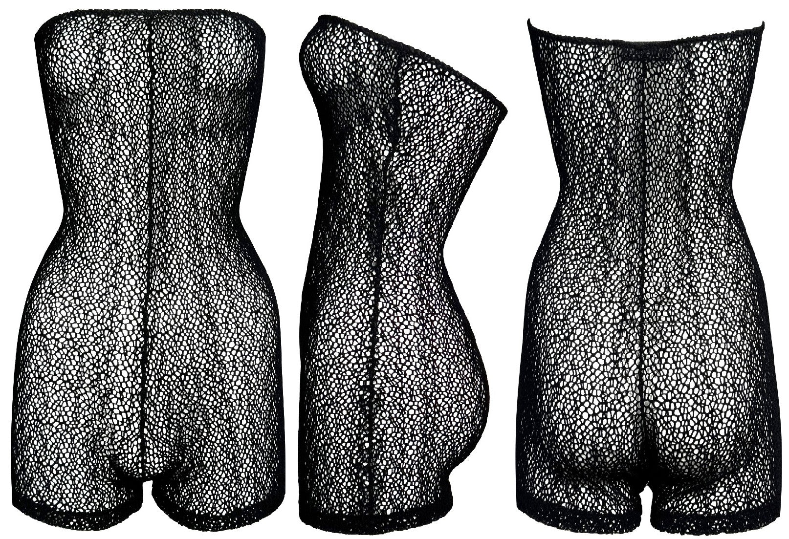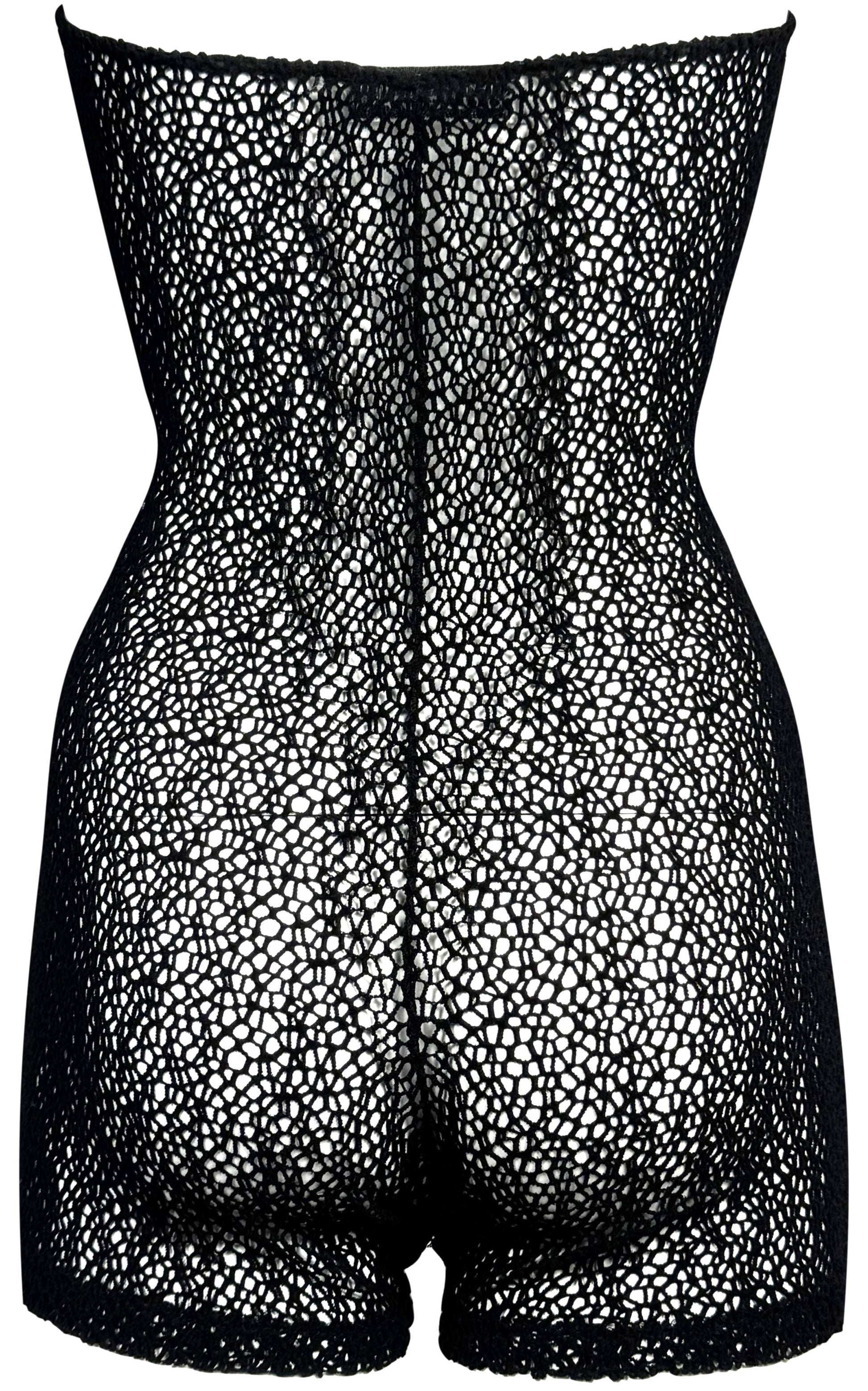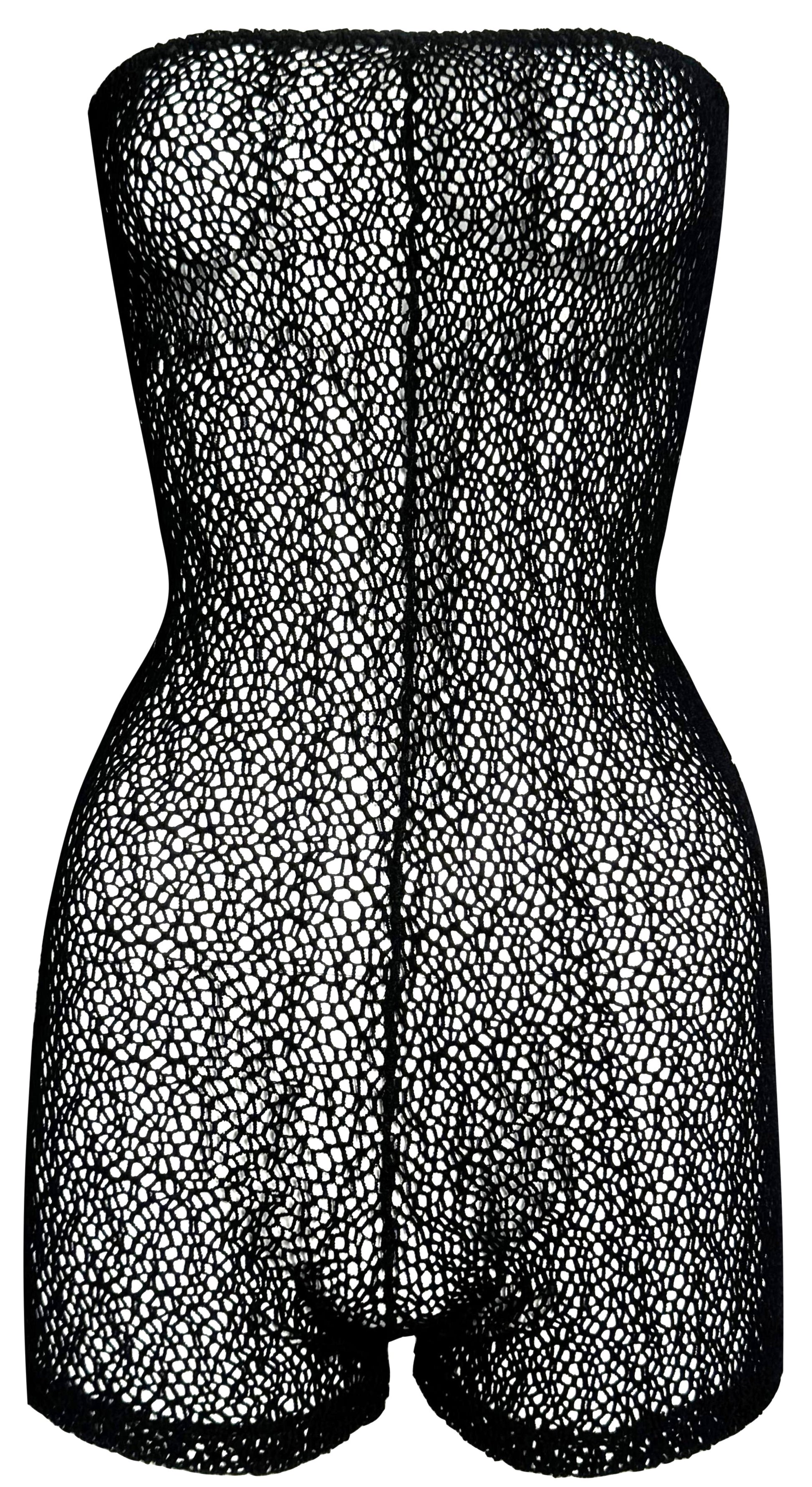 Vintage 1990's Dolce & Gabbana Sheer Black Fishnet Strapless Romper Jumpsuit