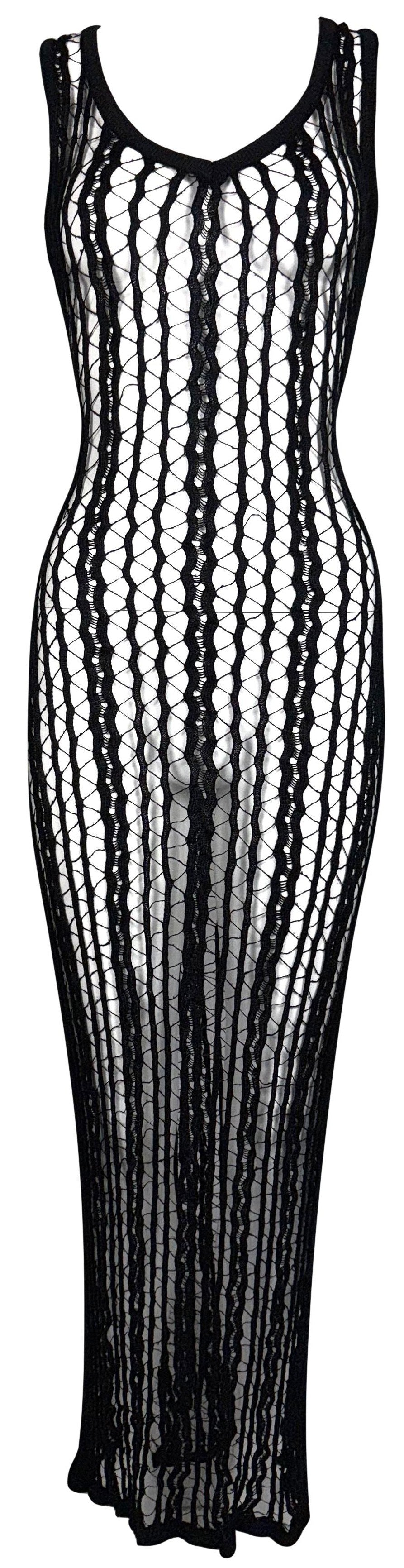Vintage 1990's Fendi by Karl Lagerfeld Sheer Black Knit Fishnet Wiggle Bodycon Maxi Dress