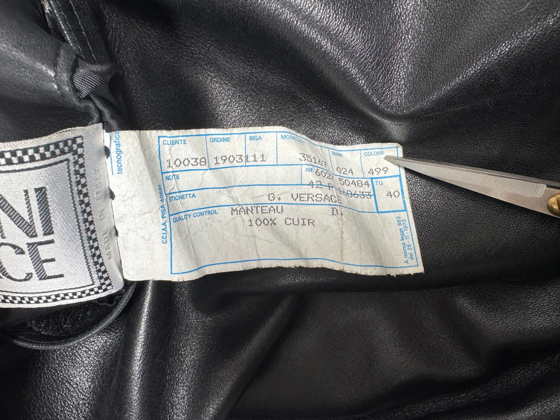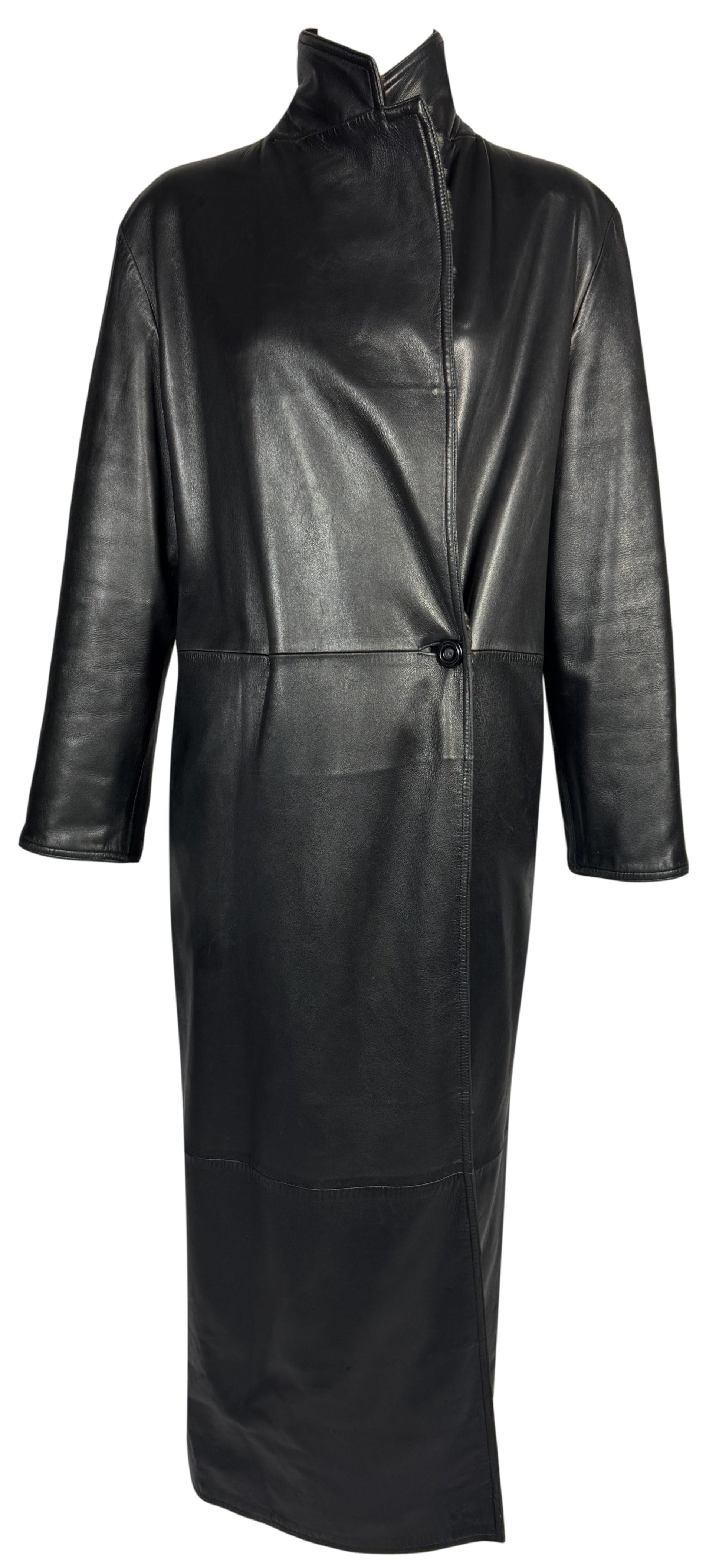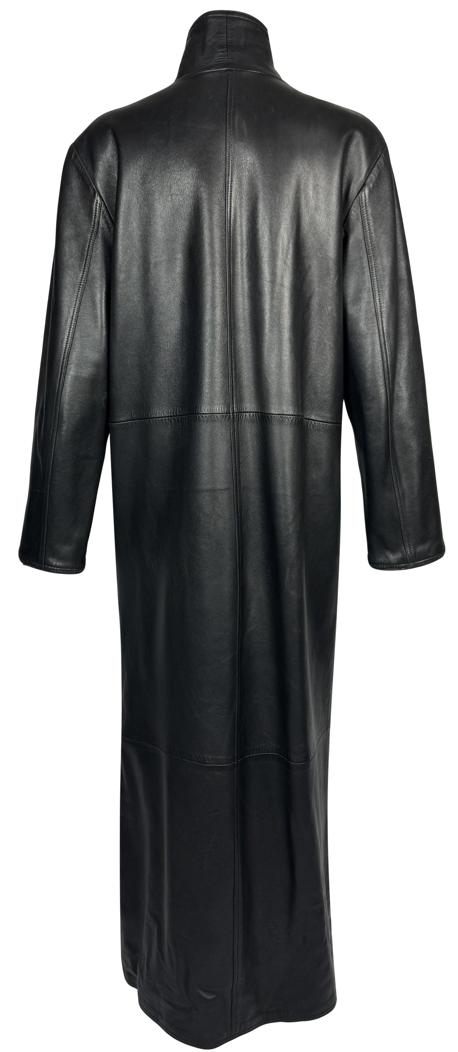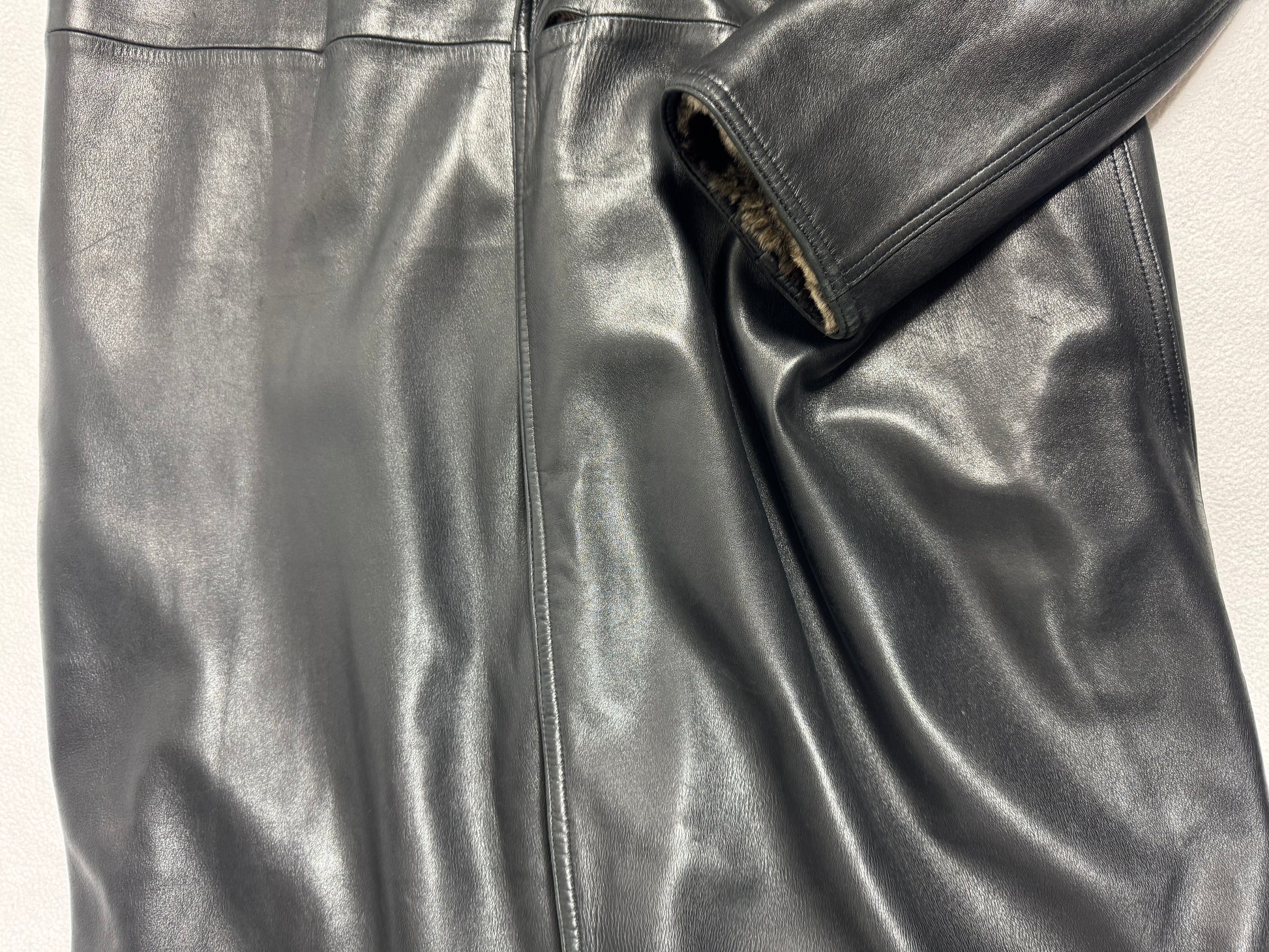 Vintage 1990's Gianni Versace Black Leather & Rex Chinchilla Fur Reversible Long Trench Coat Jacket