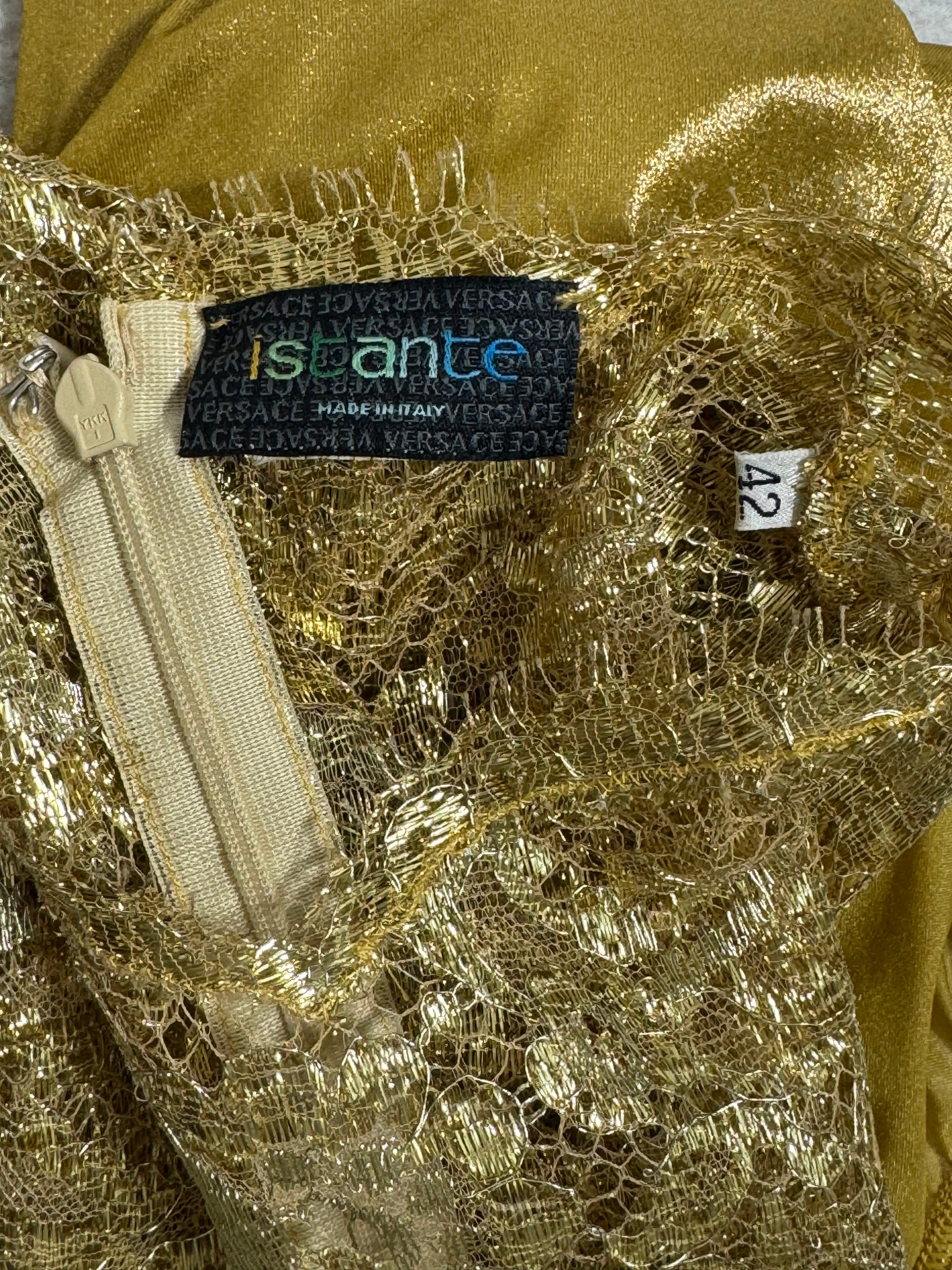 Vintage 1990's Gianni Versace Instante Sheer Gold Lace Bodysuit Top