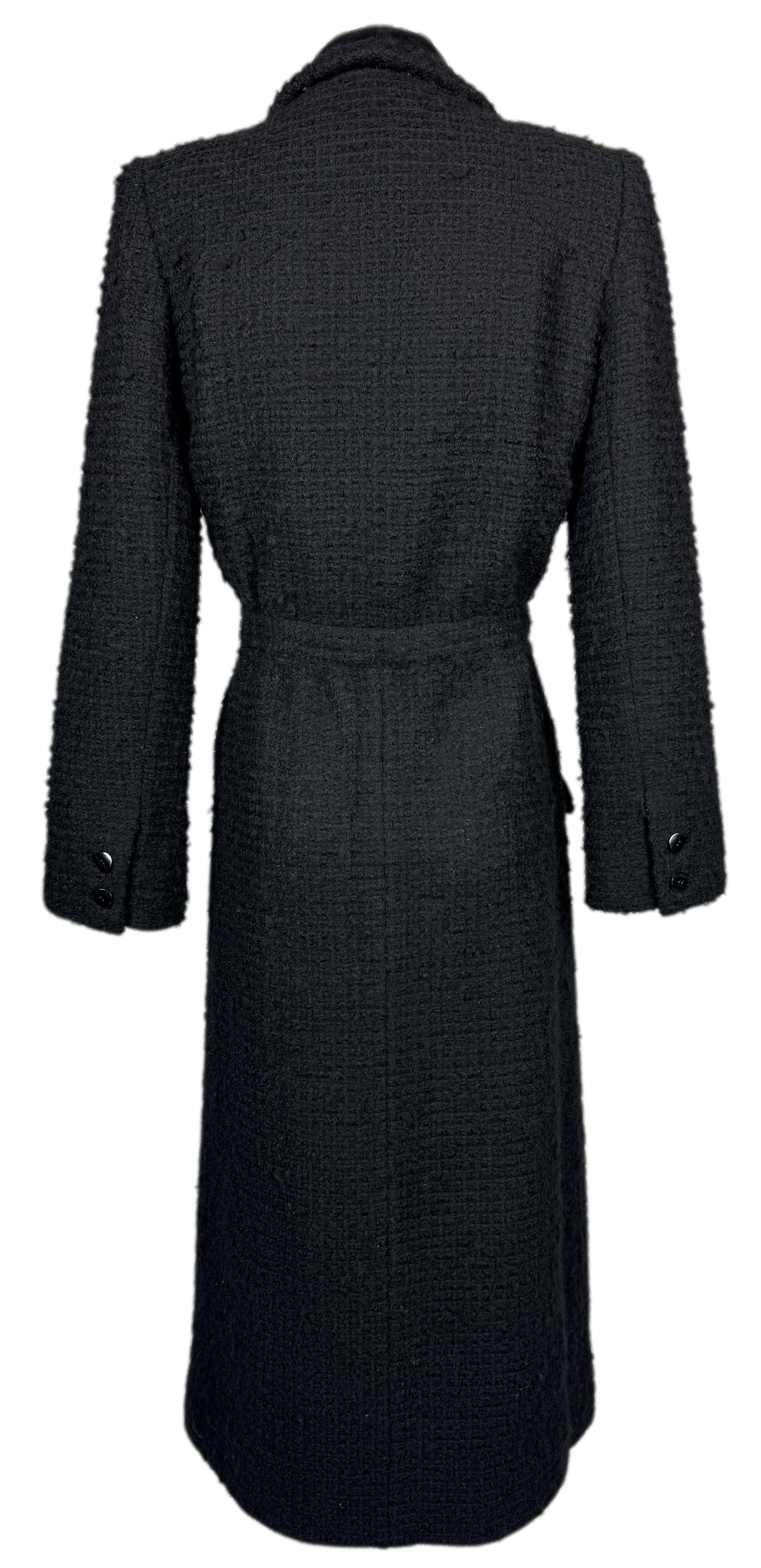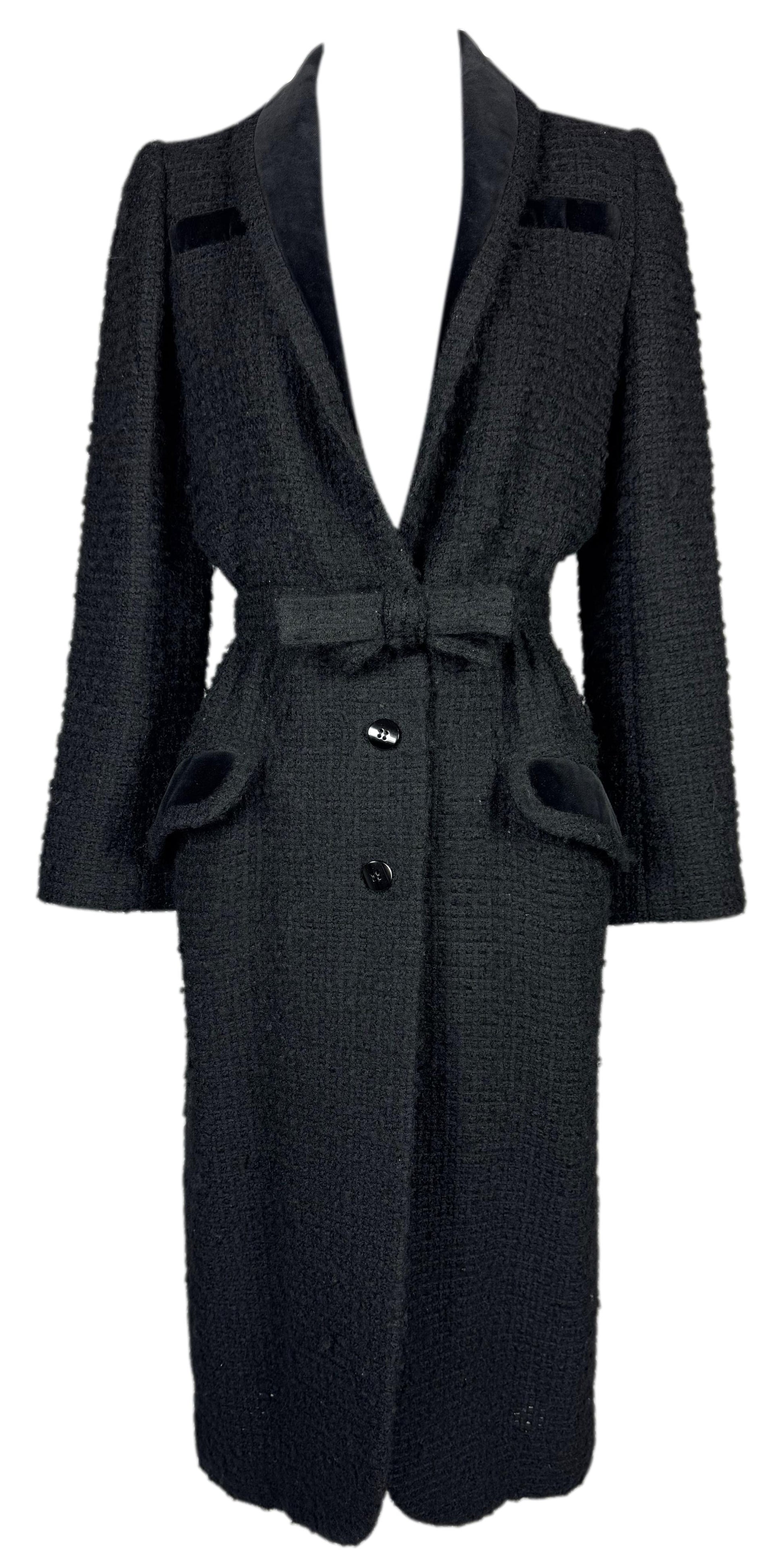 Vintage 1990's Valentino Haute Couture Black Boucle Princess 1950's Breakfast At Tiffany's Style Bow Belted Coat Jacket