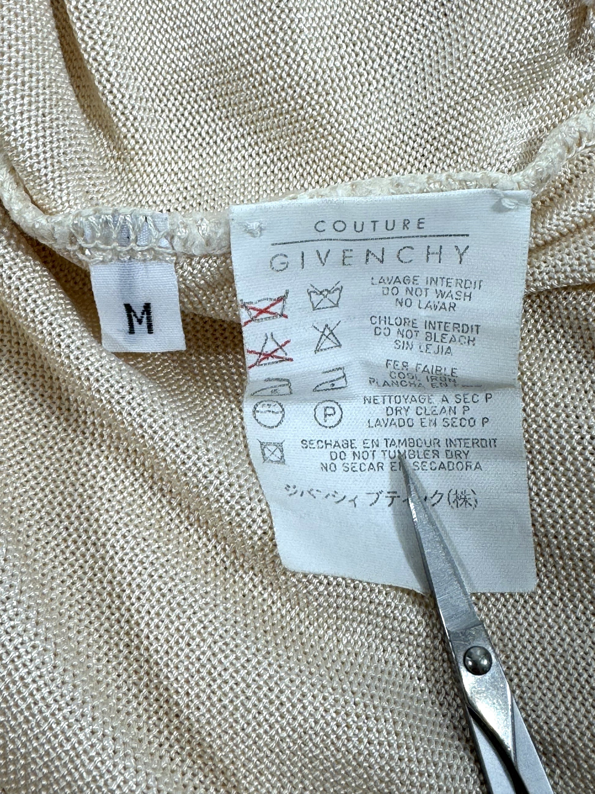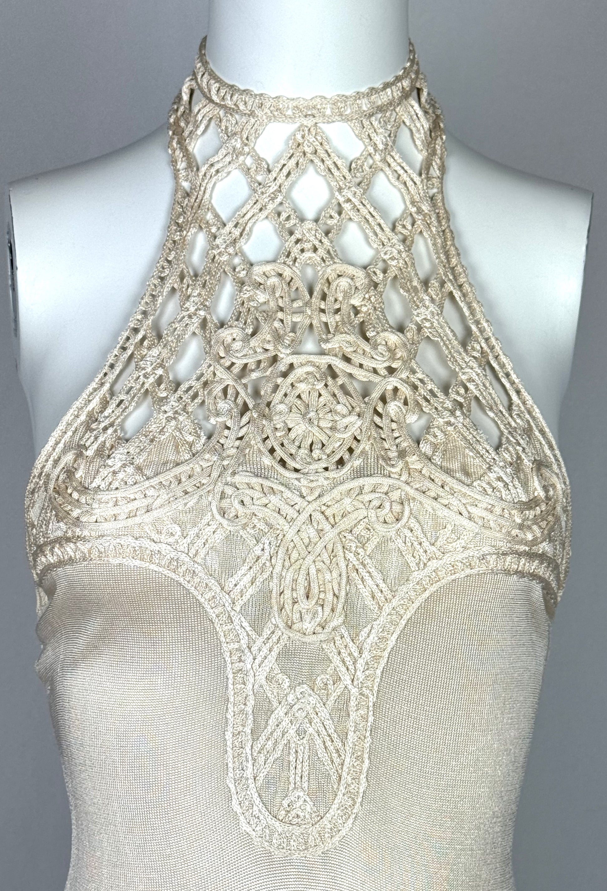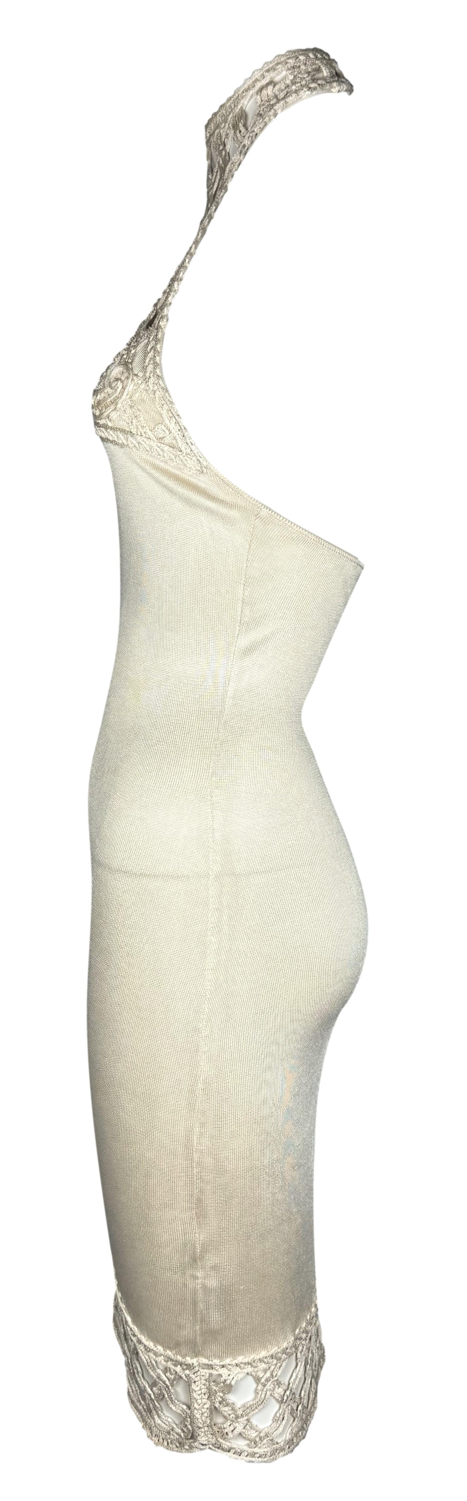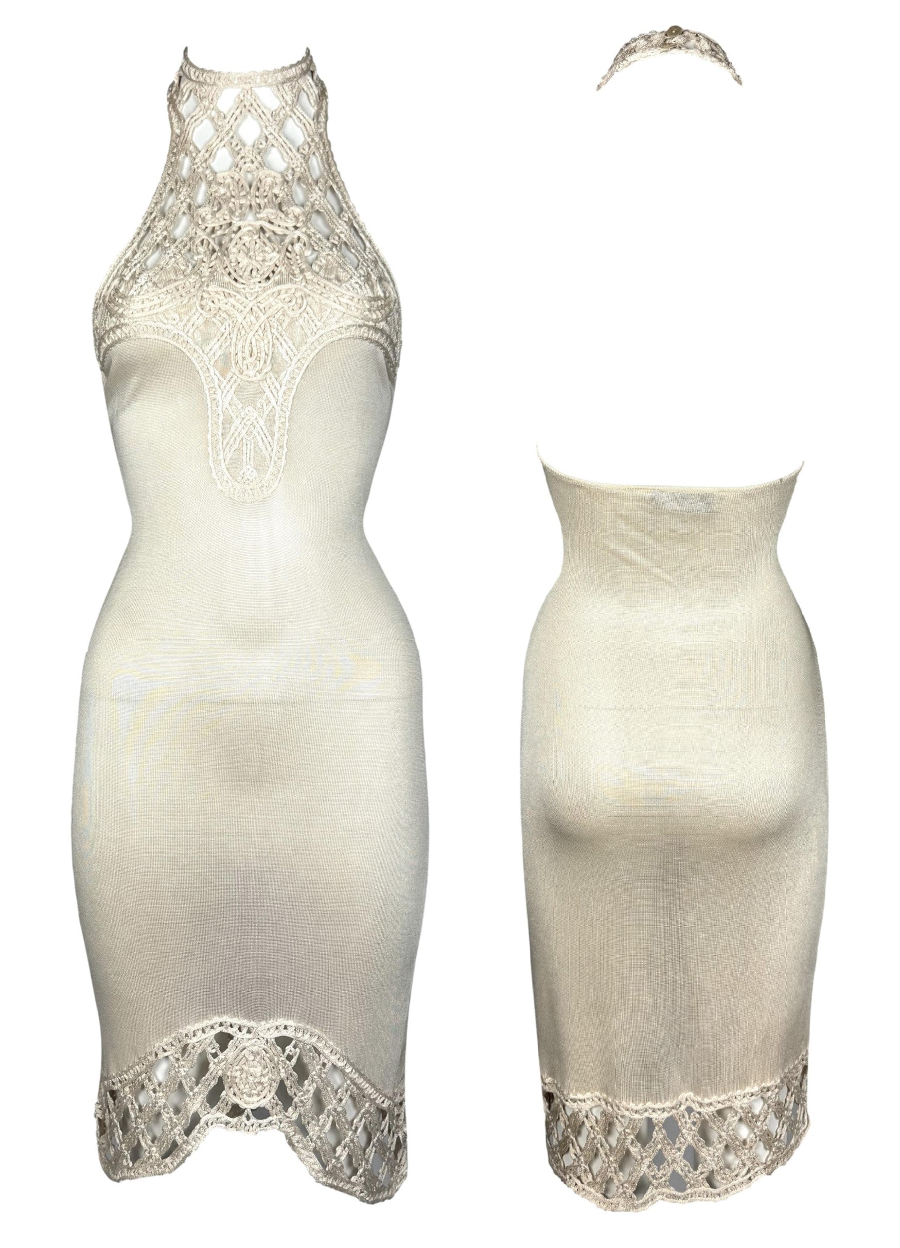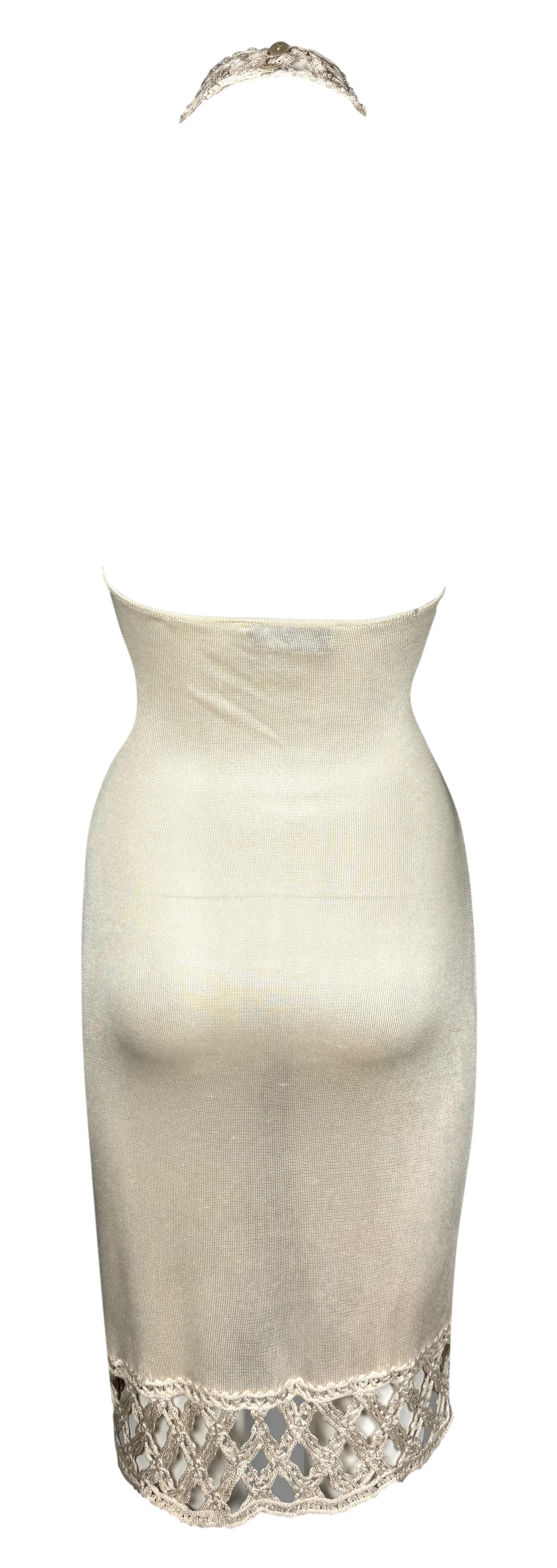 Vintage 1998 Givenchy by Alexander McQueen Sheer Cream Knit High Neck Sleeveless Bodycon Dress
