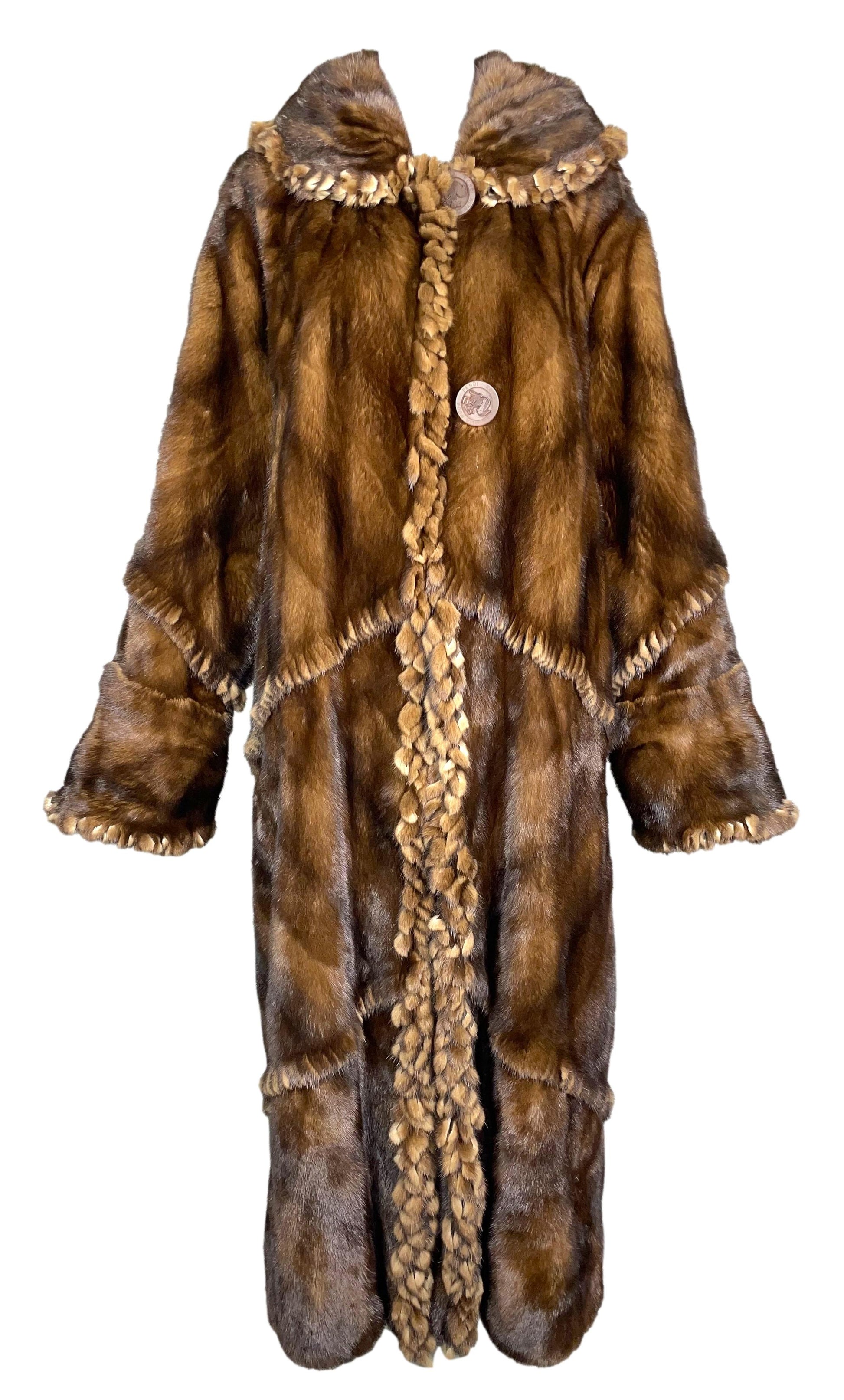 Vintage F/W 1993 Fendi by Karl Lagerfeld Mink Fur Fringe Long Coat