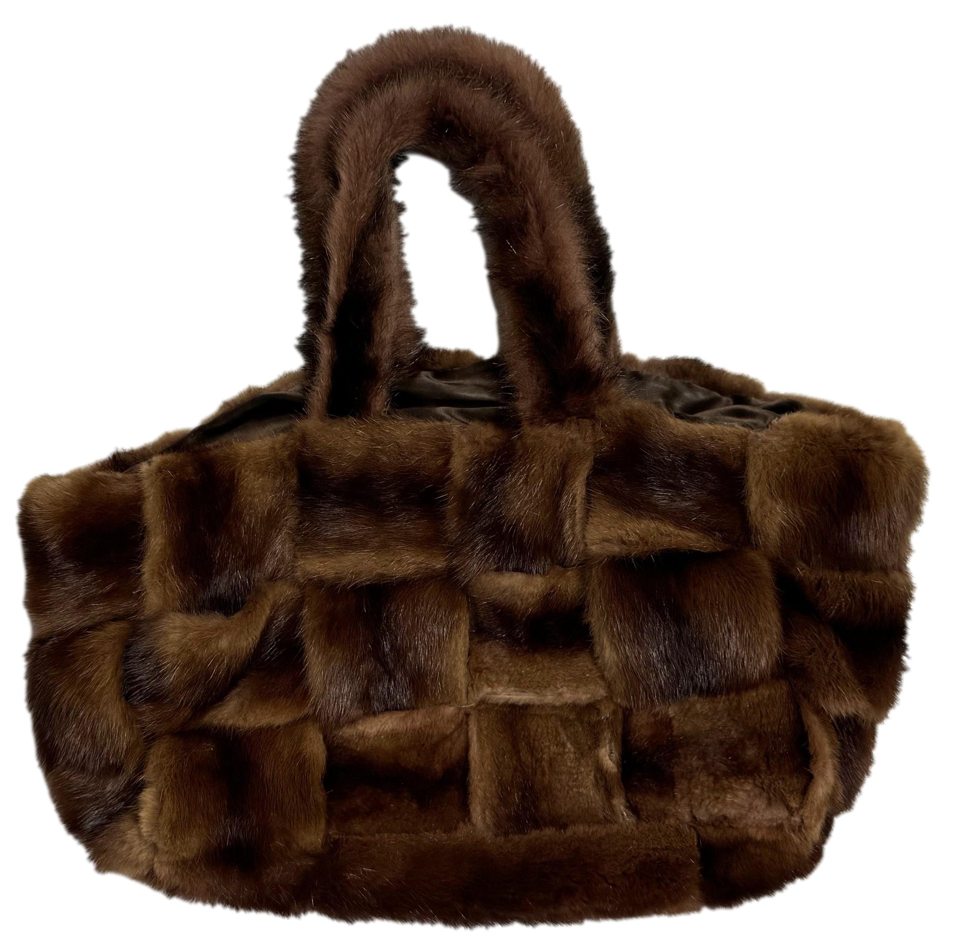 Vintage RARE 1990's Christian Lacroix Large Sable Fur Woven Hobo Shoulder Handbag Bag